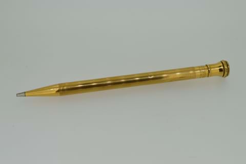 The perfect gift for a man who has everything. This antique gold cased pencil has beautiful Deco style stripes. Lead refills available from speciality pen stores.