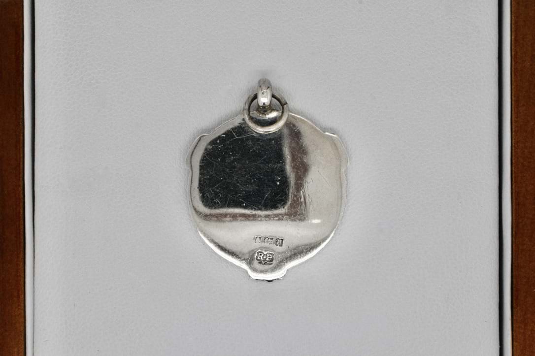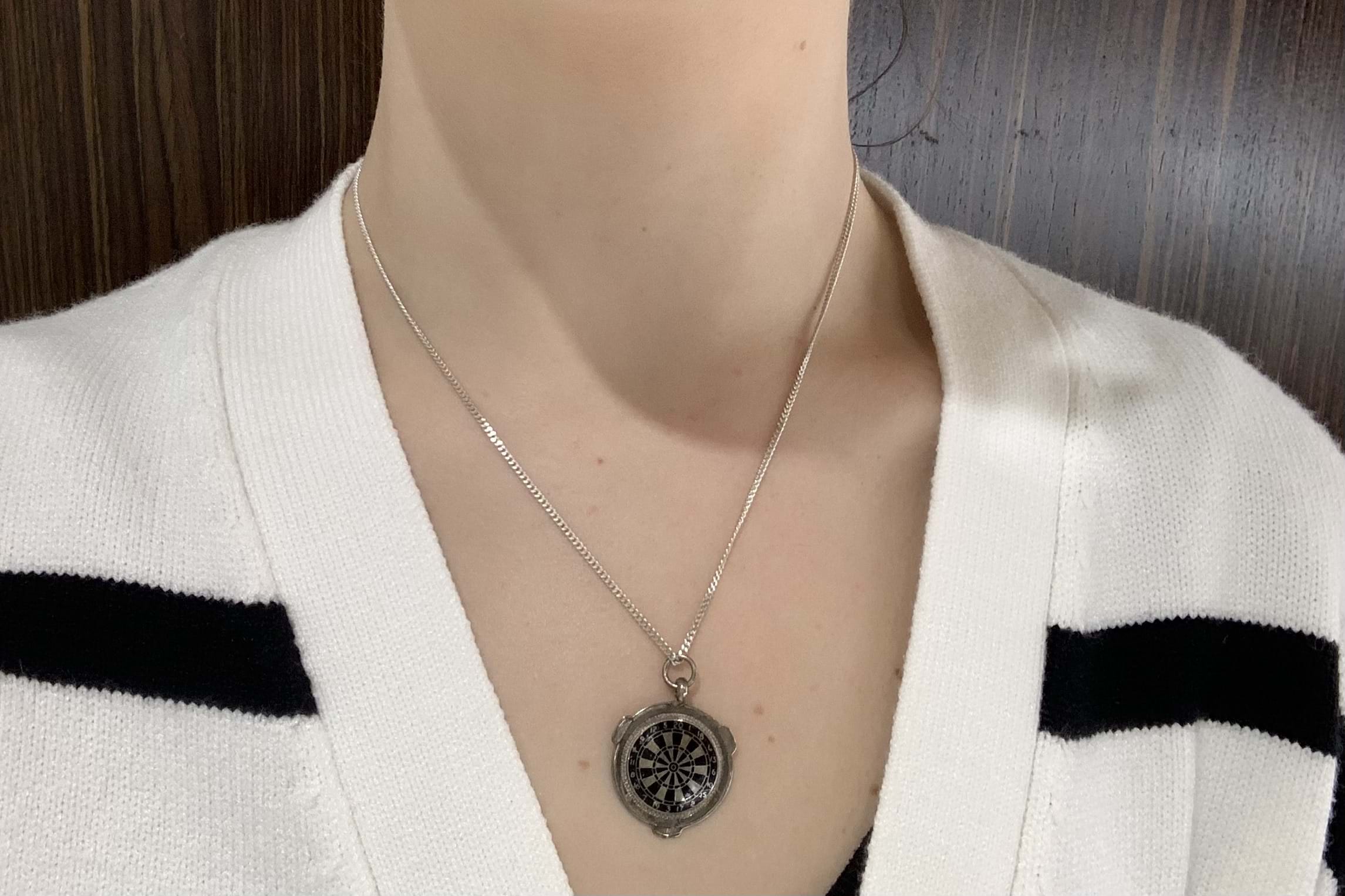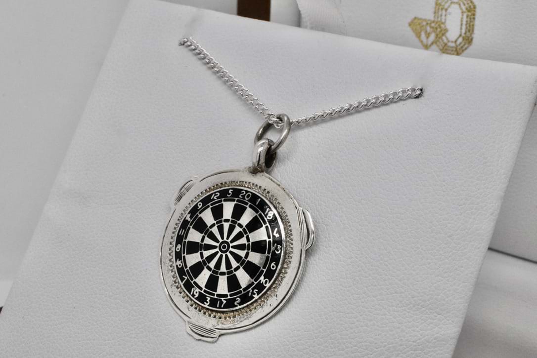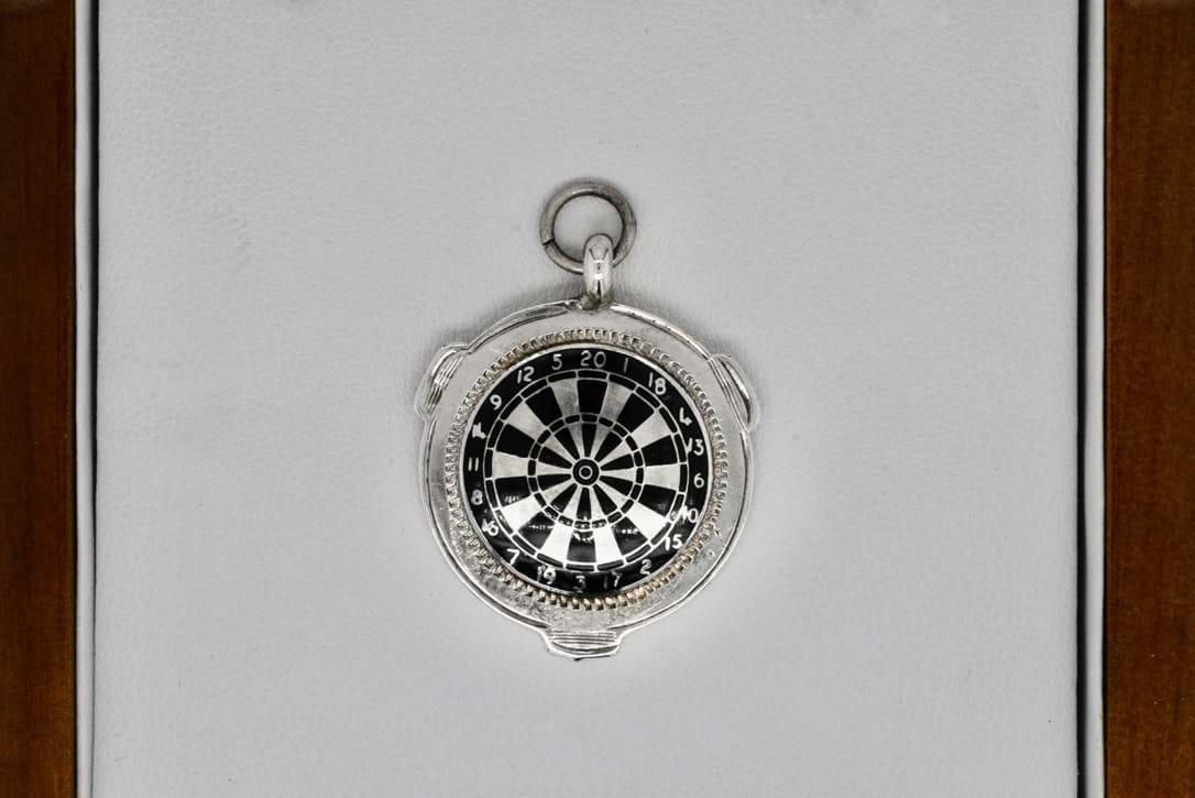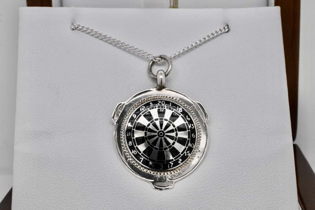 Hallmarked Birmingham 1951 this sterling silver medal features a fully intact enamel dart board. The perfect gift for the dart playing enthusiast in your life