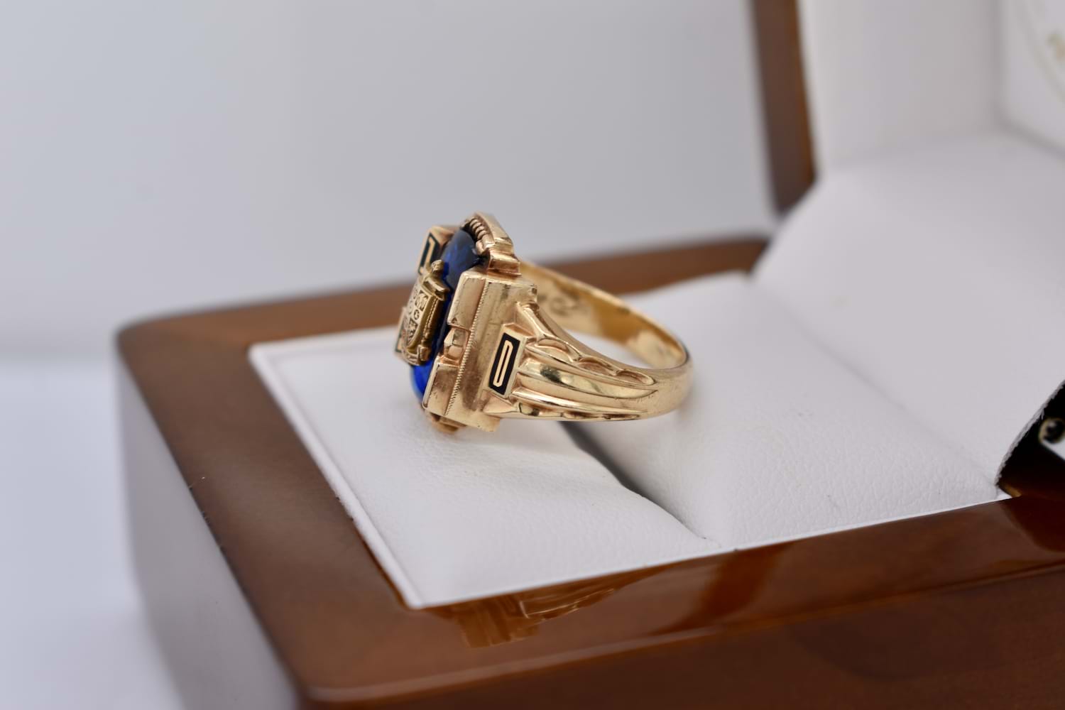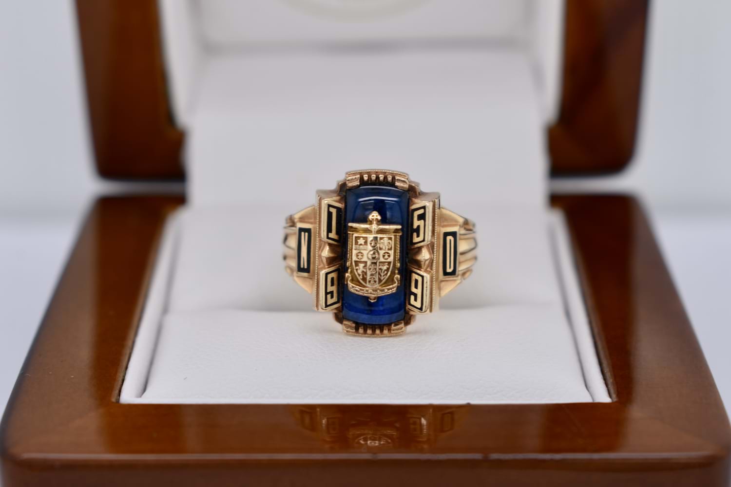 Classic Americana. This awesome college ring is crafted in 10ct yellow gold and dated 1959. A college (or class) ring is a yearly customized ring worn by college students in the United States to commemorate their graduation. A tradition that has been around for centuries and still holds great importance to some. 6.50 Grams. Finger size J.