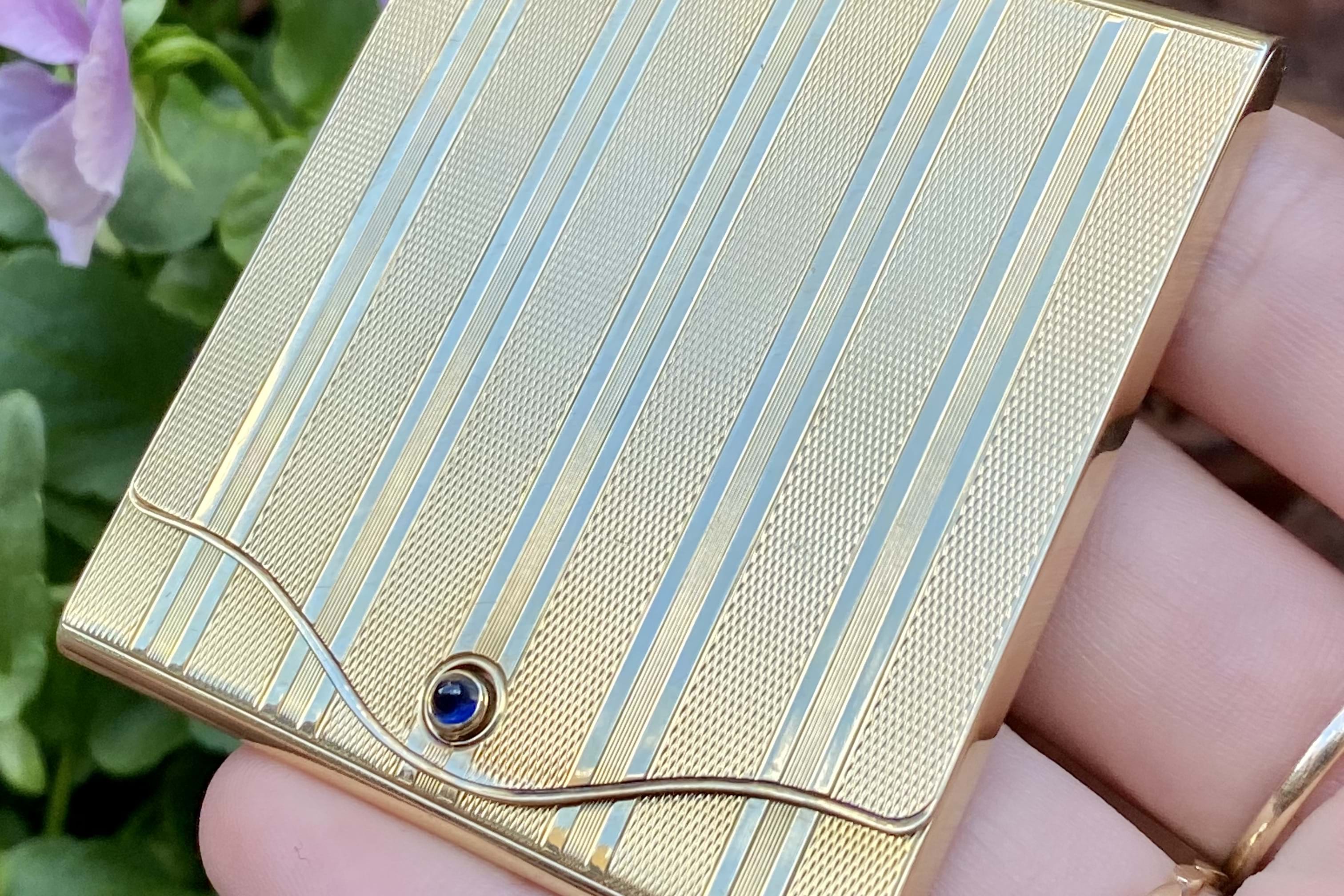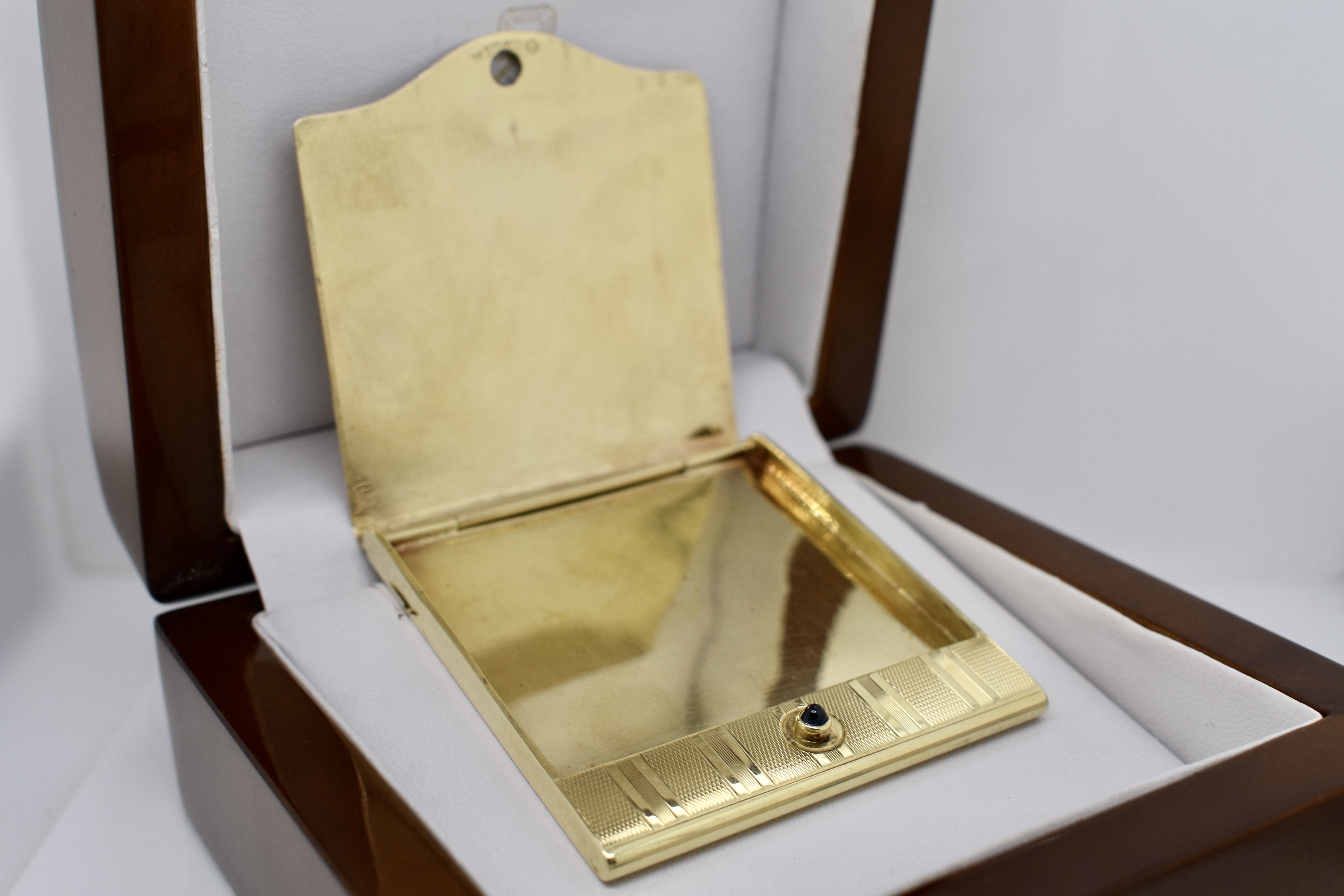 SOLD Antique 14ct Yellow Gold Calling Card Case with Cabochon Sapphire