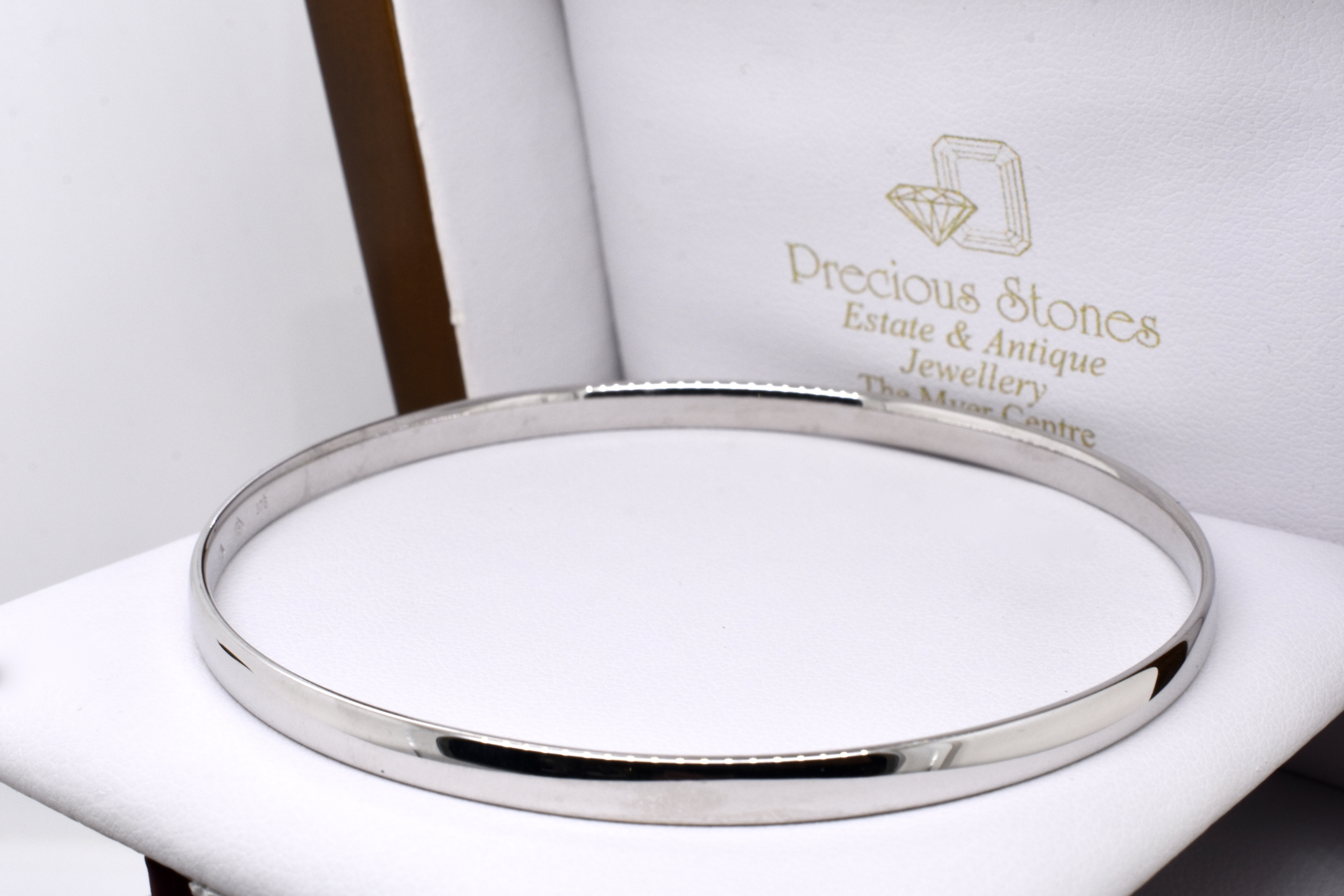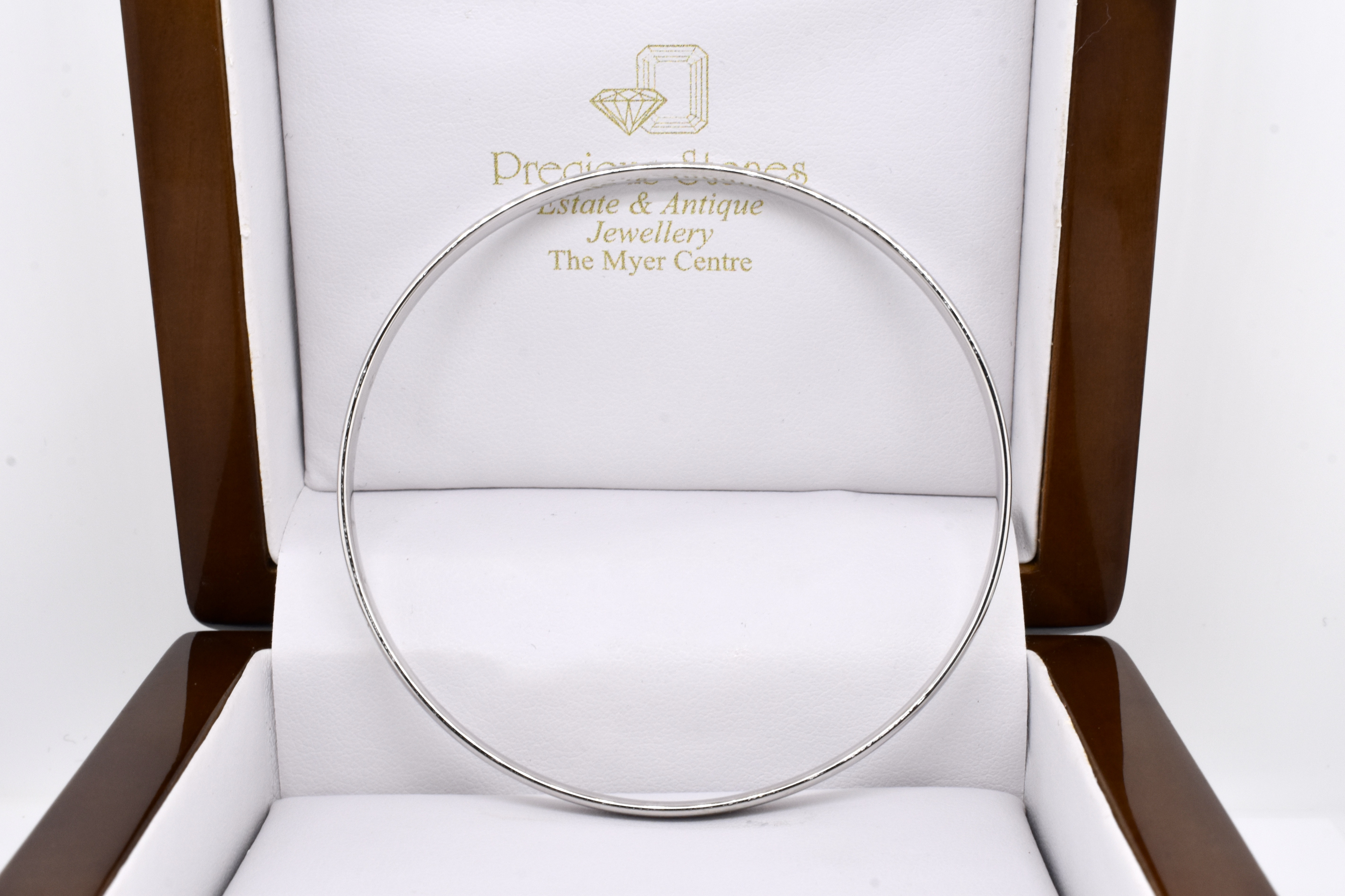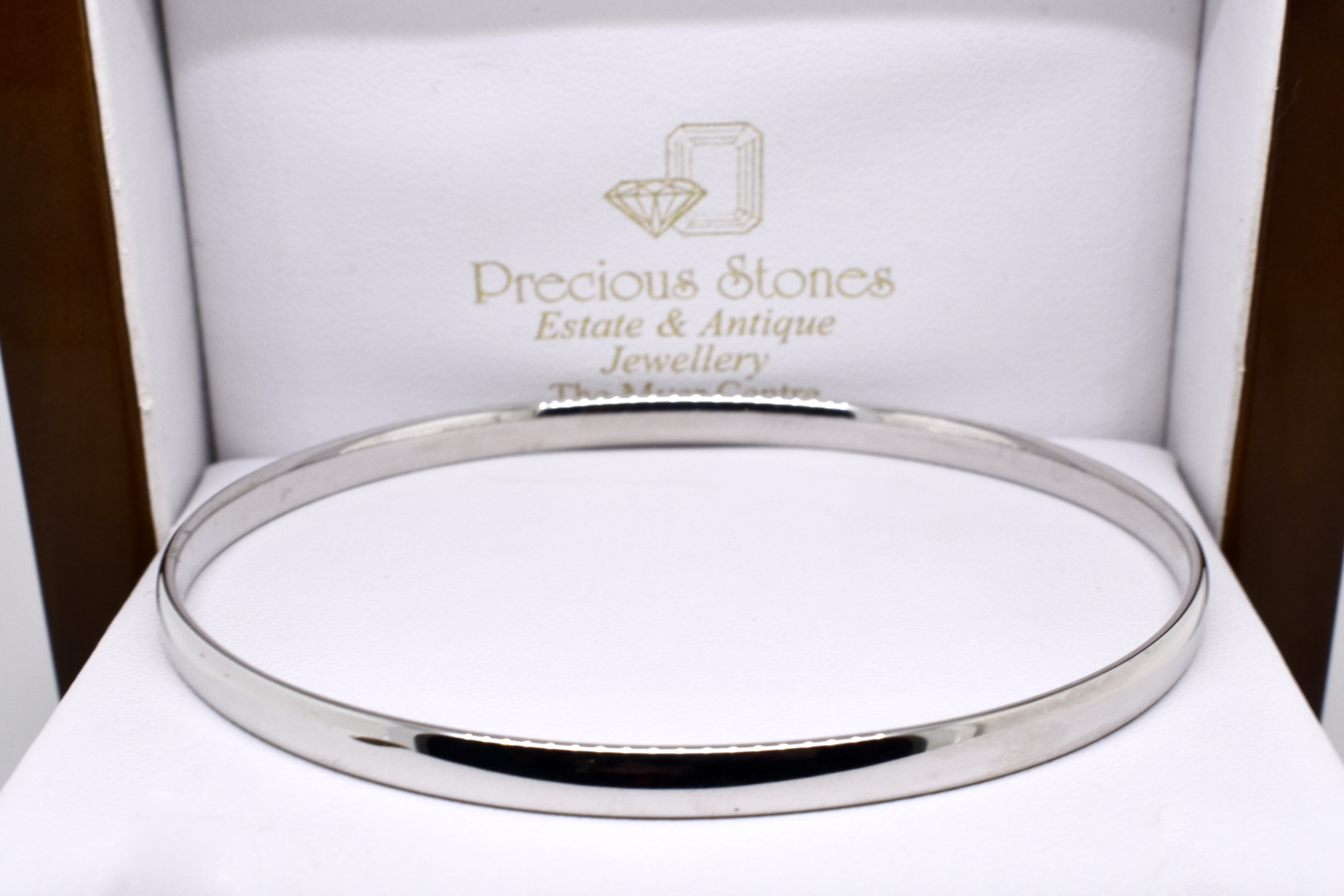 A classic and timeless jewellery collection staple, this solid, round bangle has been crafted in 9ct white gold with a half round profile and standard fit to the inside. Bangle is hand size 65mm and 4mm wide with a weight of 12.5 grams