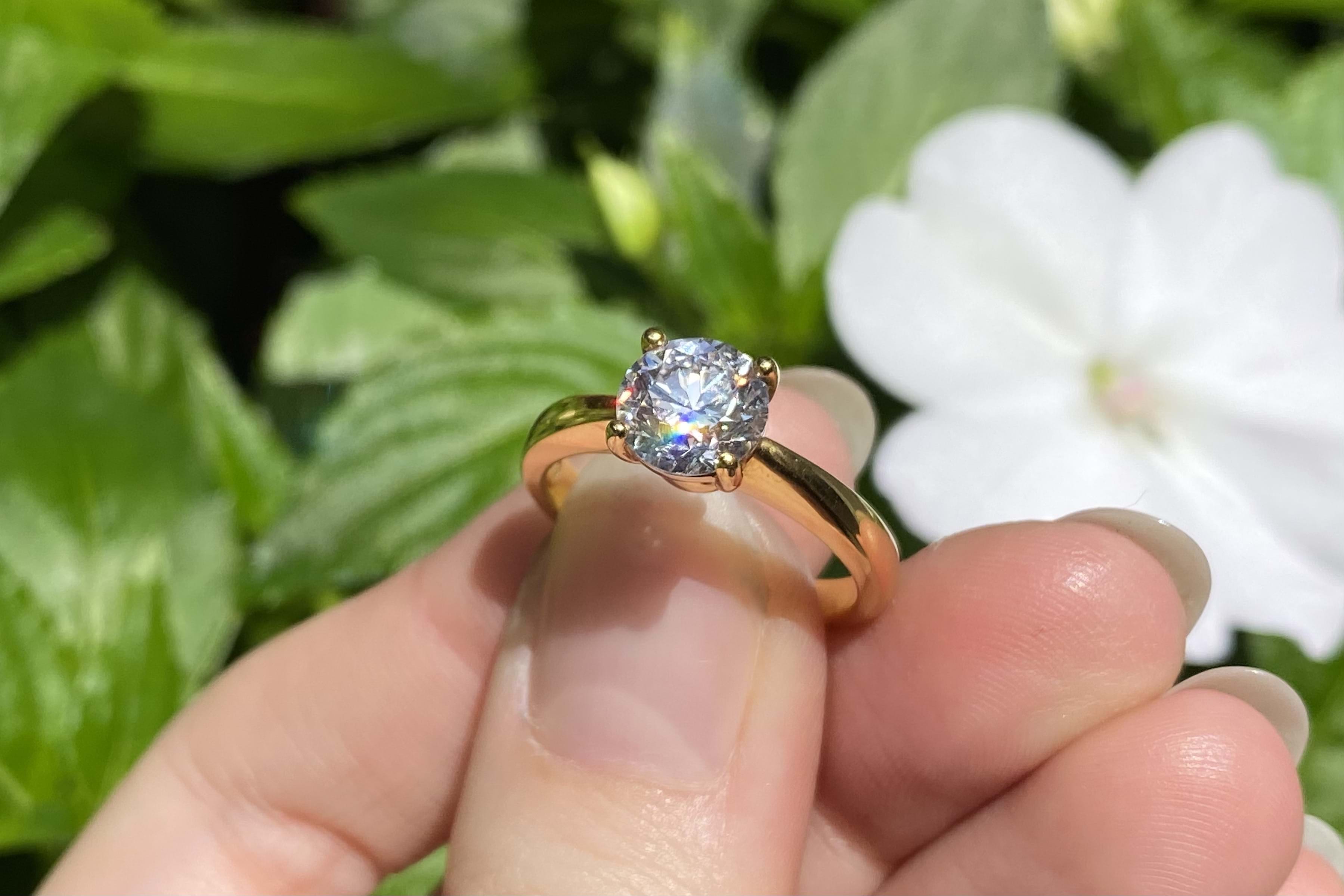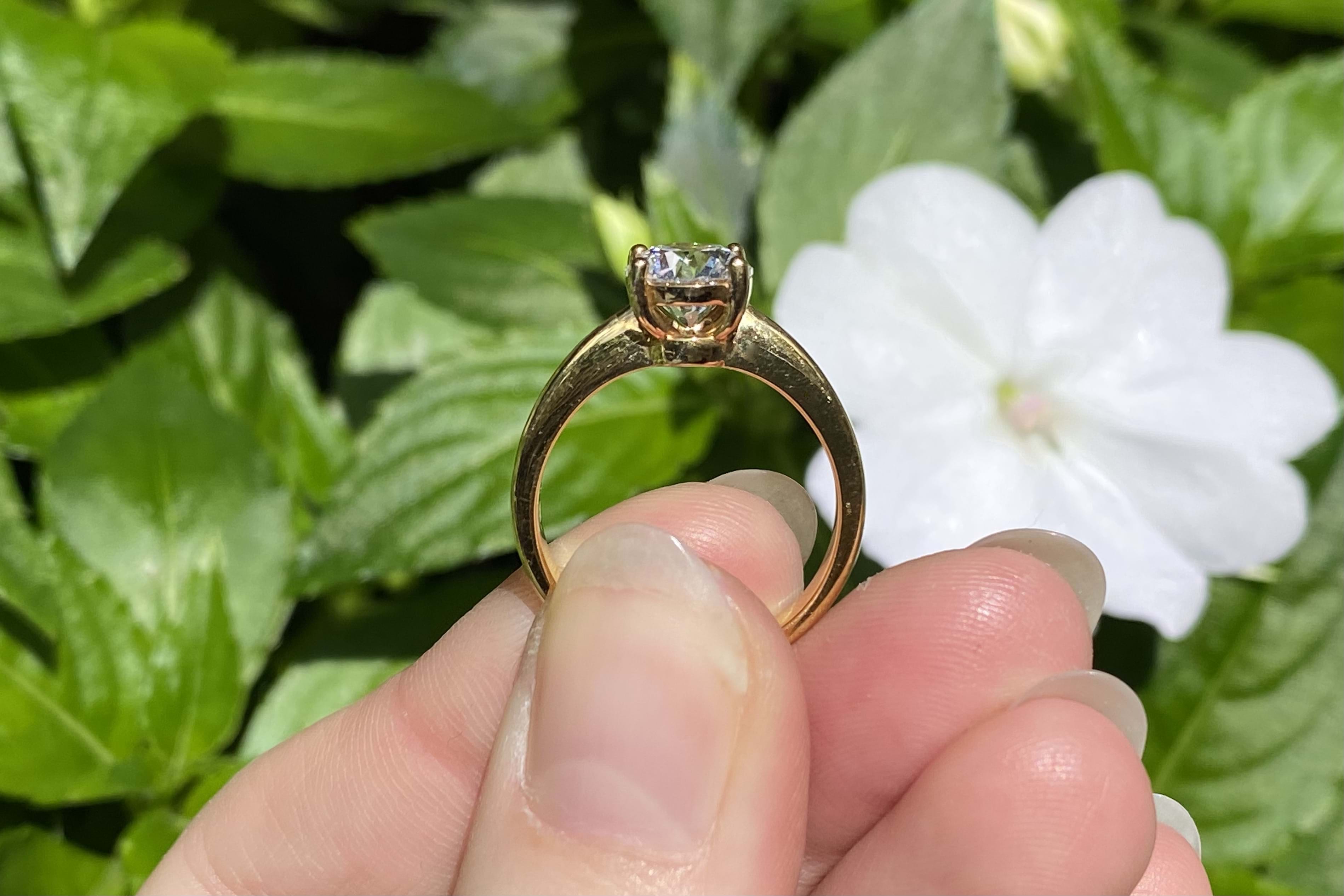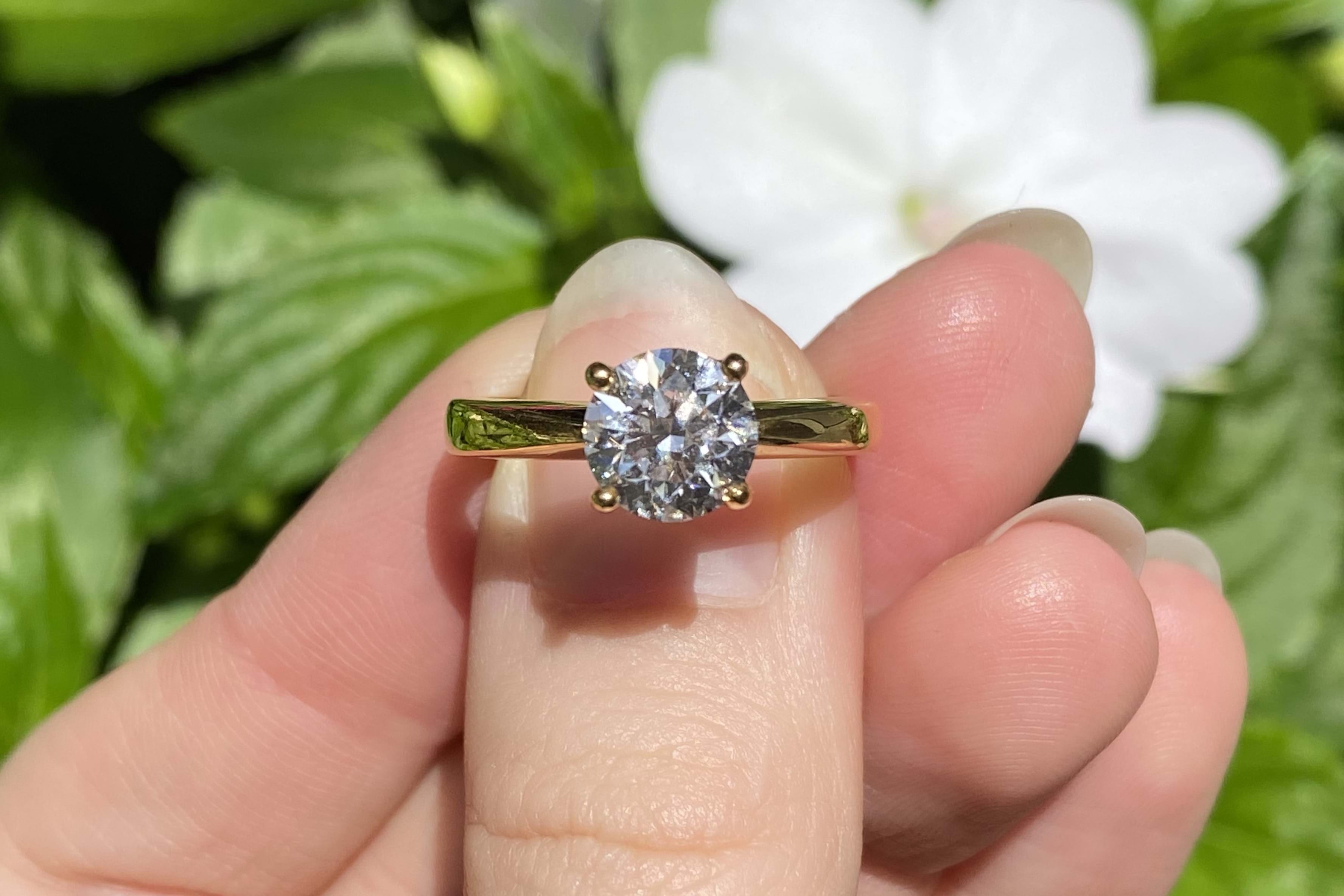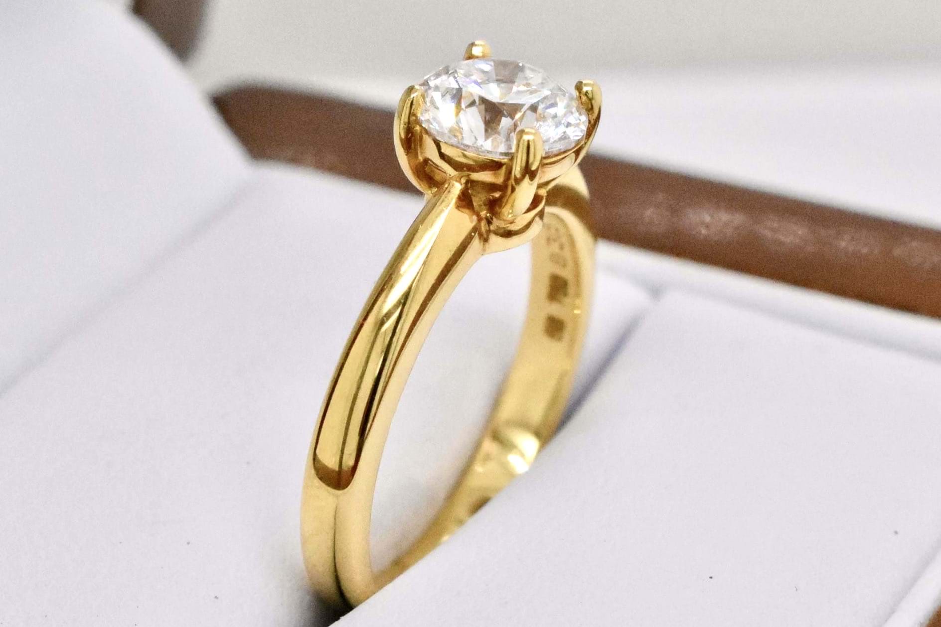 A stunning handmade 18ct yellow gold solitiare ring featuring an impressive white sparkler! This fantastic 1.54ct (E/VS2) diamond is laser inscribed and certified by the GIA and is of exceptional quality. Finger size N+ Independent Valuation Supplied