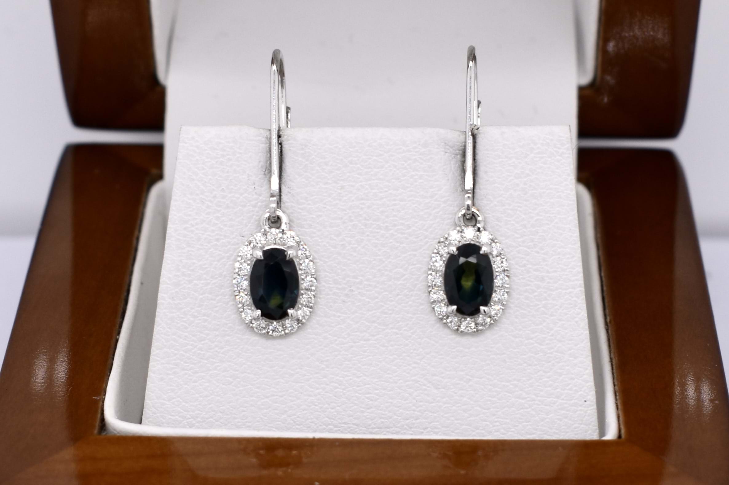 ON HOLD Handmade 18ct White Gold 1.10ct QLD Sapphire & 0.23ct Diamond Halo Drops