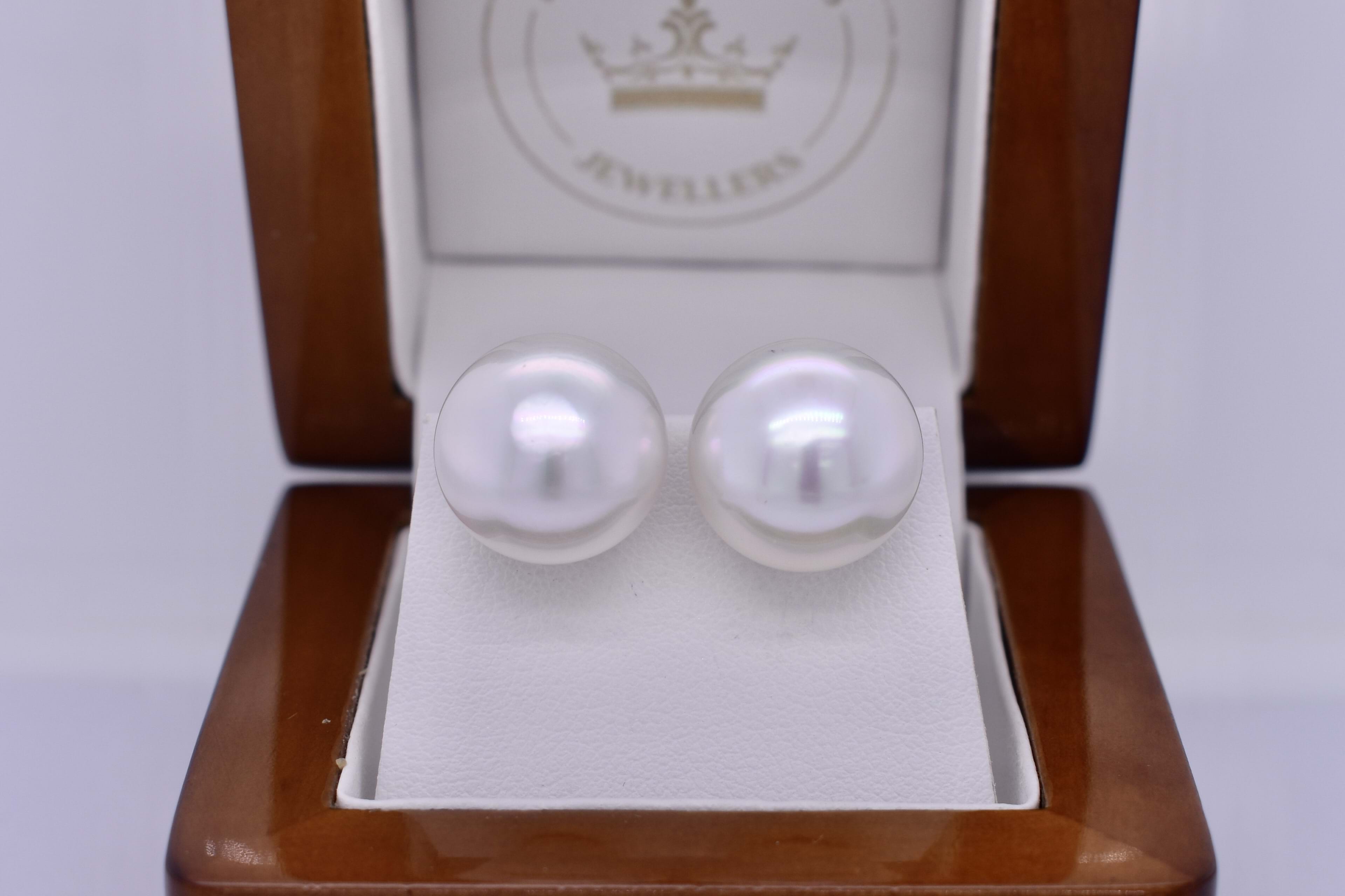 18ct White Gold White South Sea Pearl 14-14.5mm Studs