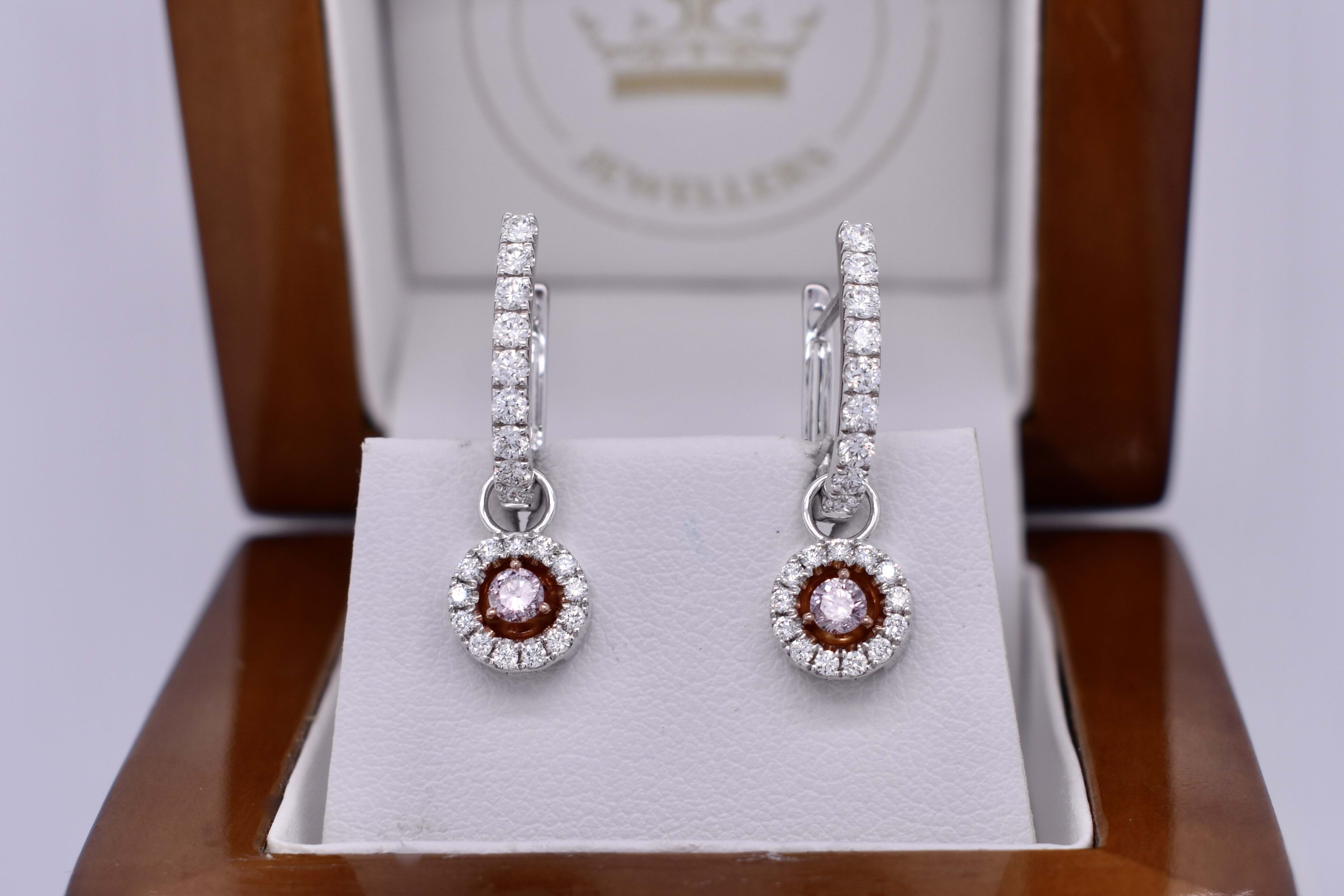 18ct White & Rose Gold 0.18ct Pink Diamond + 0.25ct White Diamond Halo Earring Enhancers with Additional Drop