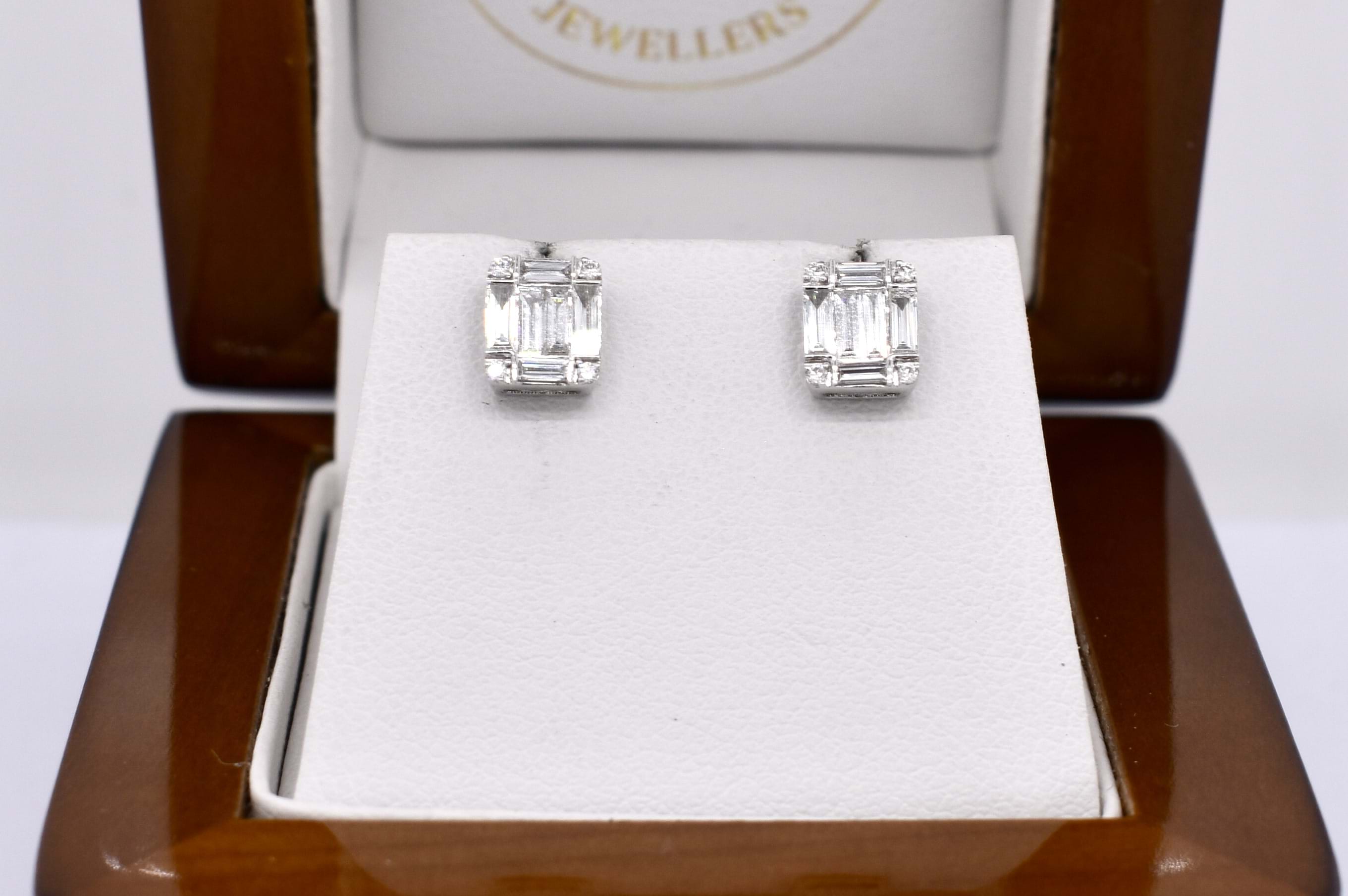 18ct White Gold 0.52ct Emerald Cut Illusion Diamond Studs