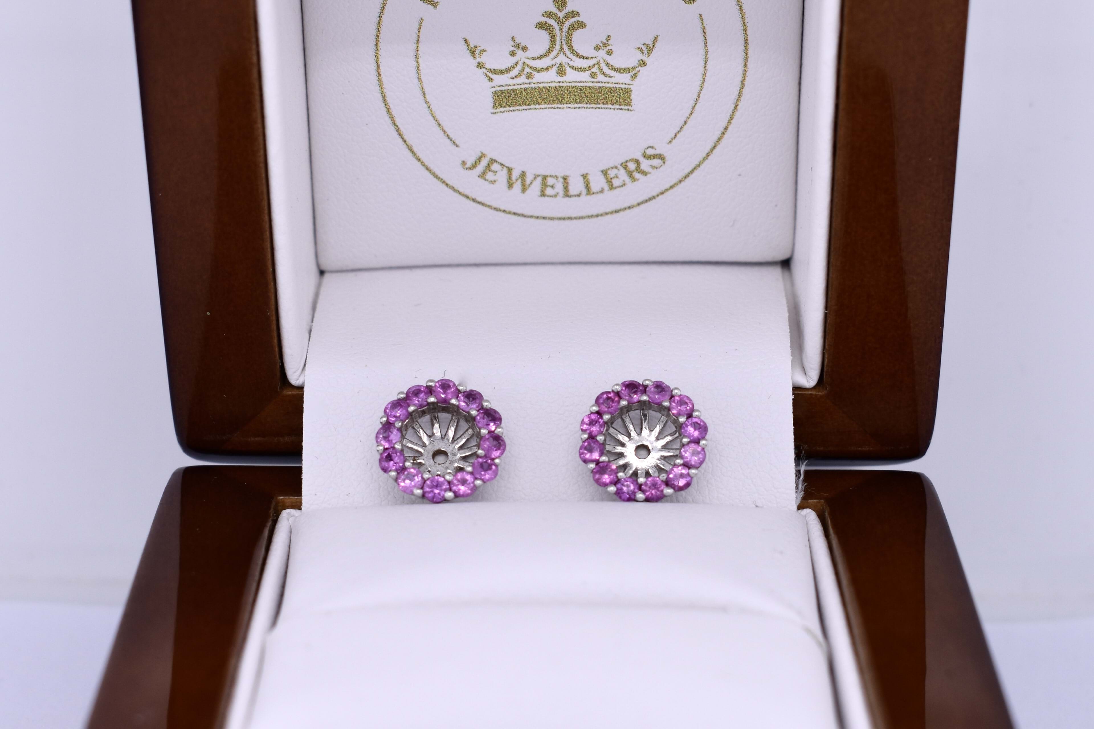 18ct White Gold 1.86ct Pink Sapphire & 0.47ct Diamond Stud Drops