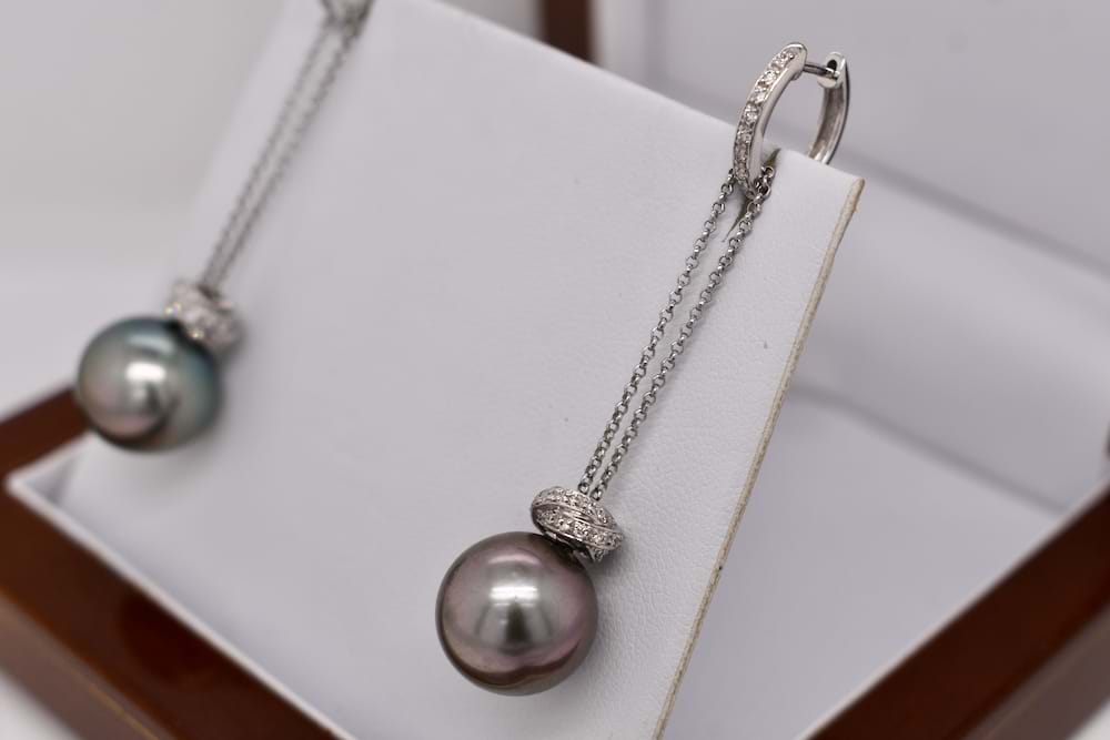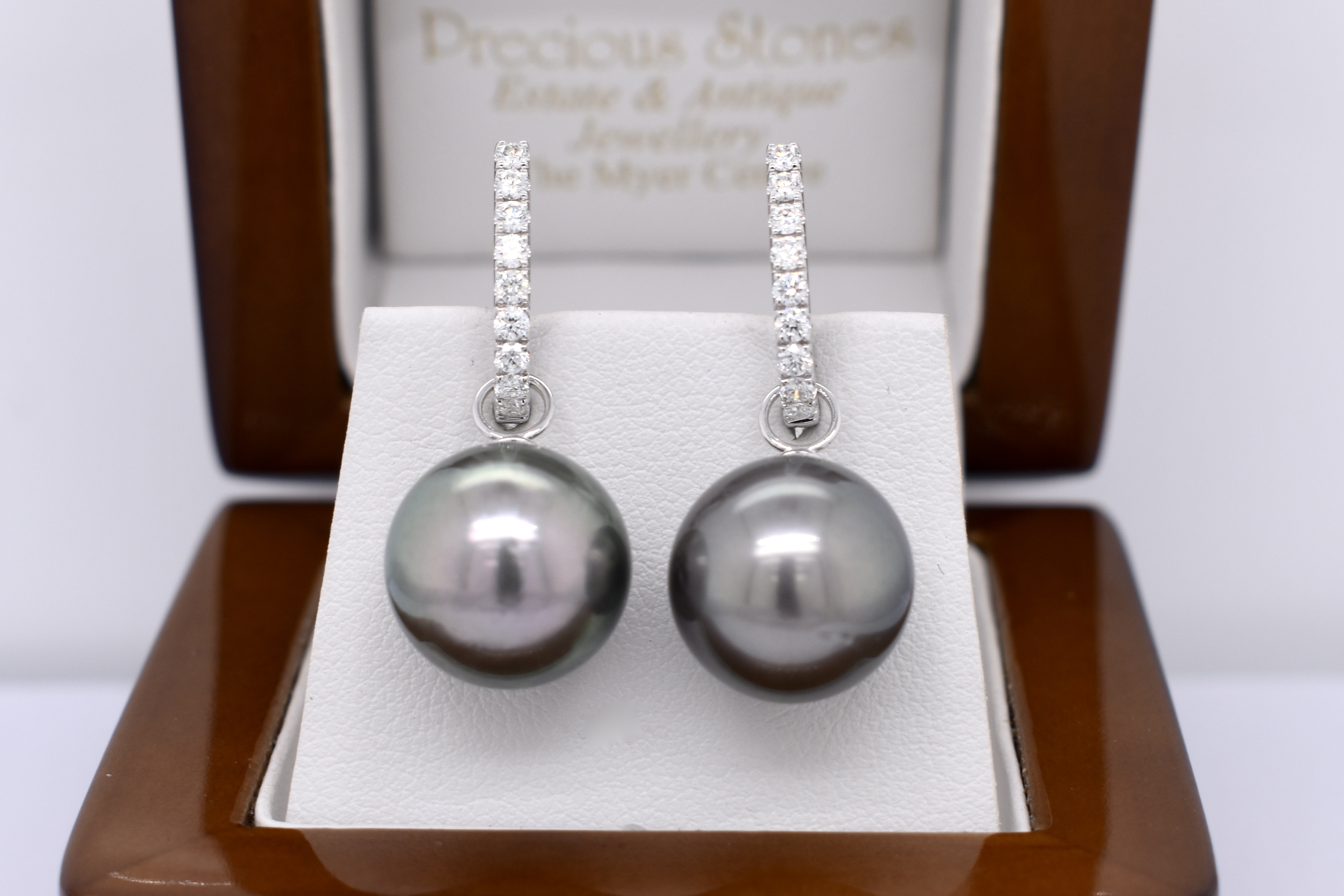 18ct Decorative Tahitian Pearl & Diamond Drop Earrings