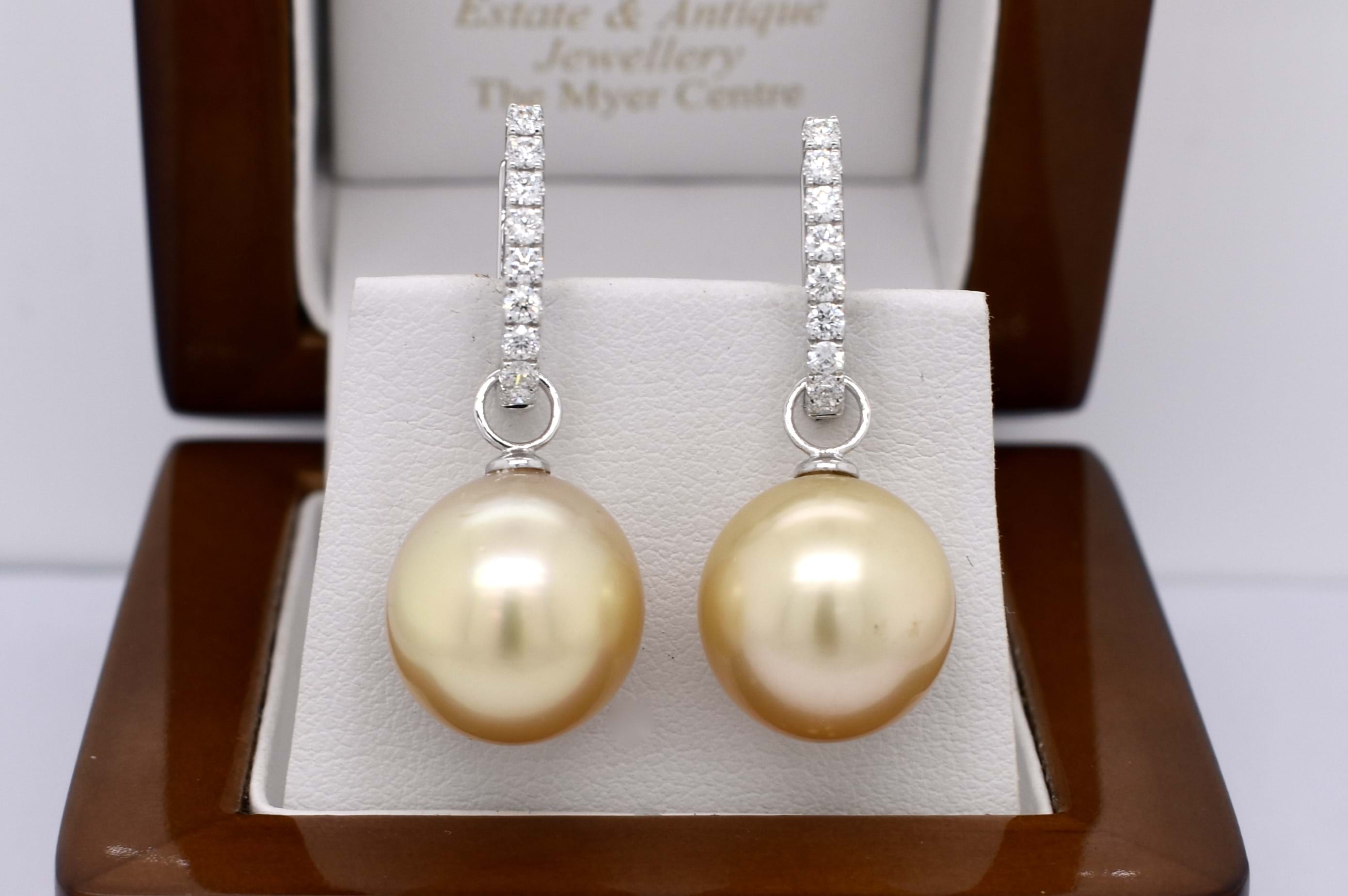 18ct White Gold 13-13.5mm Golden South Sea Pearl Earring Enhancers
