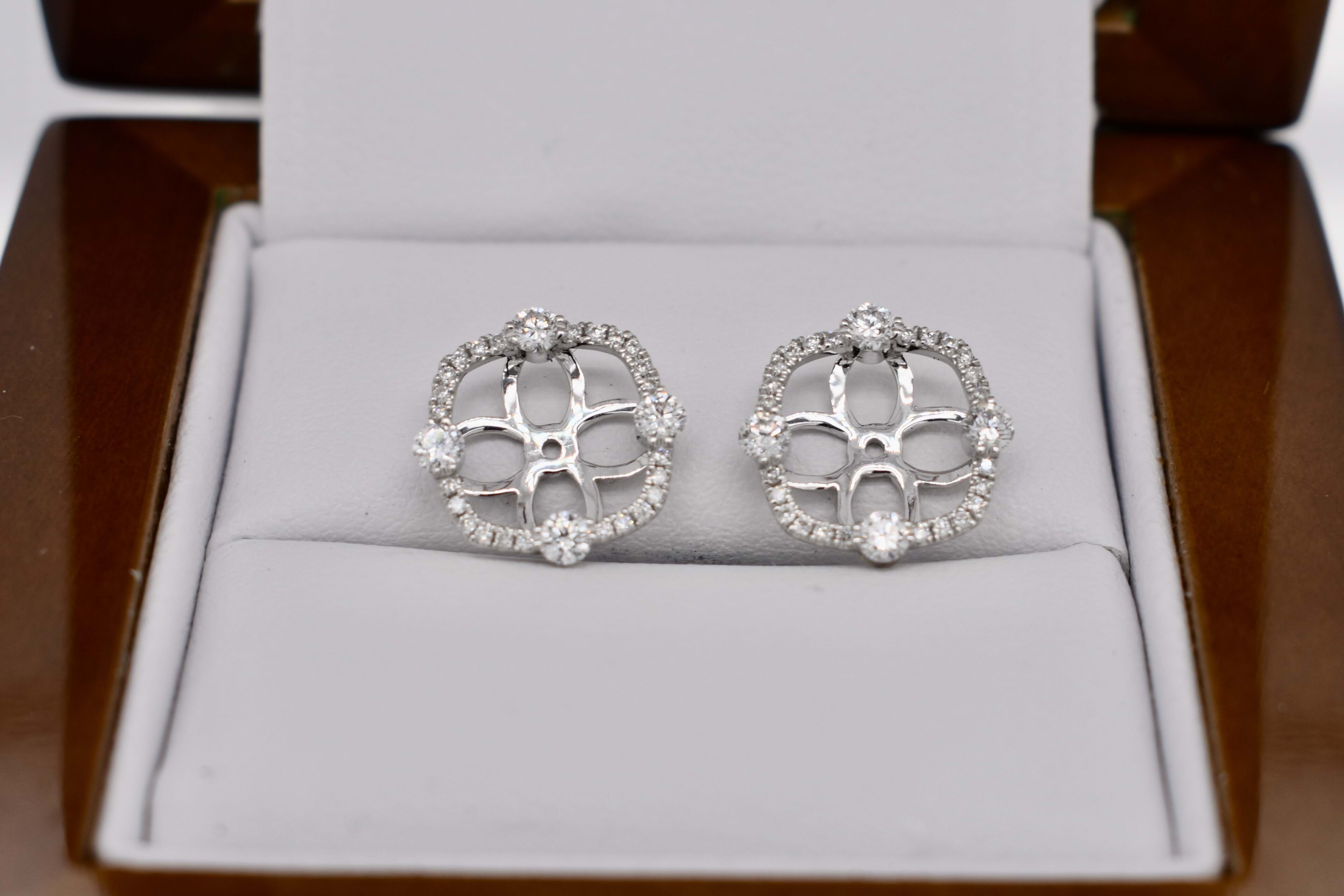 18ct White Gold 0.42ct Diamond Deco Inspired Cushion Earring Jackets