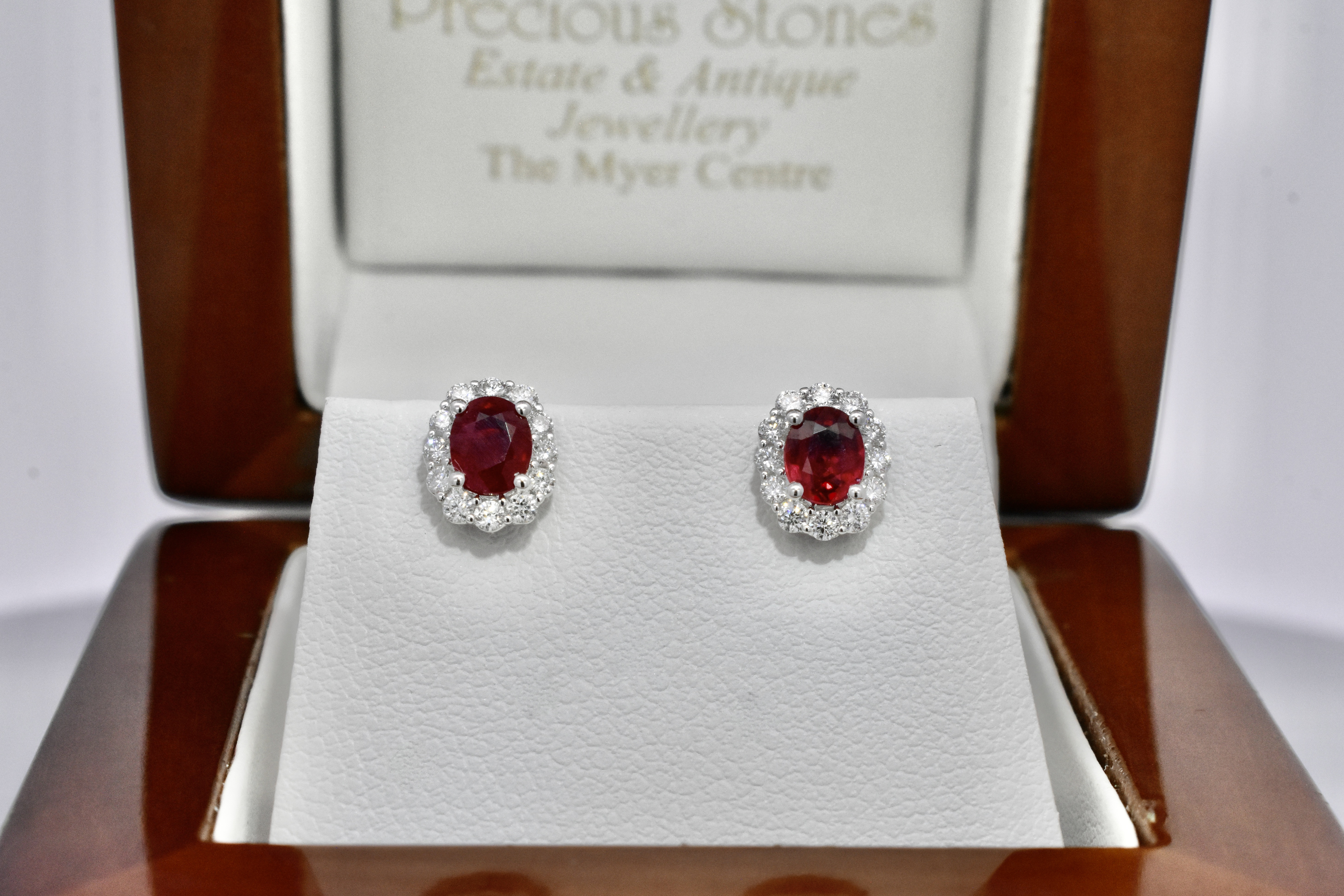18ct White Gold 0.90ct Ruby & 0.29ct Diamond Halo Studs