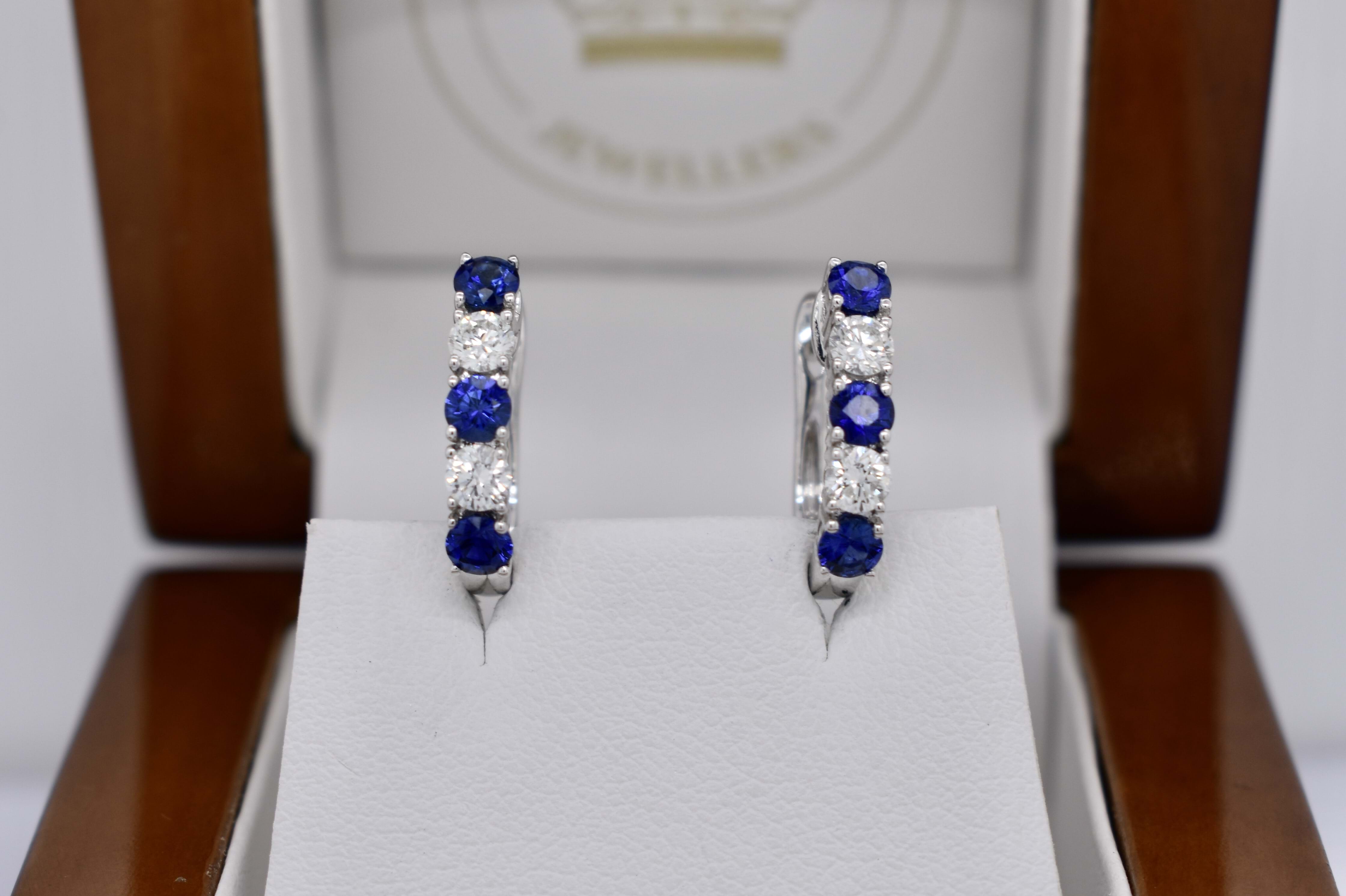 18ct White Gold 0.80ct Ceylon Sapphire & 0.45ct Diamond Huggies