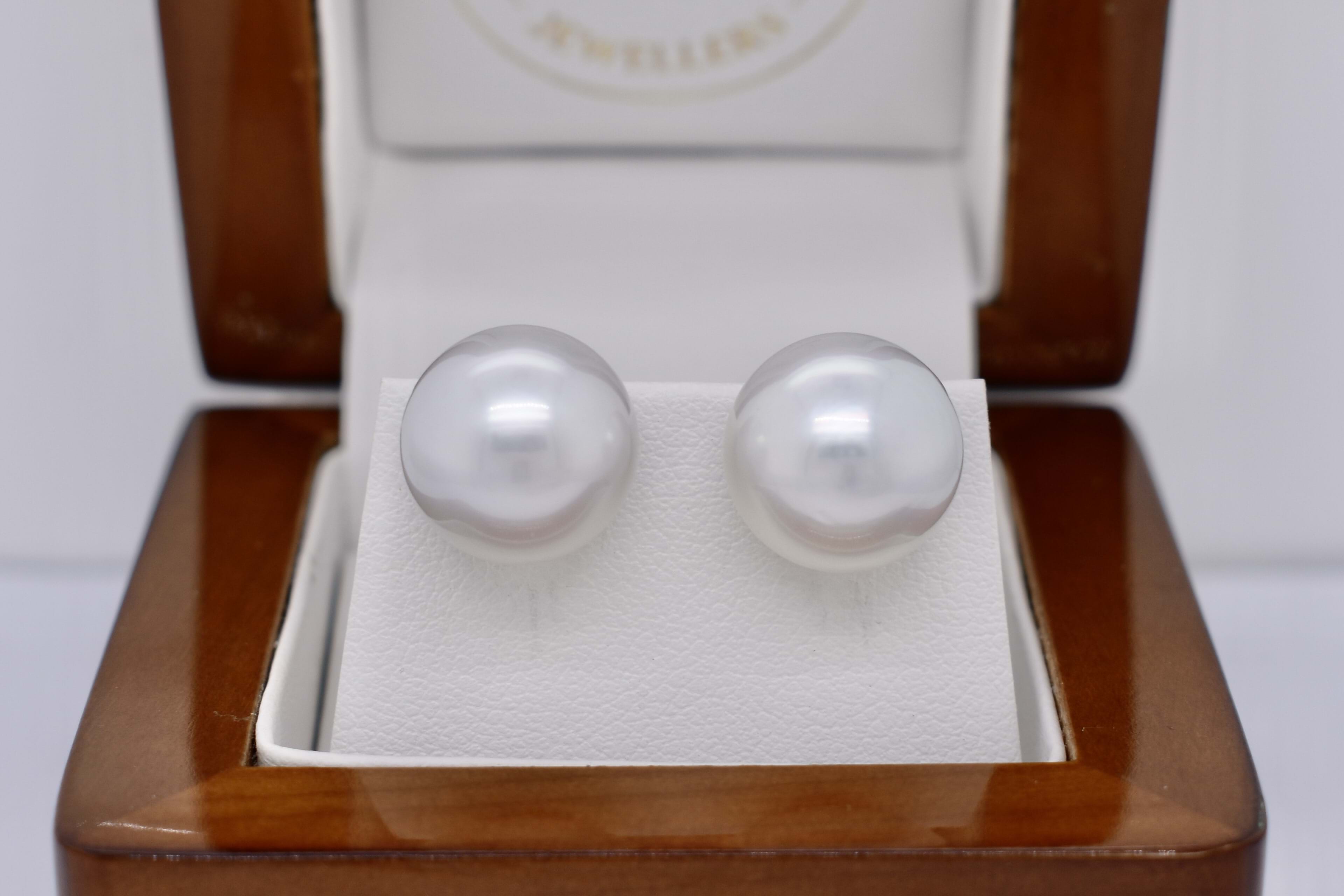 18ct White Gold South Sea White Pearl 12-12.5mm Studs