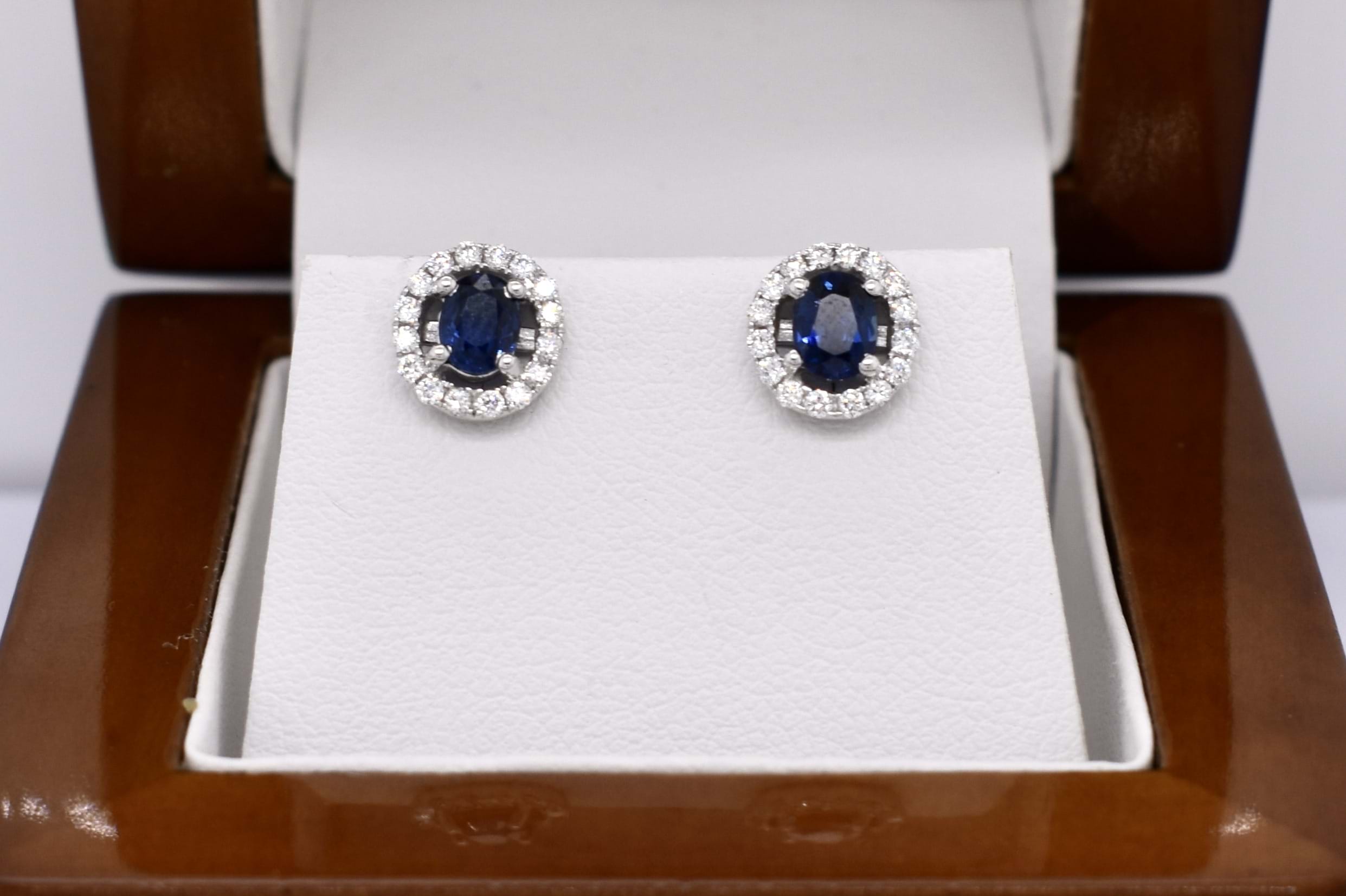 18ct White Gold 0.75ct Blue Sapphire & 0.30ct Diamond Halo Studs