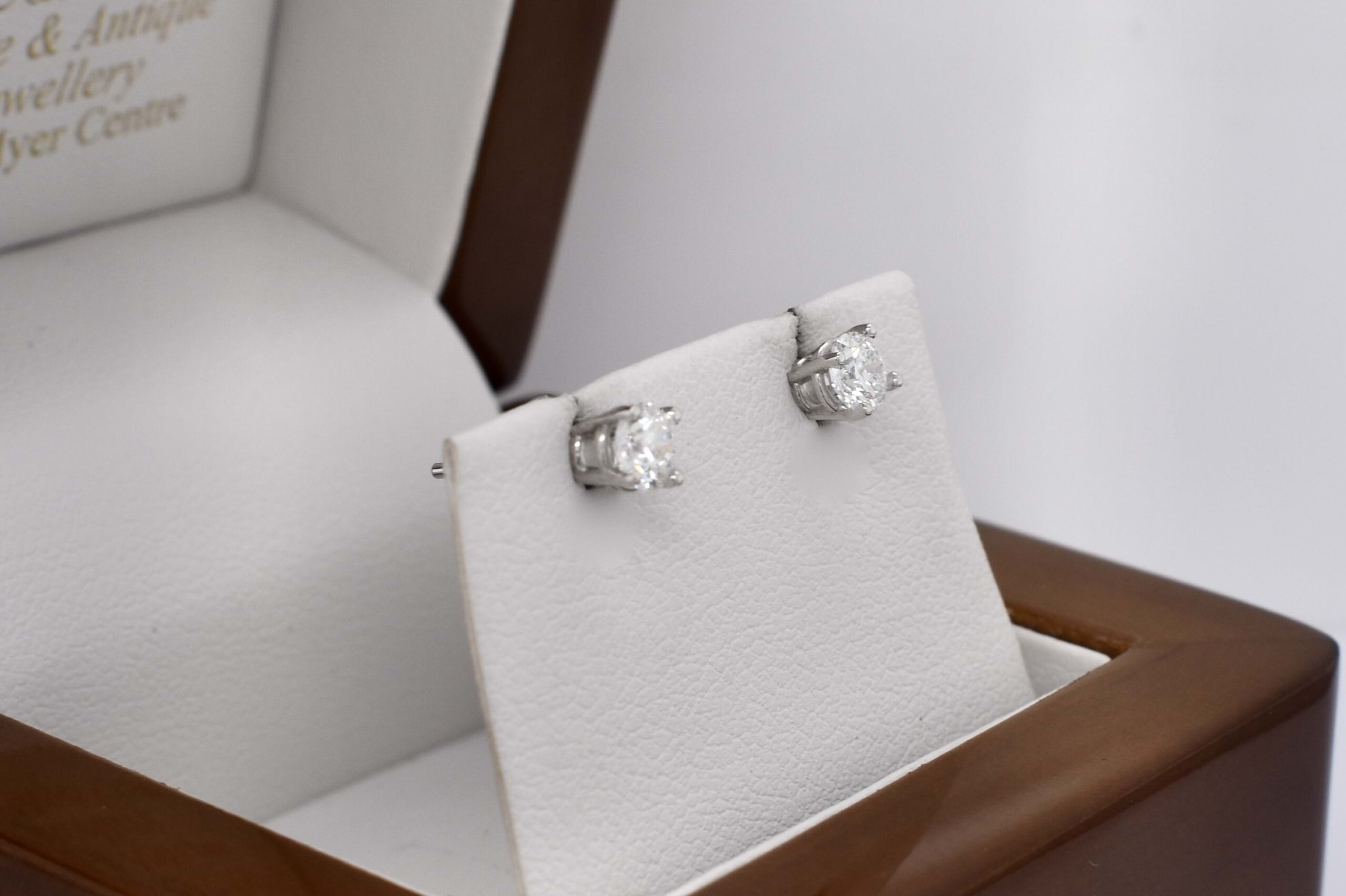 These sparkling studs are beautifully crafted in 18ct white gold, featuring two 4.0mm round diamonds, G-H Colour SI clarity, totalling 0.50ct. They are four claw set with classic post and butterfly settings. 0.85 grams. Independent Valuation Supplied.