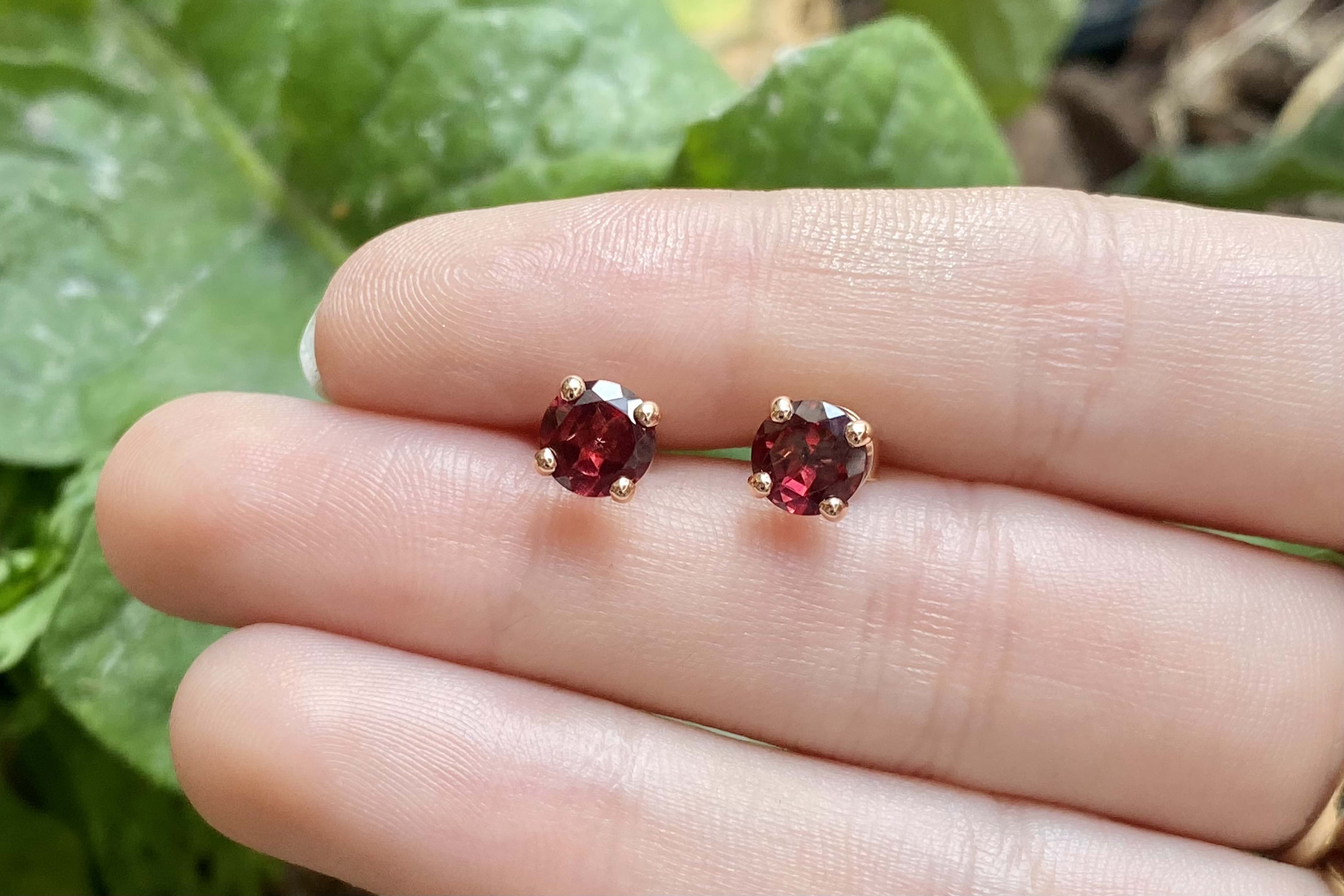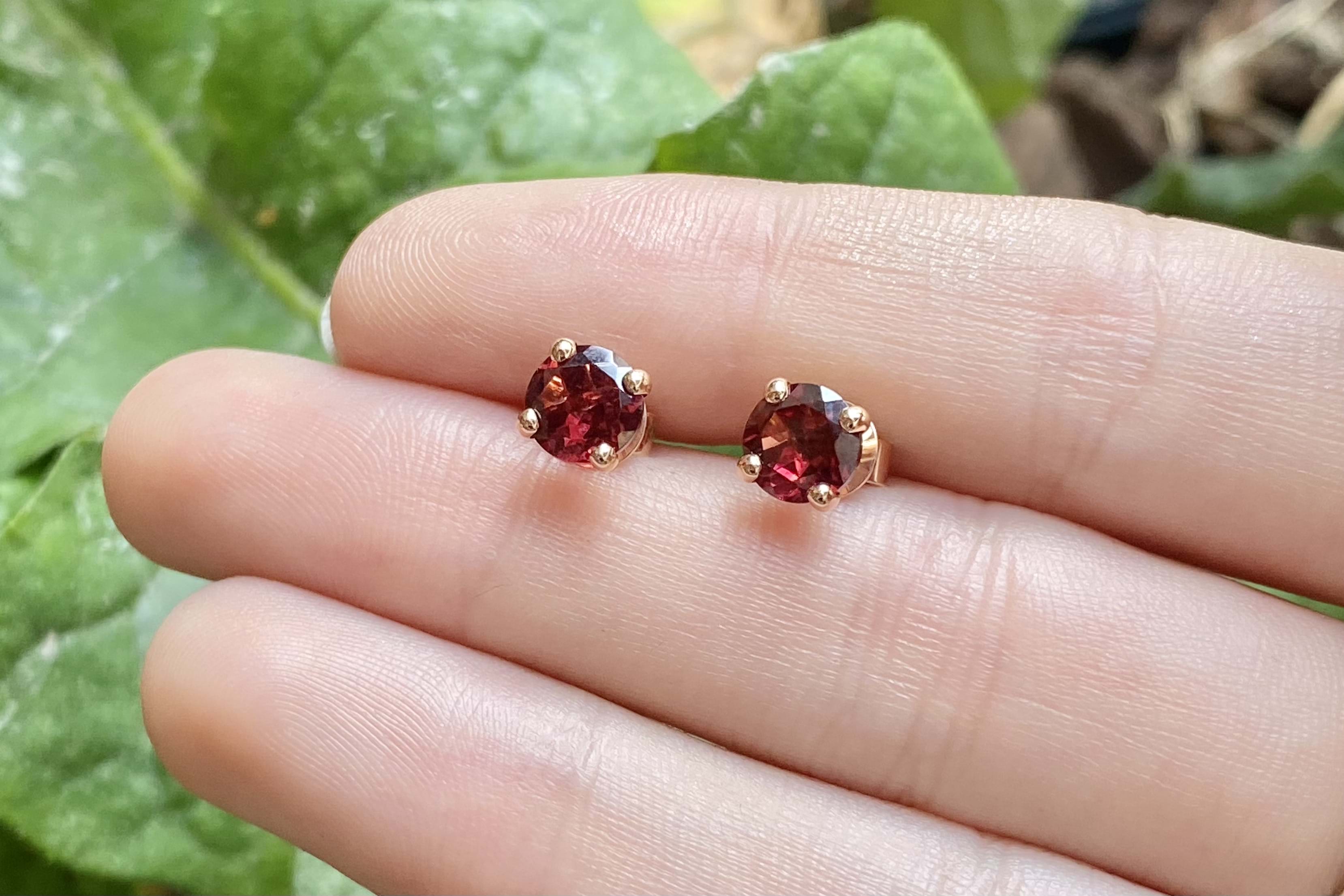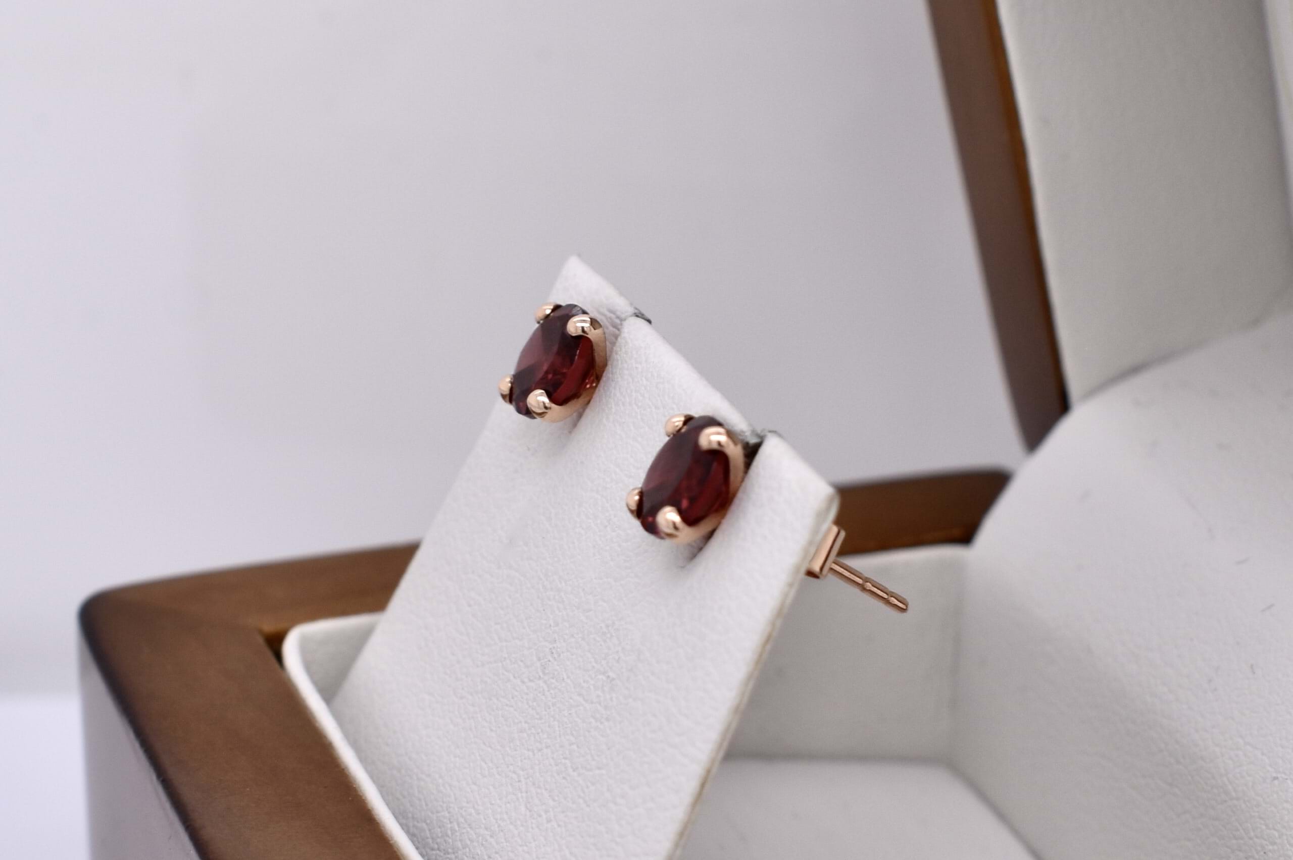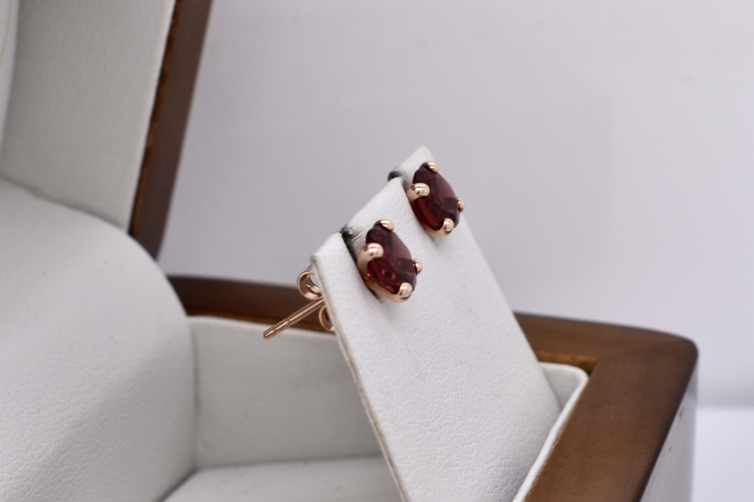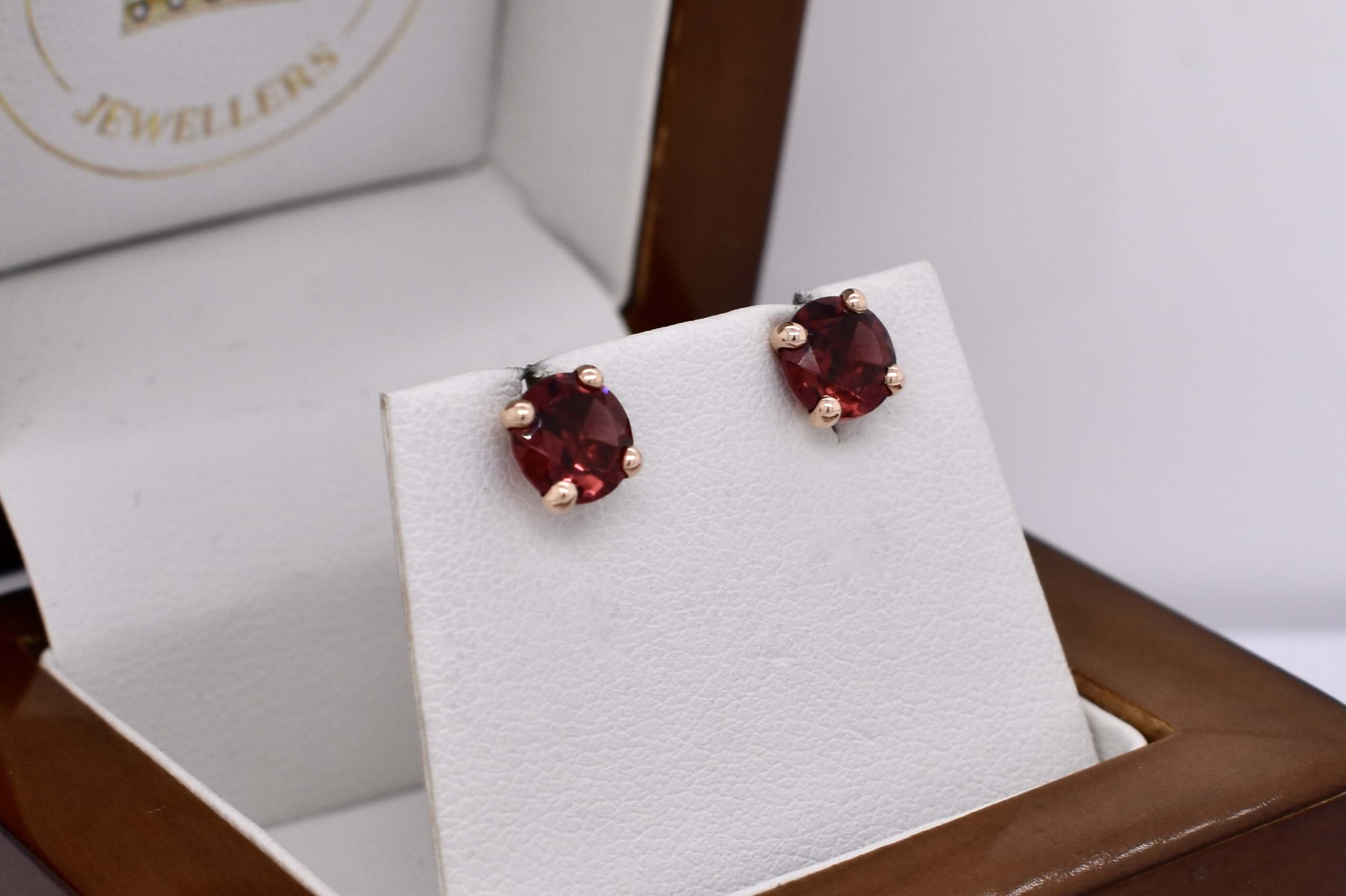 Crafted in 9ct rose gold, these pretty garnet studs measure 6mm round and are four claw set with post and butterfly fittings.
