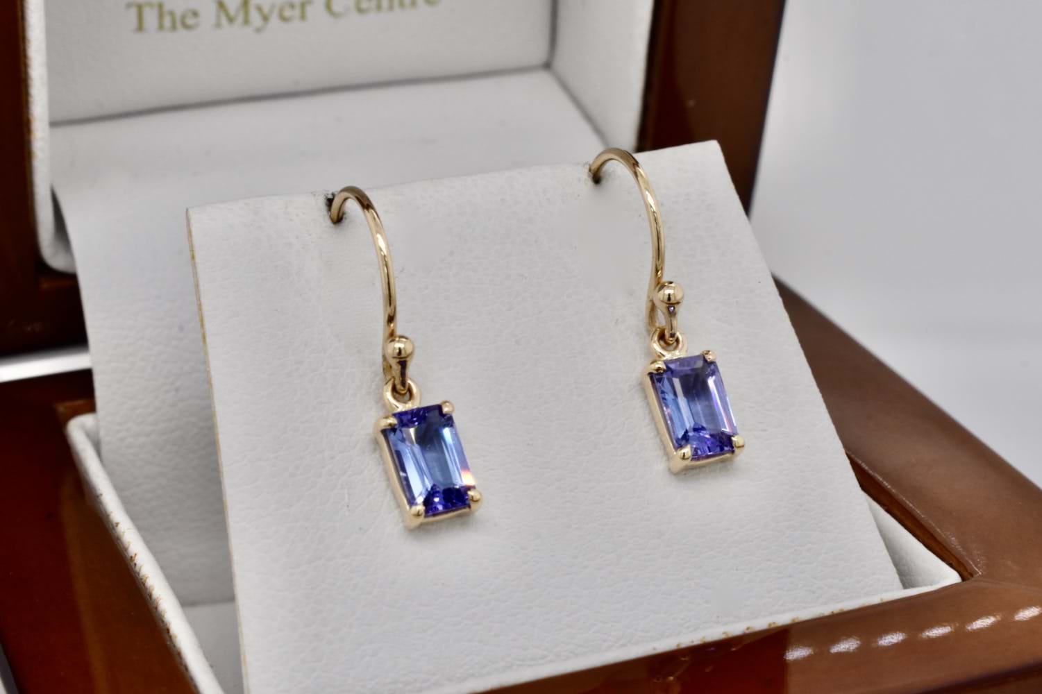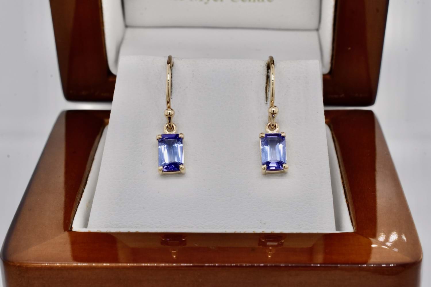 SOLD Handmade 9ct Yellow Gold Emerald Cut Tanzanite Drops