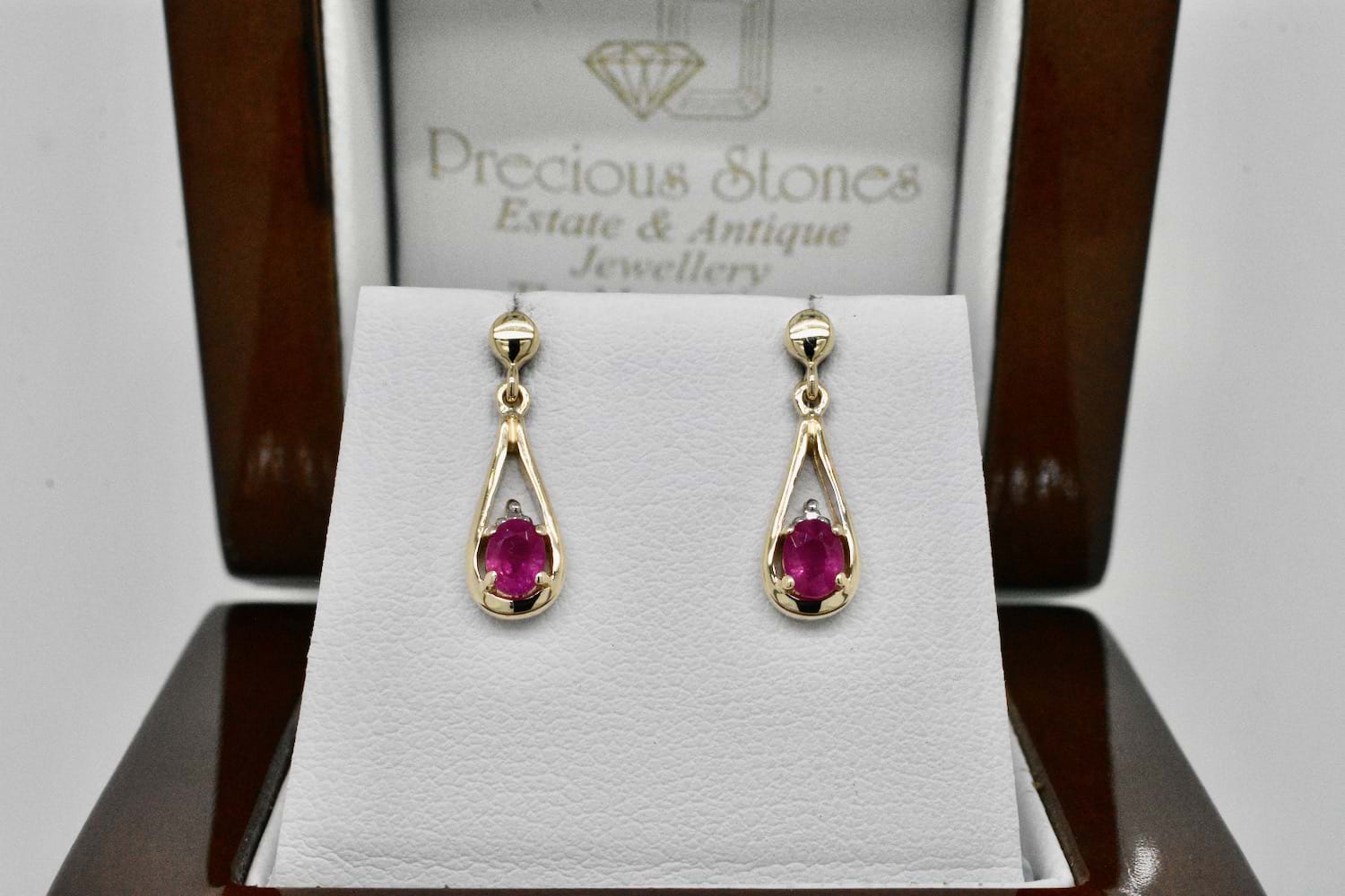 Handmade 9ct Yellow Gold Oval 4 Claw Garnet Drops