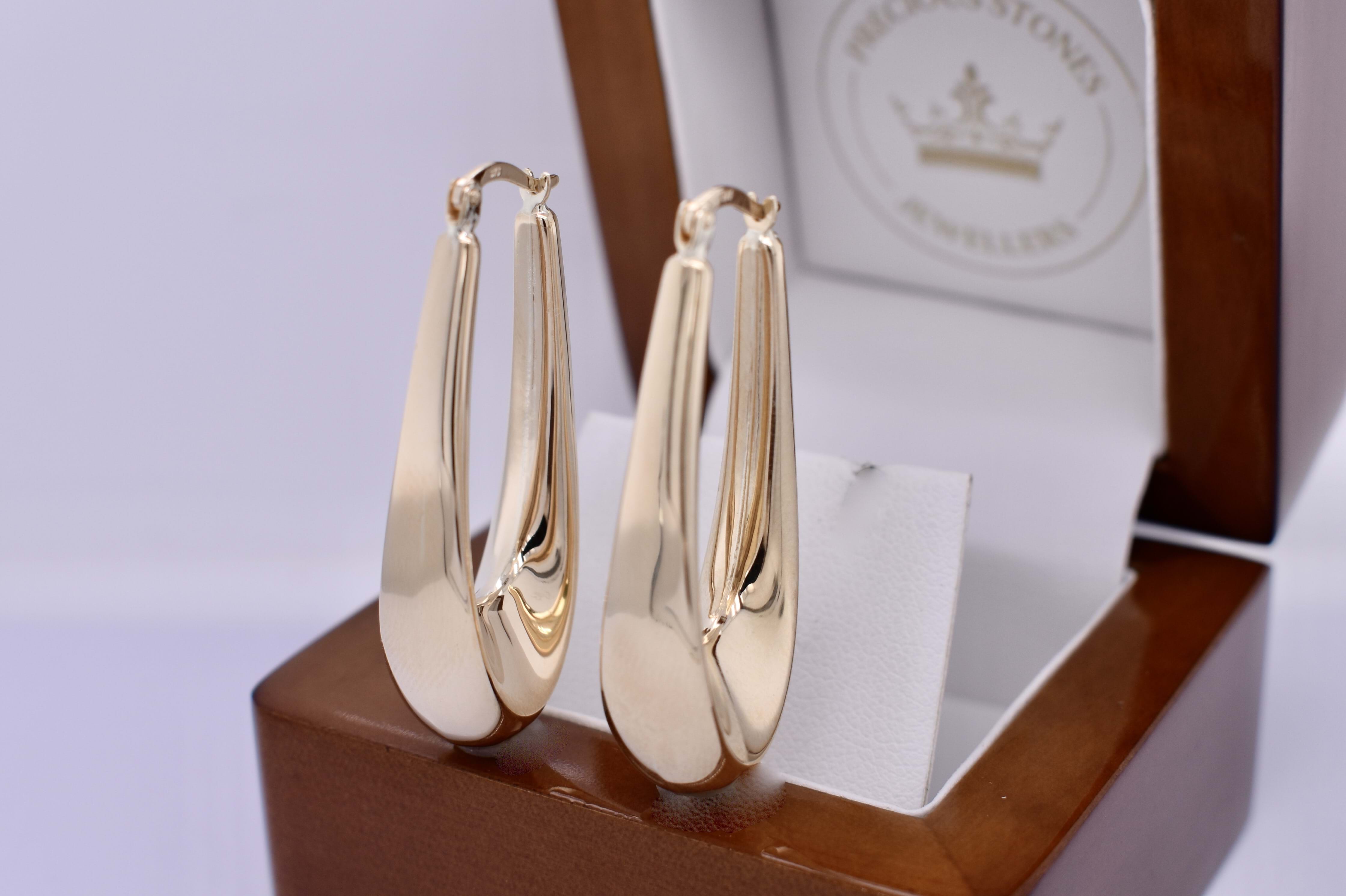 9ct Yellow Gold Elongated 41x16mm V-Shape Puff Hoops