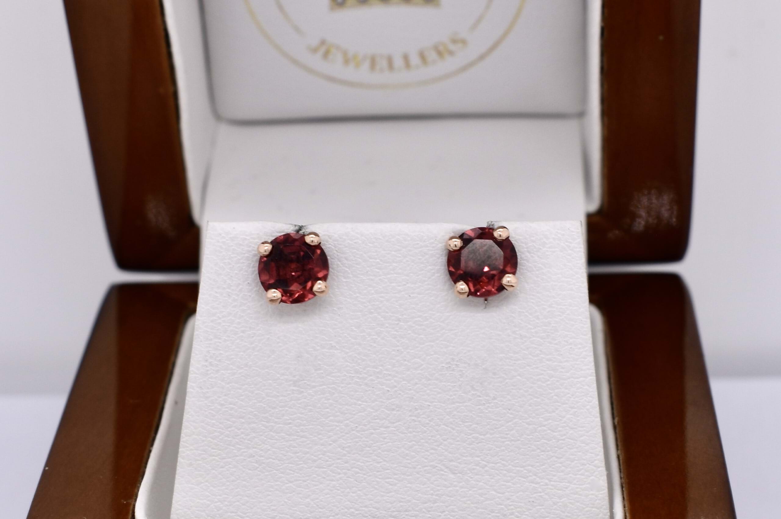 9ct Rose Gold 6mm Round Garnet Studs
