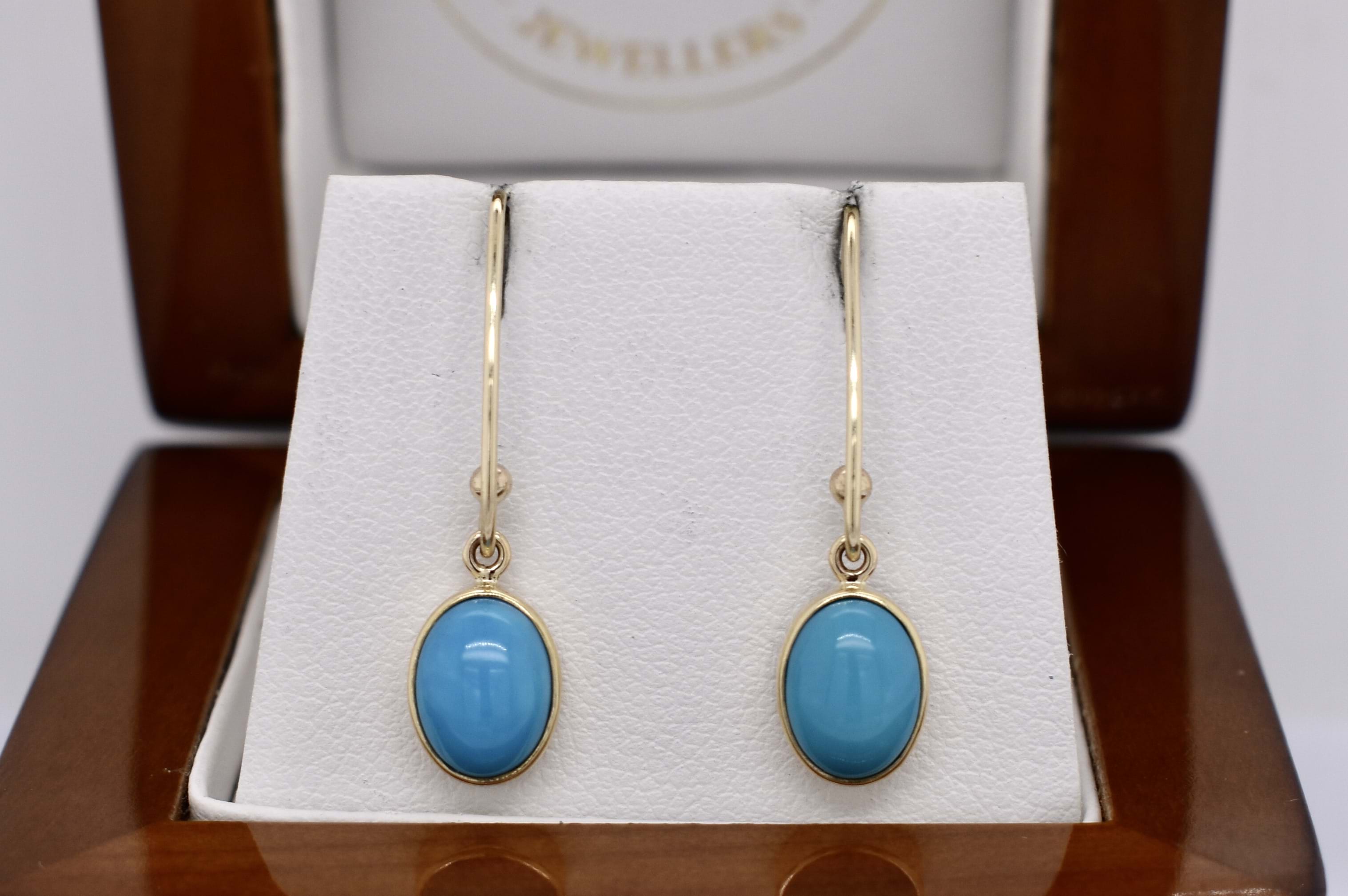 9ct Yellow Gold Oval Arizona Turquoise Drops