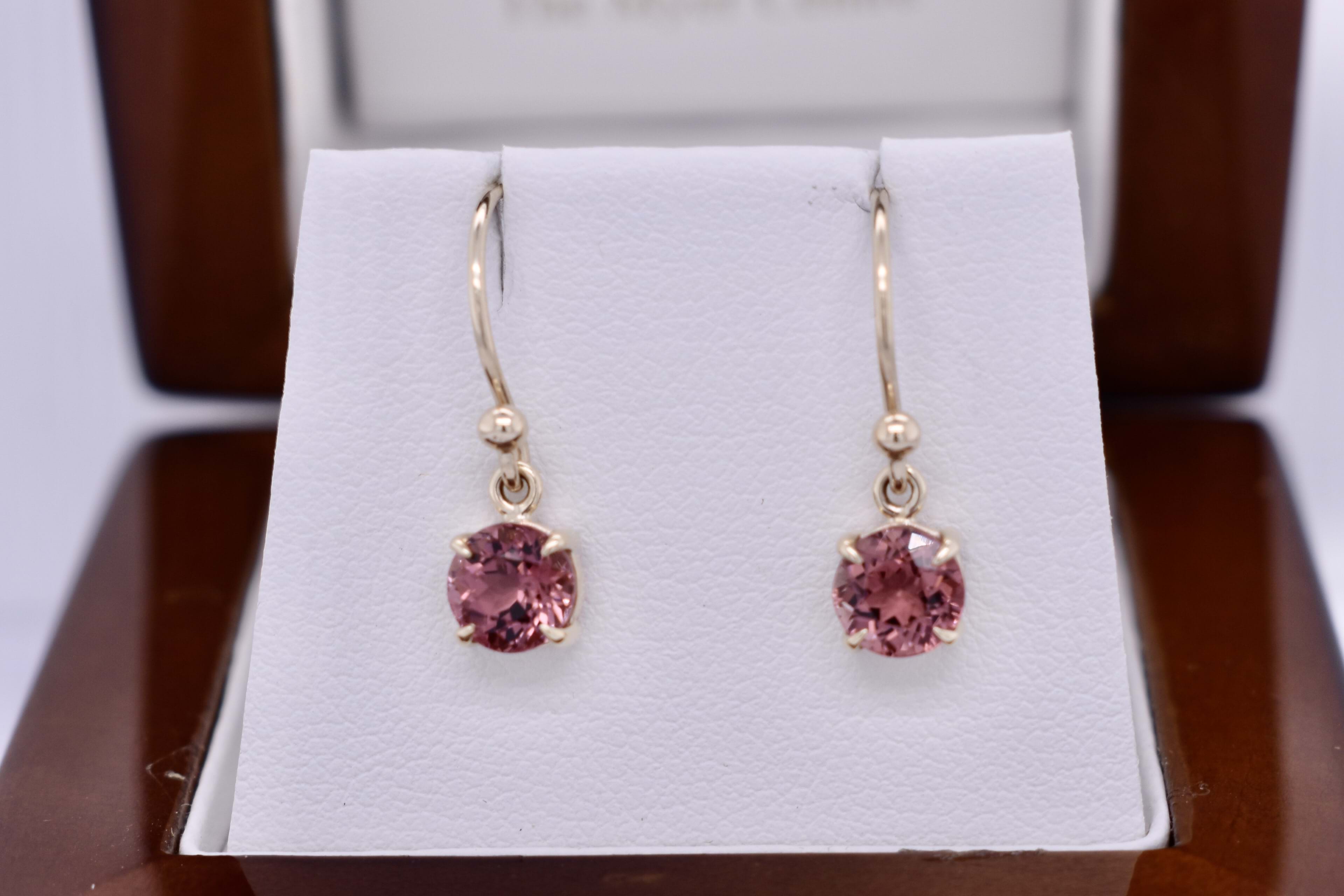 Handmade 9ct Yellow Gold Pink Tourmaline 5mm Round Drops