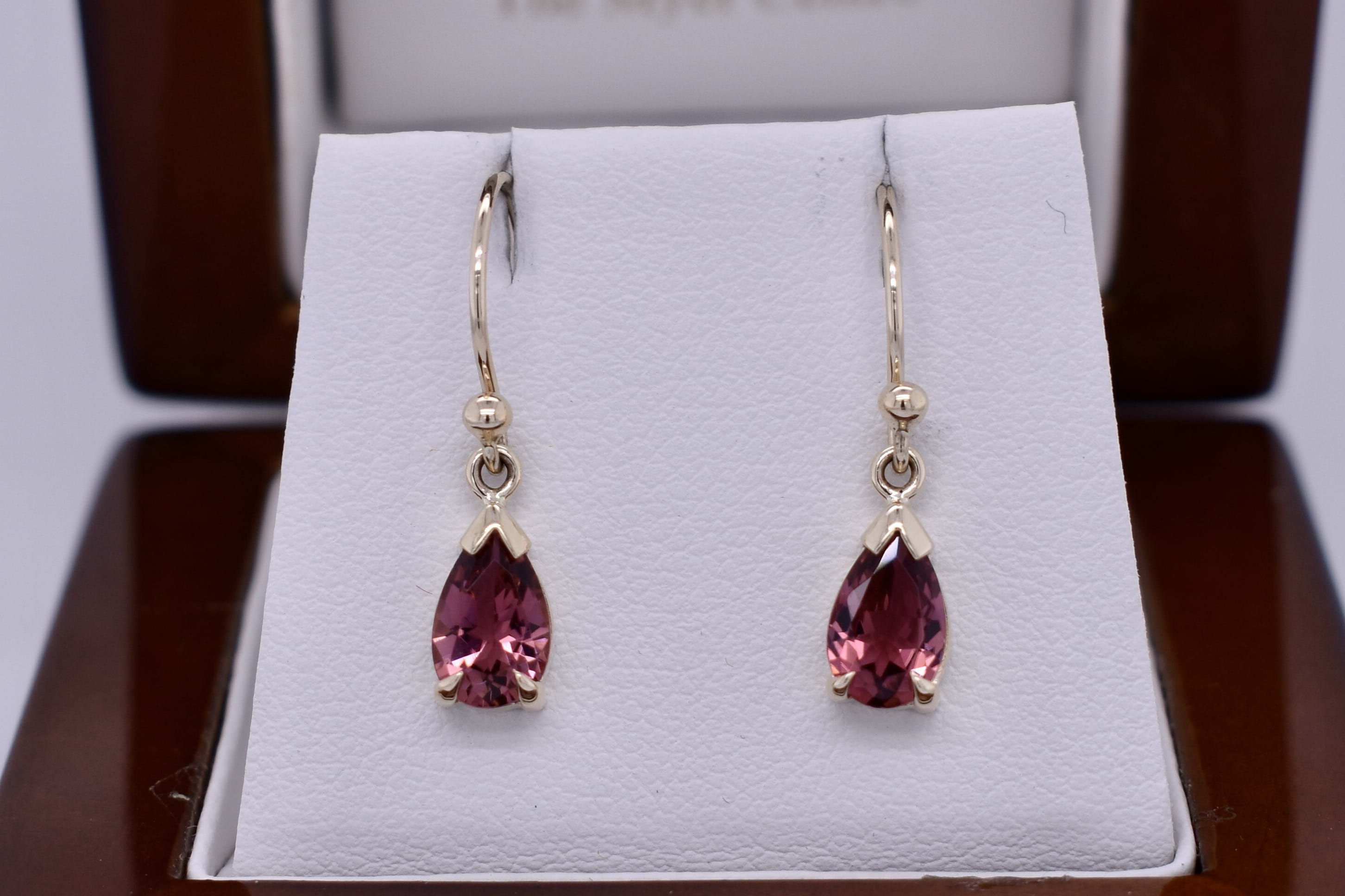 Handmade 9ct Yellow Gold Pear Shaped Pink Tourmaline Drops