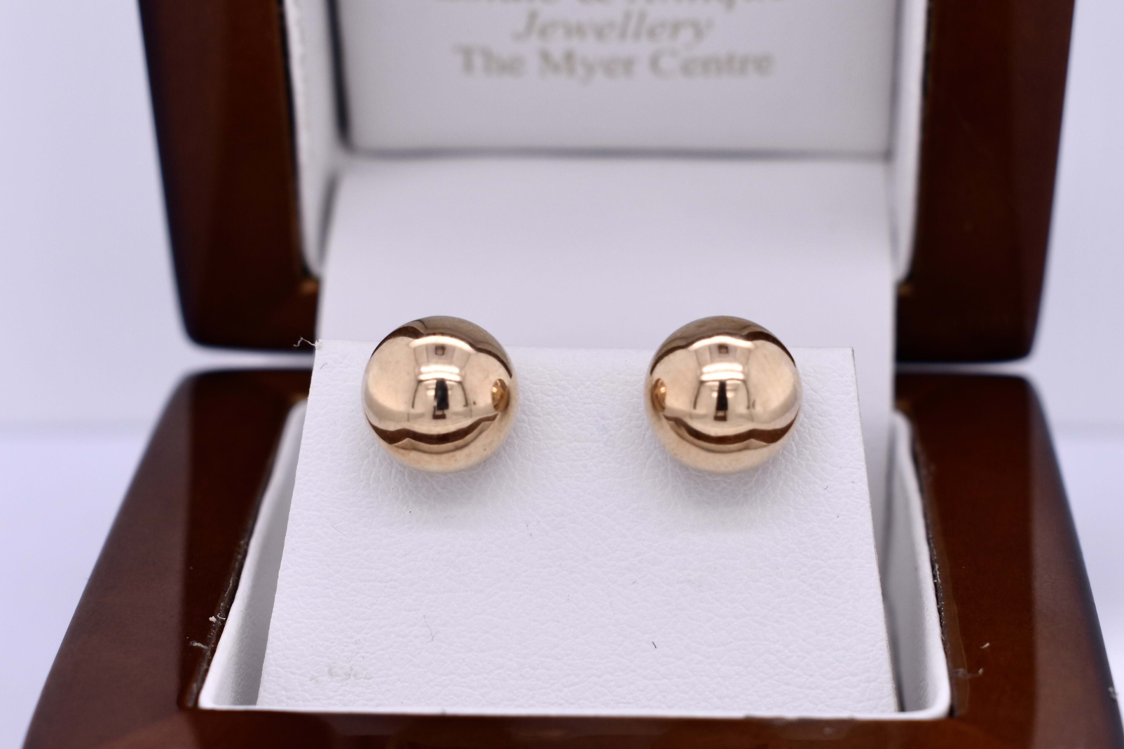 9ct Yellow Gold 9.2mm Hollow Ball Studs