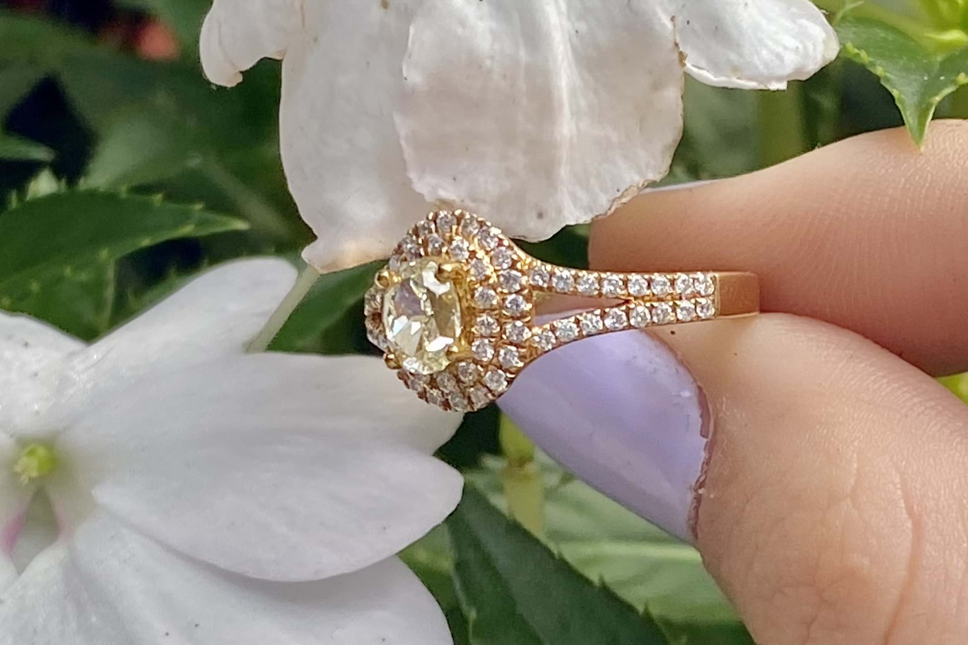 SOLD 18ct Rose Gold 0.64ct Fancy Yellow Diamond & 0.40ct White Diamond Ring (M+)