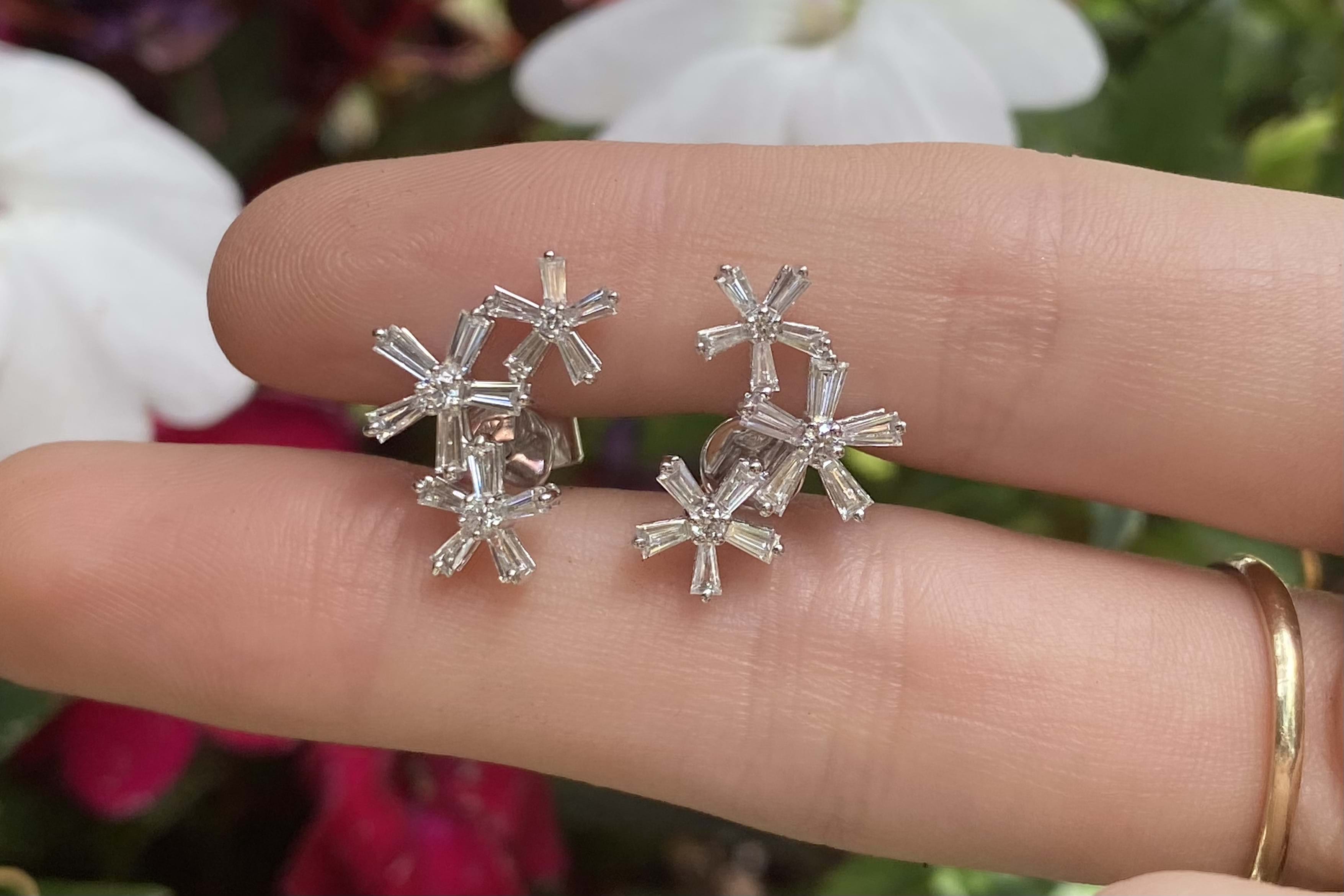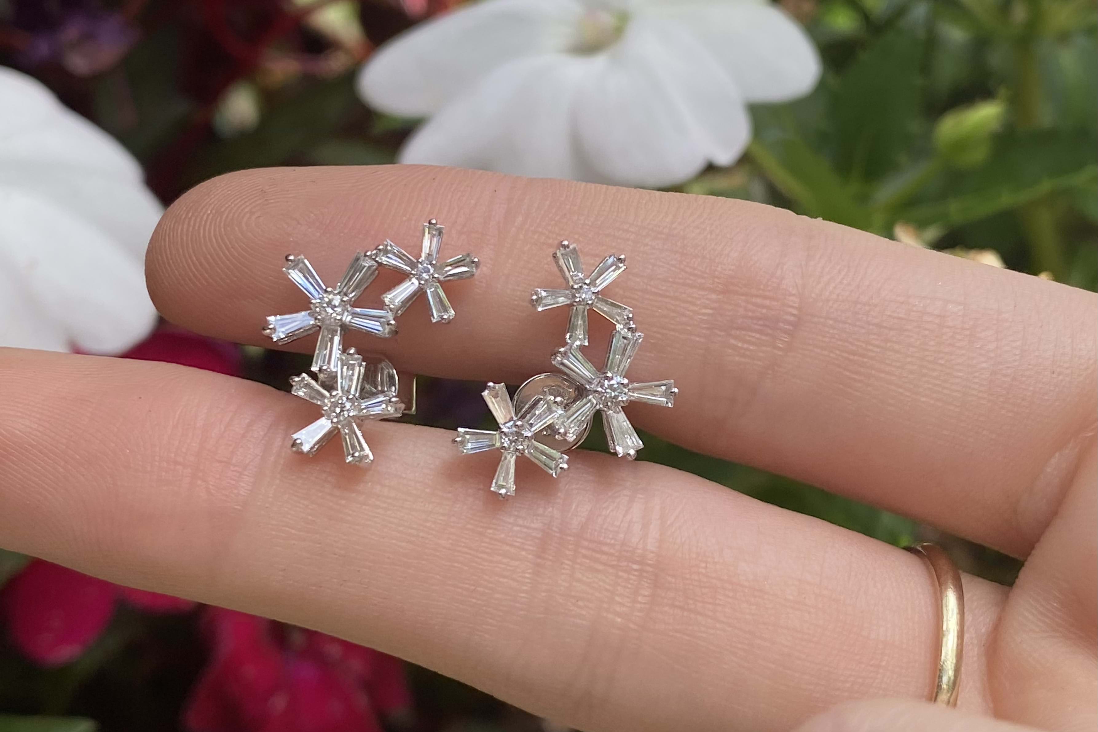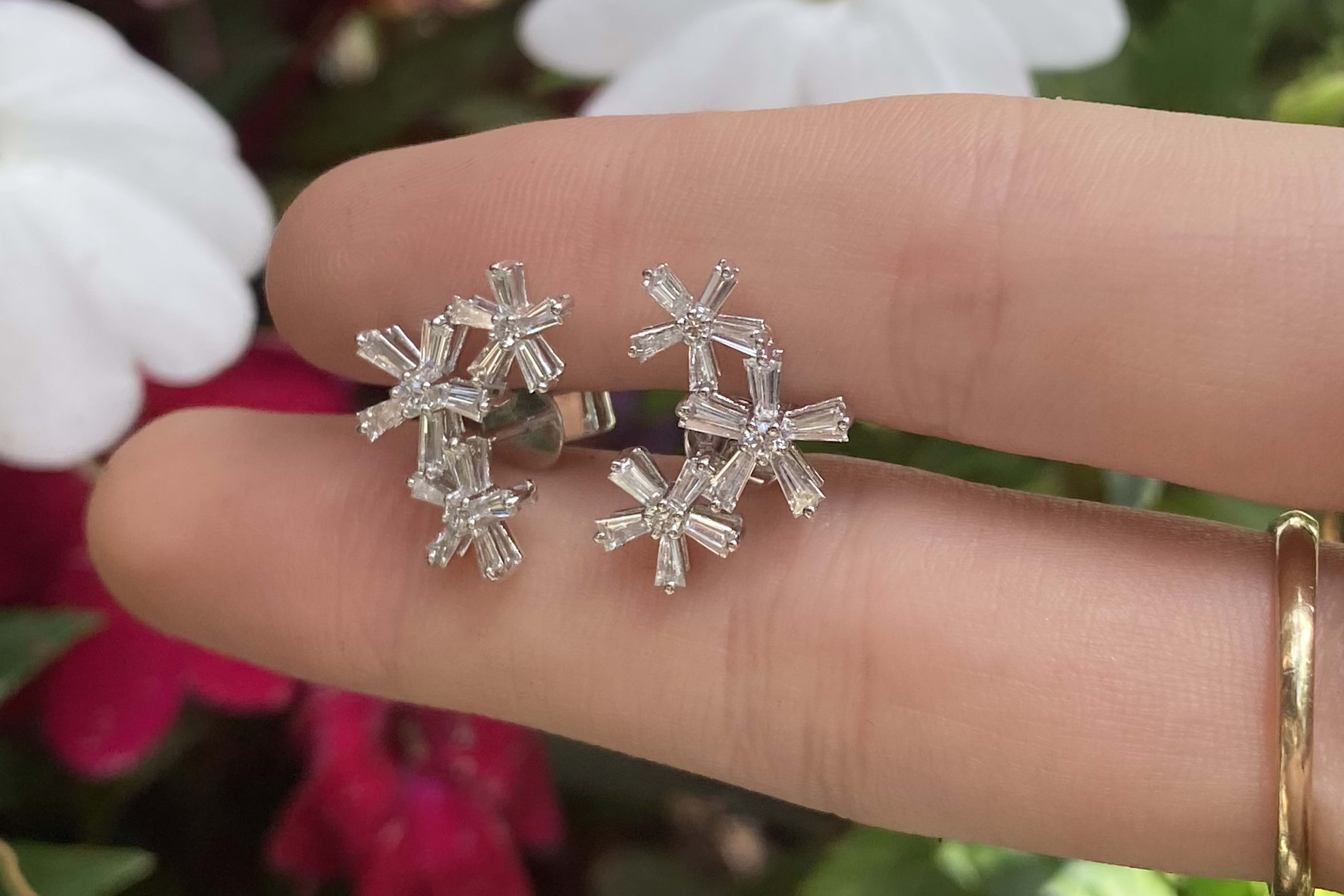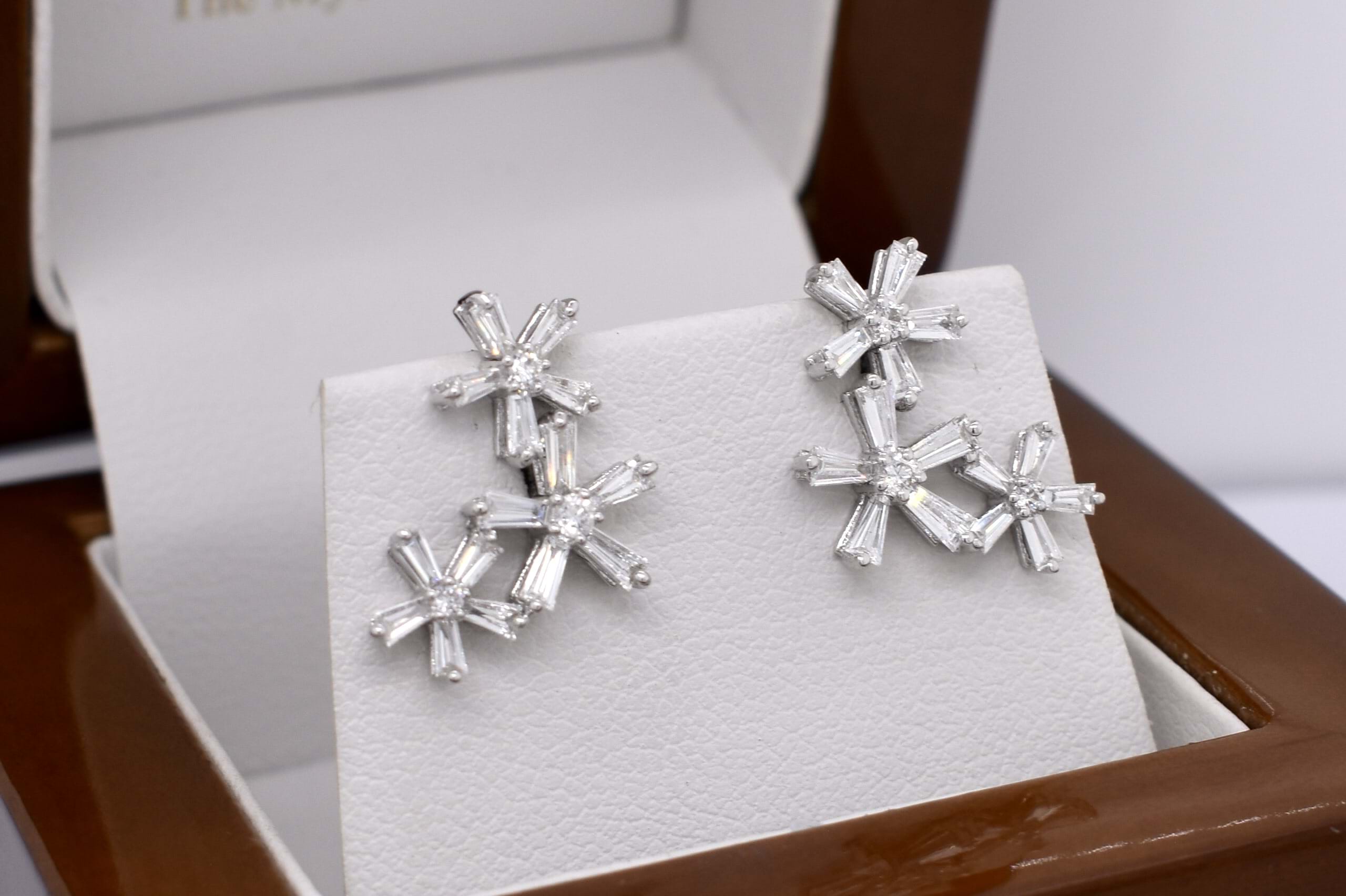 SOLD 18ct White Gold 0.85ct Baguette Diamond Flower Earrings