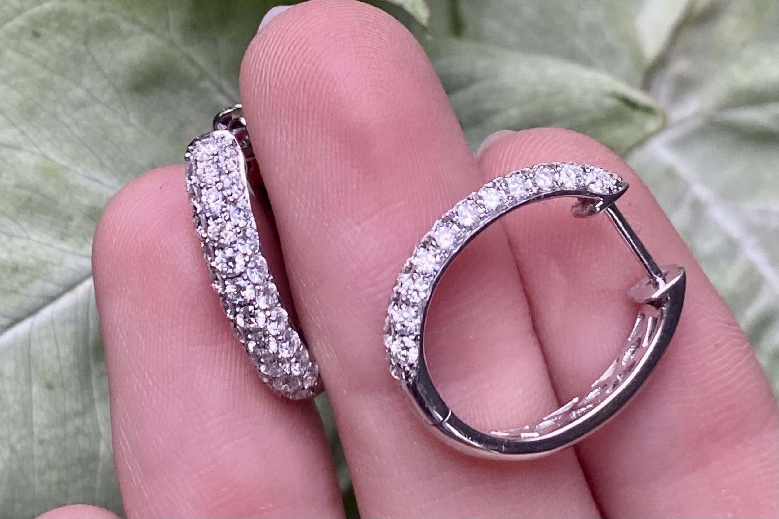 SOLD 18ct White Gold 1.34ct Diamond Pave Hoops
