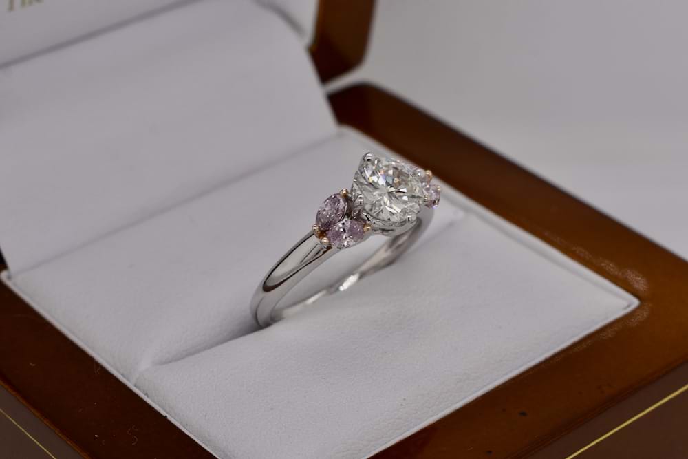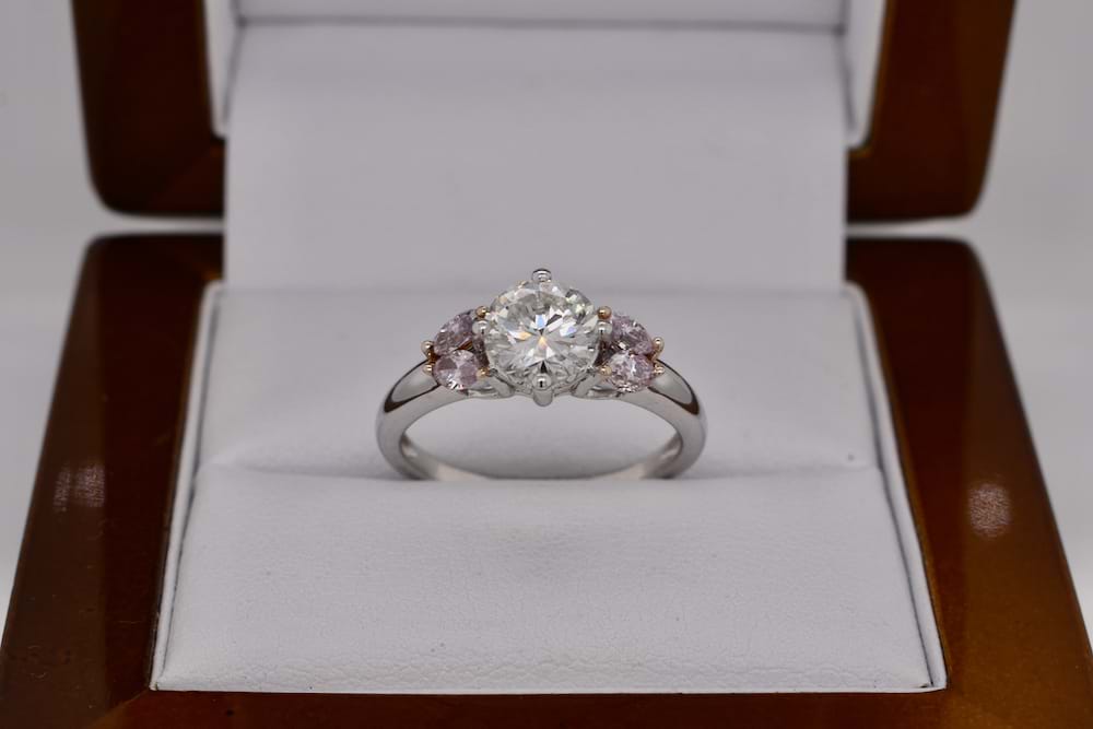 SOLD 18ct White Gold 1ct Diamond with 0.33ct Pink Diamonds Ring