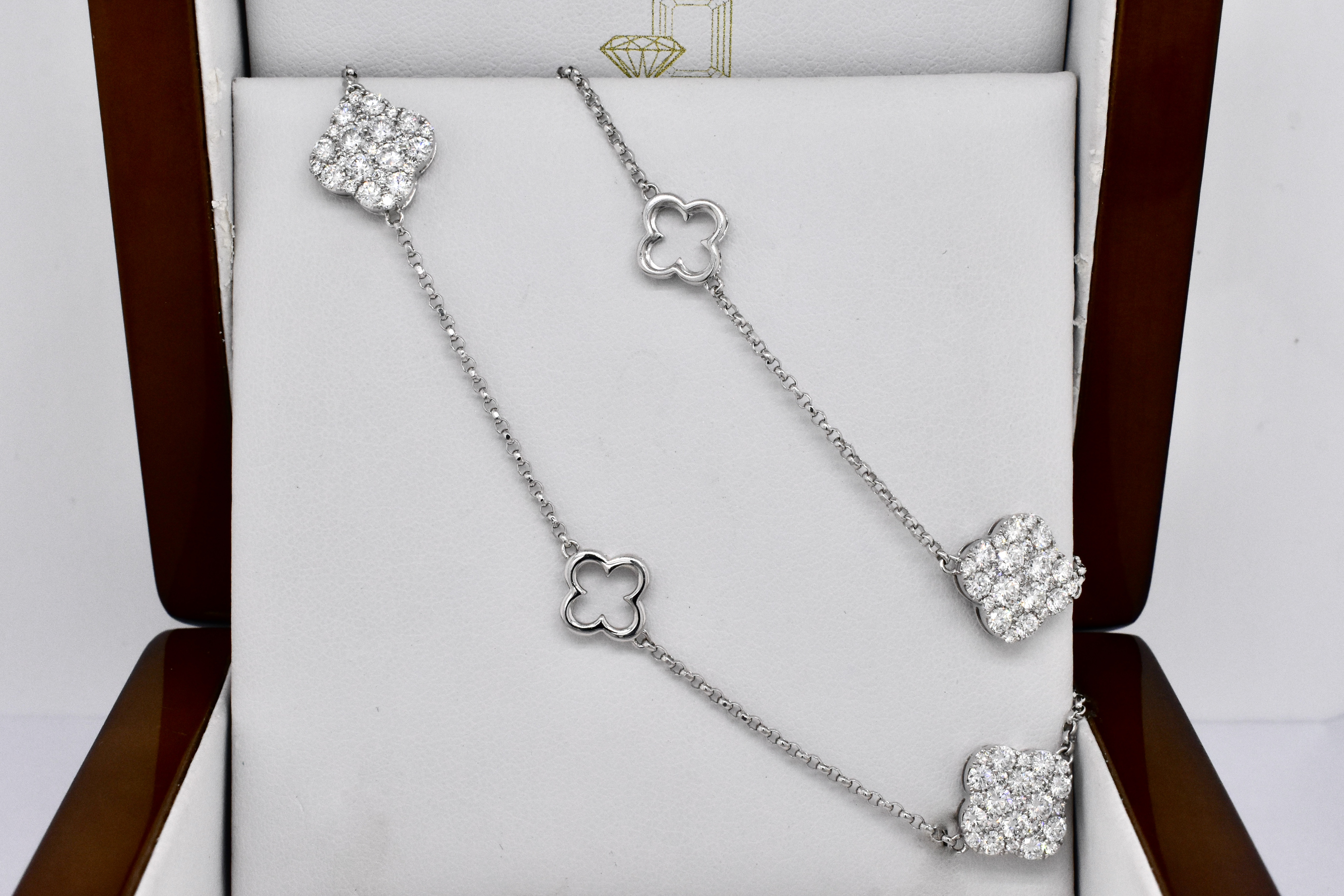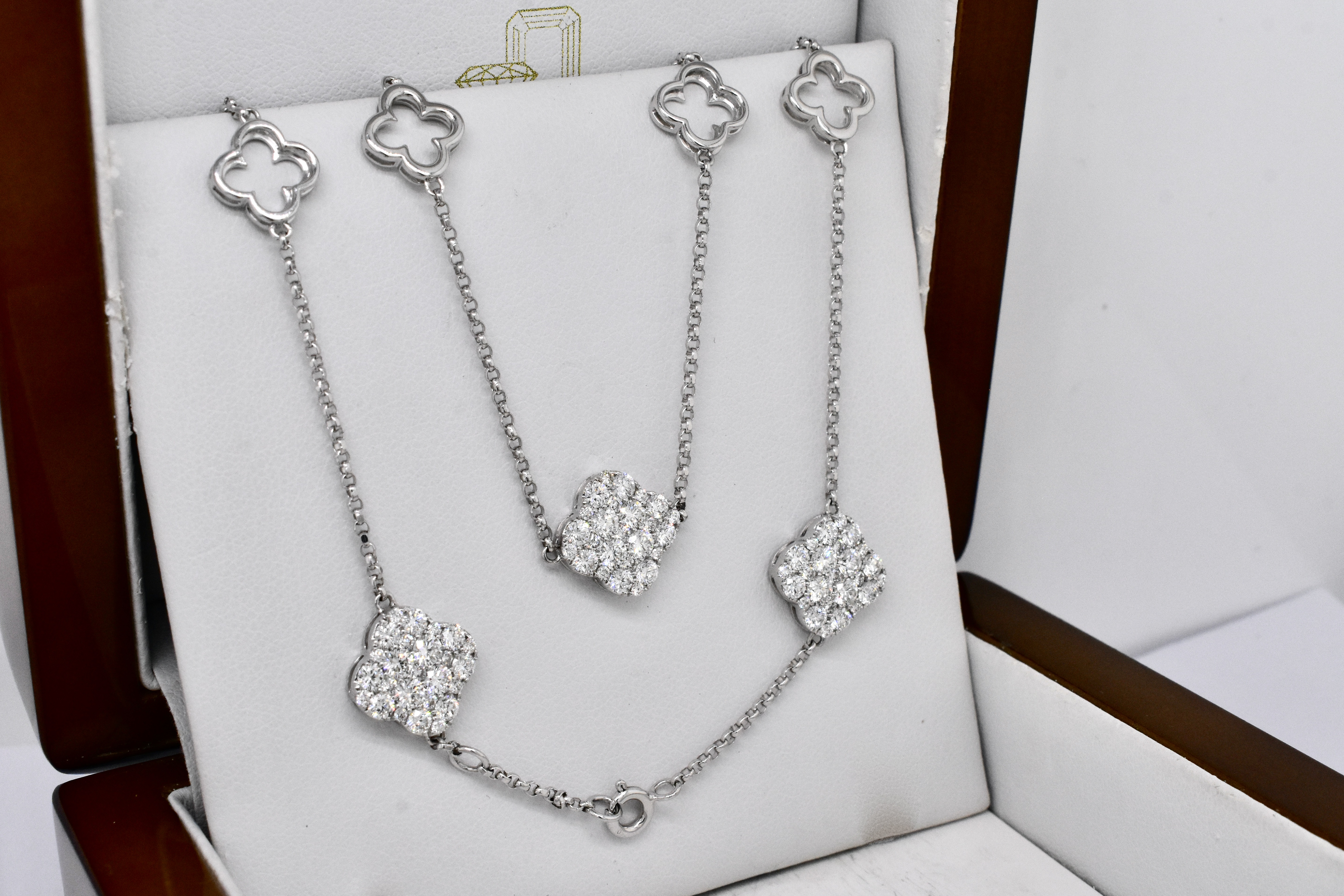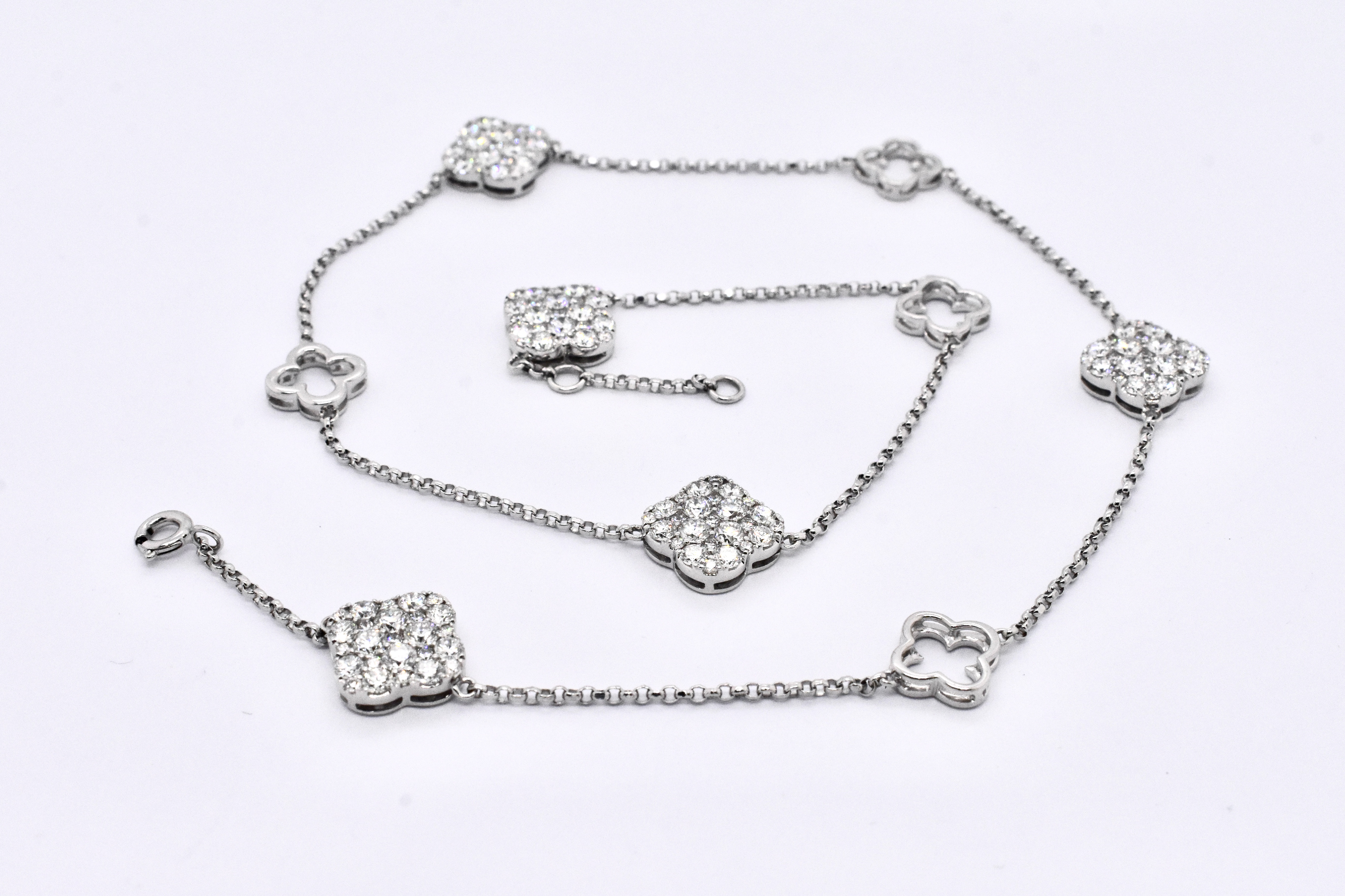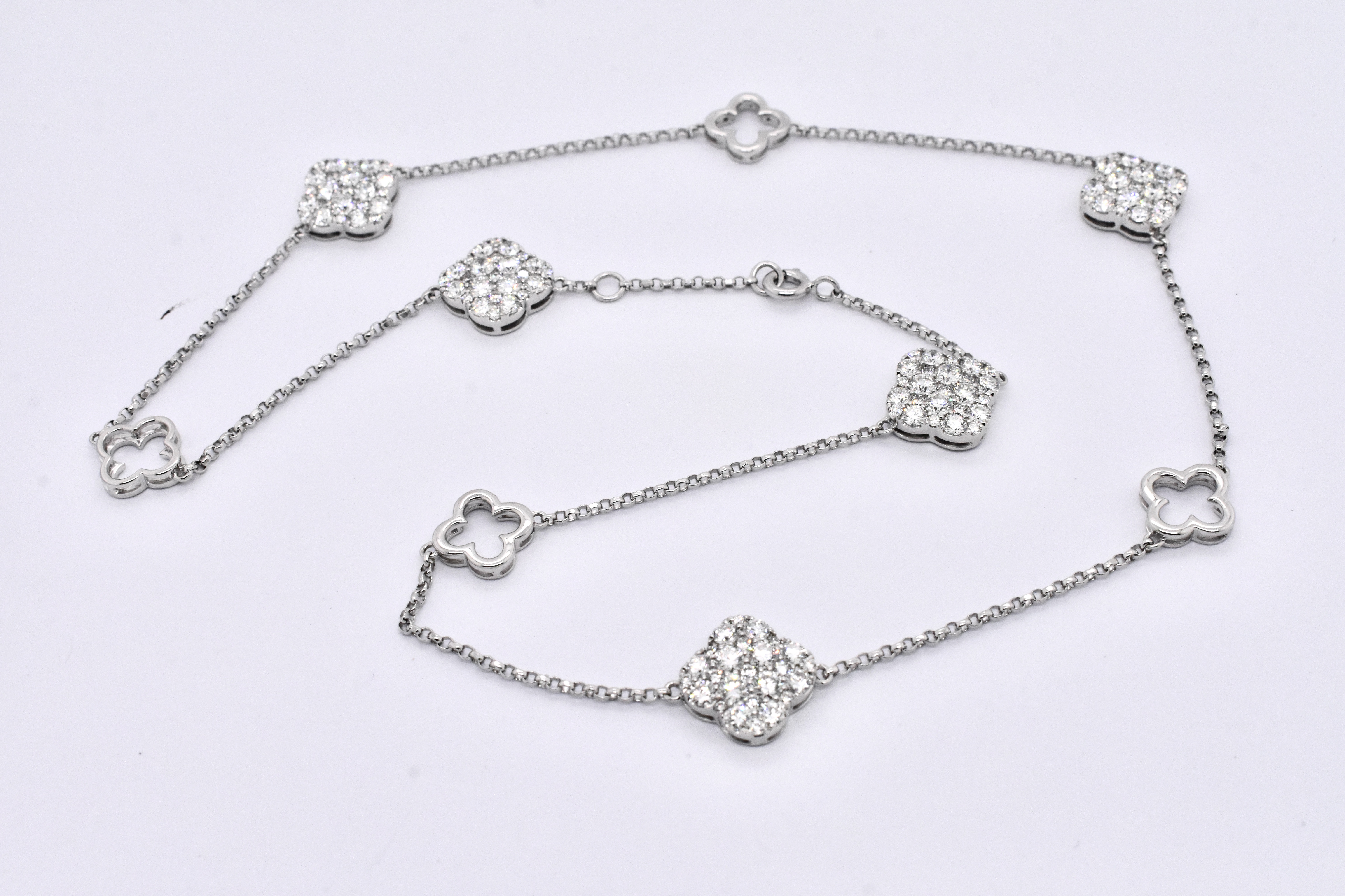 SOLD 18ct White Gold 4.00ct Diamond Stationed Clover 42.5cm Necklet