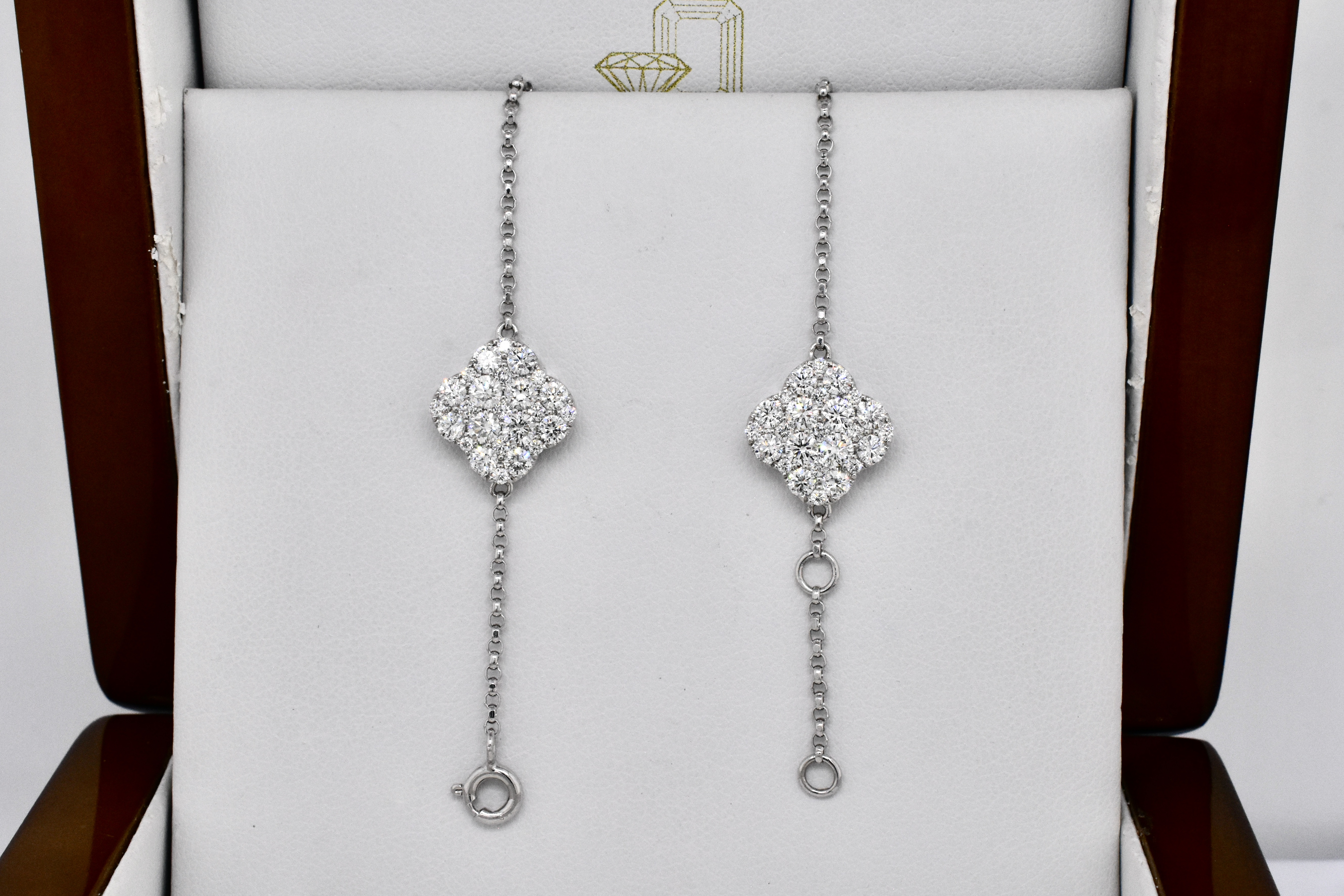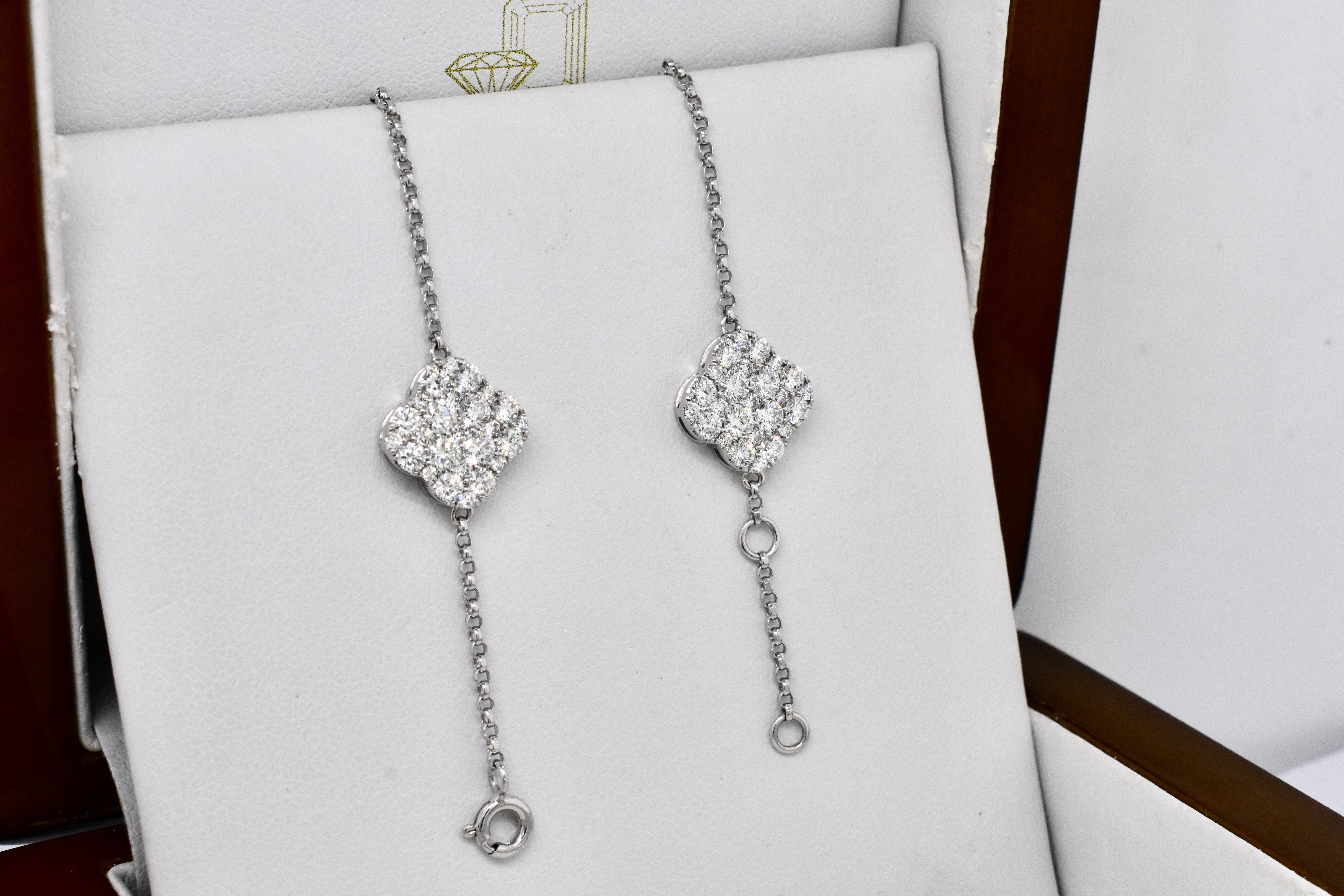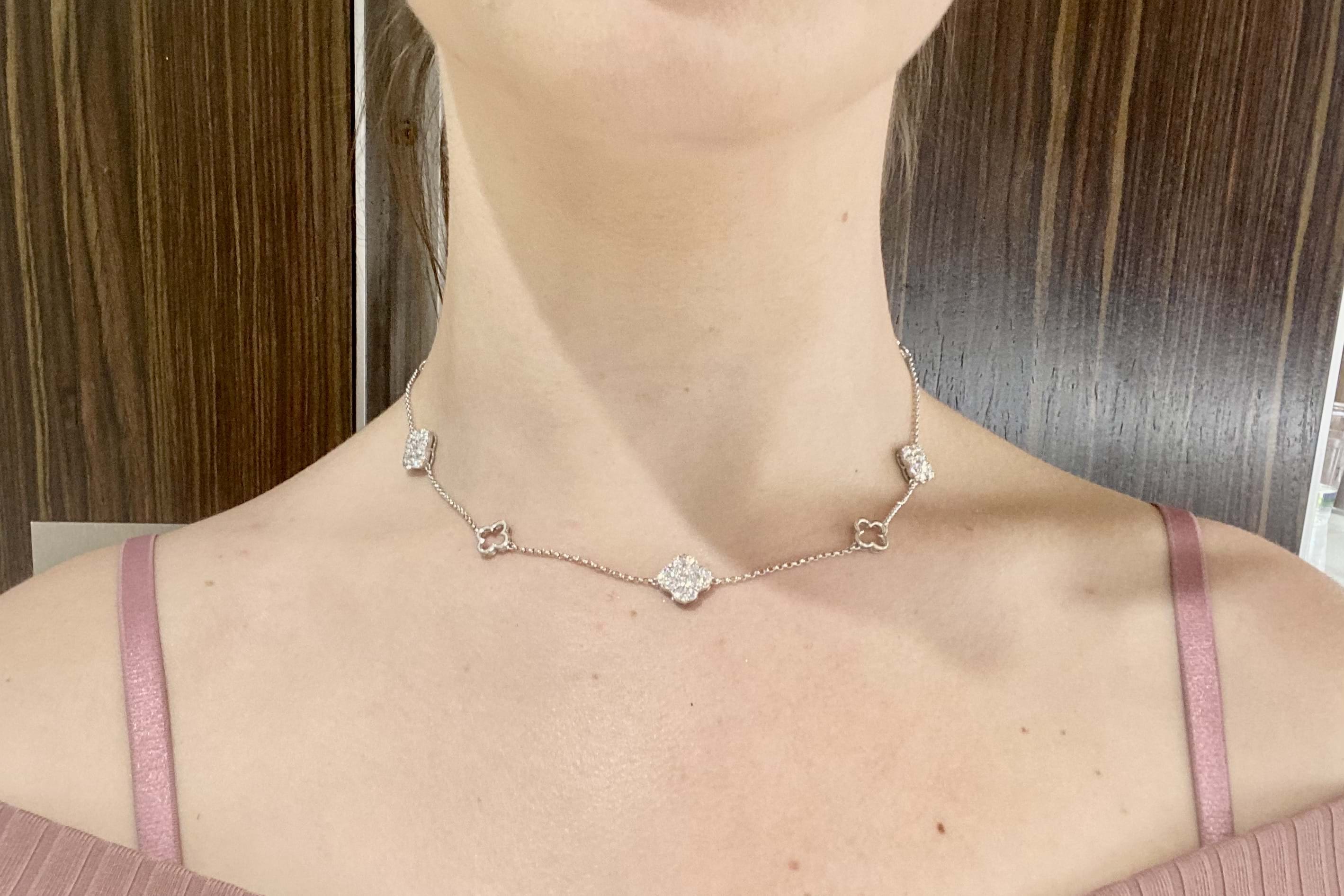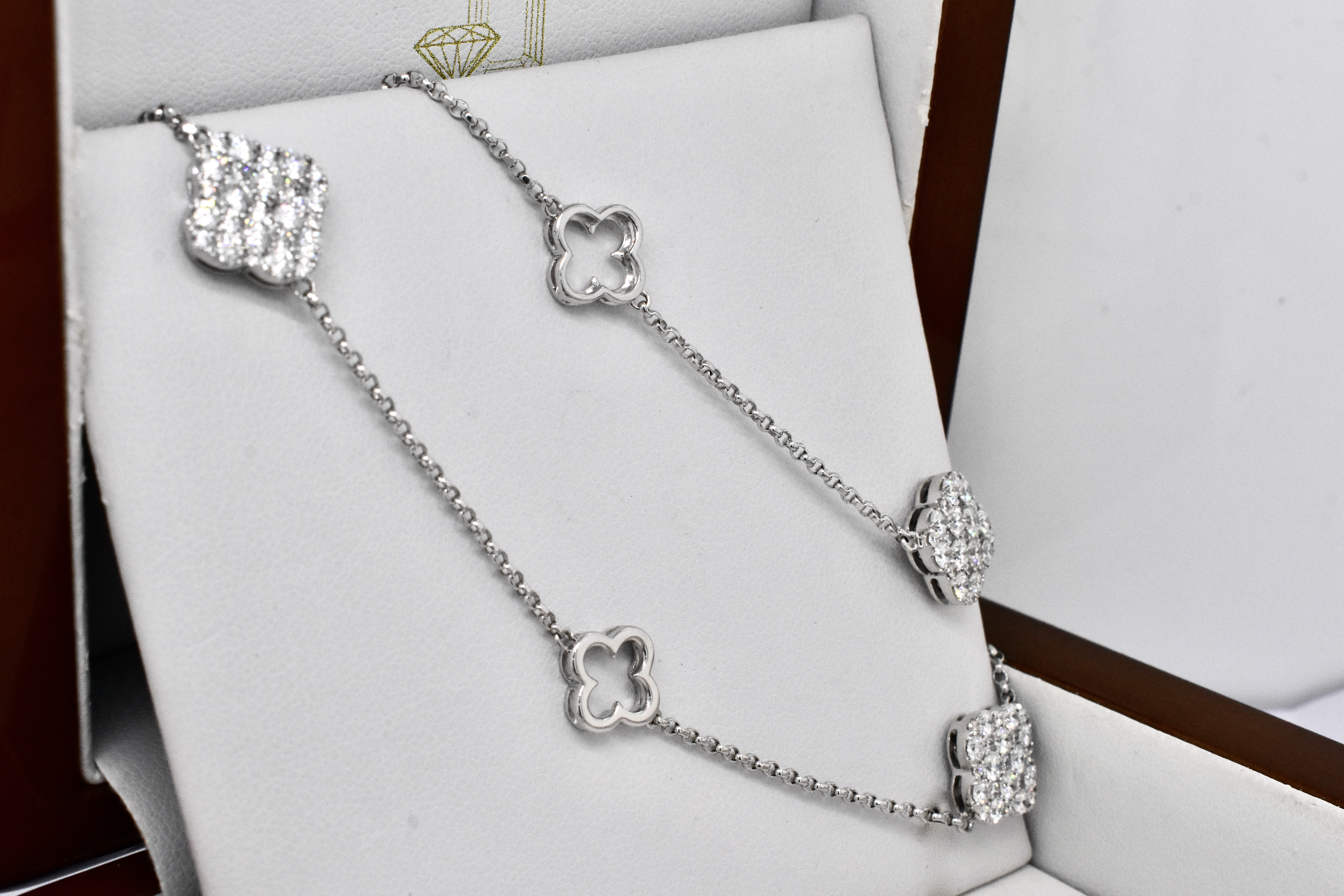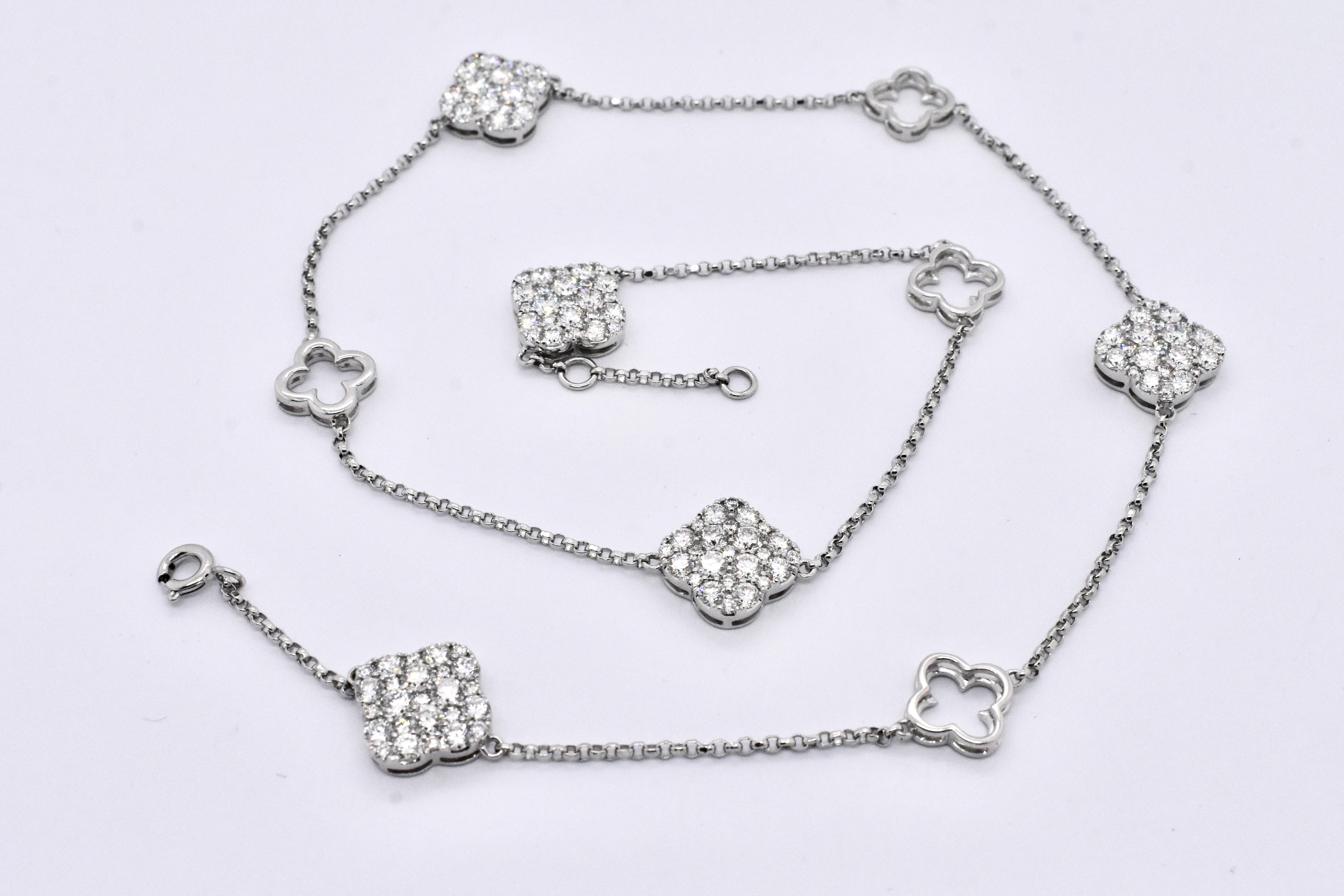 SOLD 18ct White Gold 4.00ct Diamond Stationed Clover 42.5cm Necklet