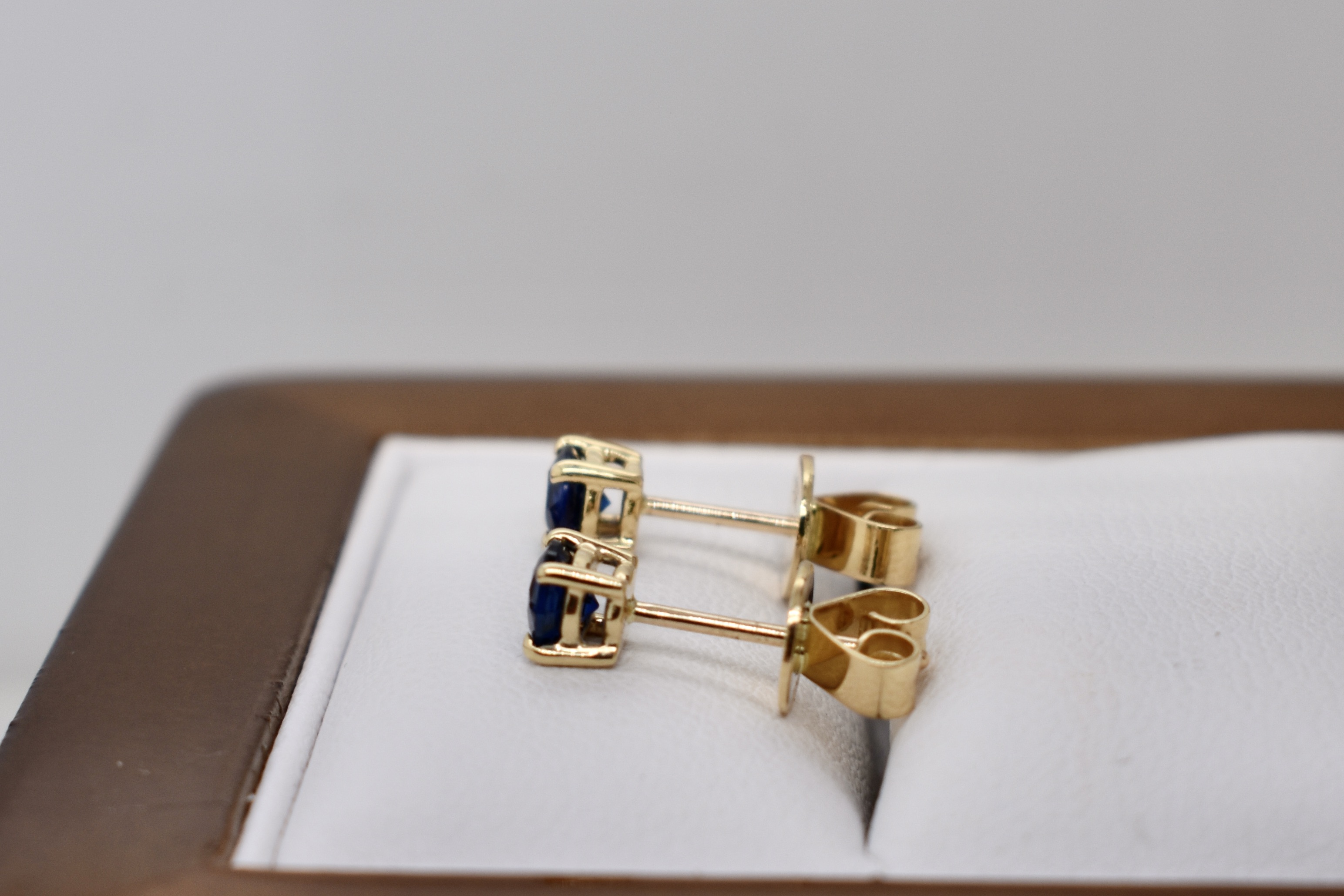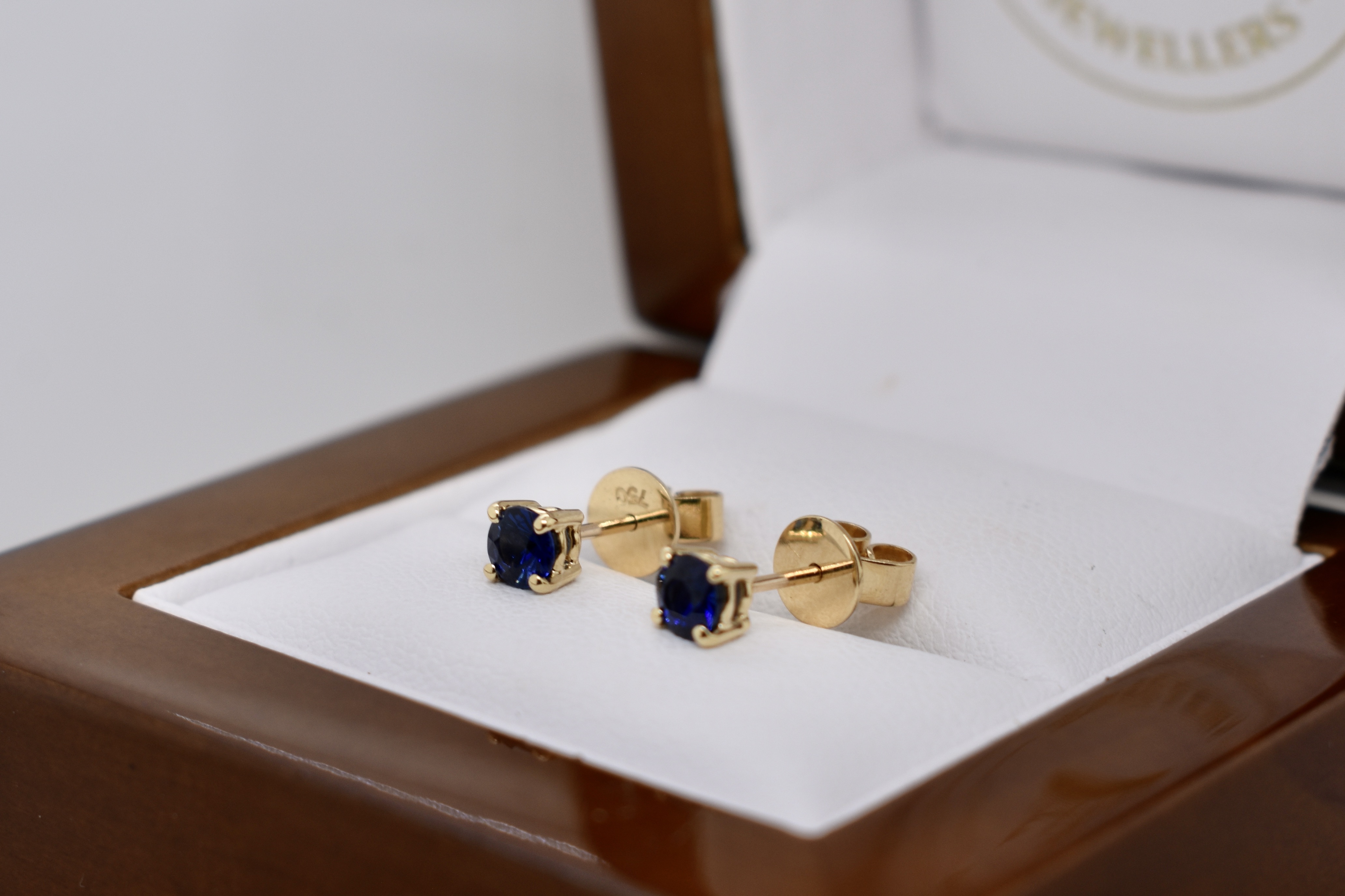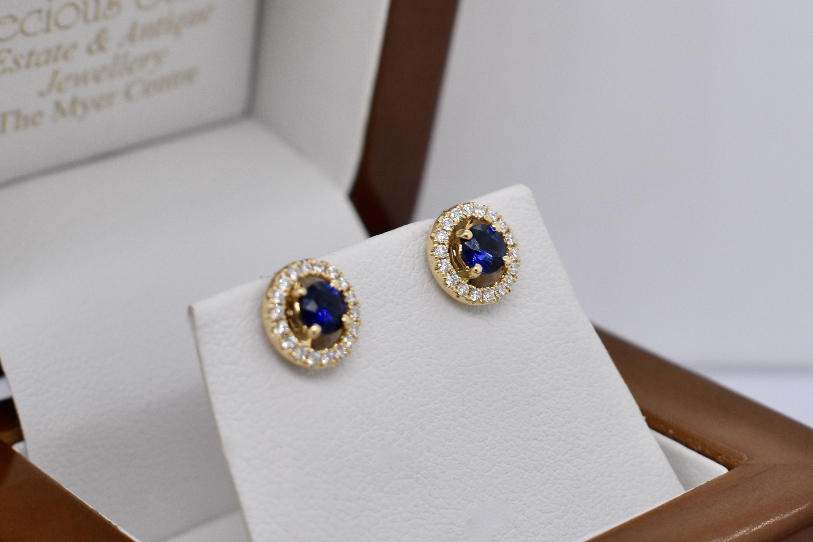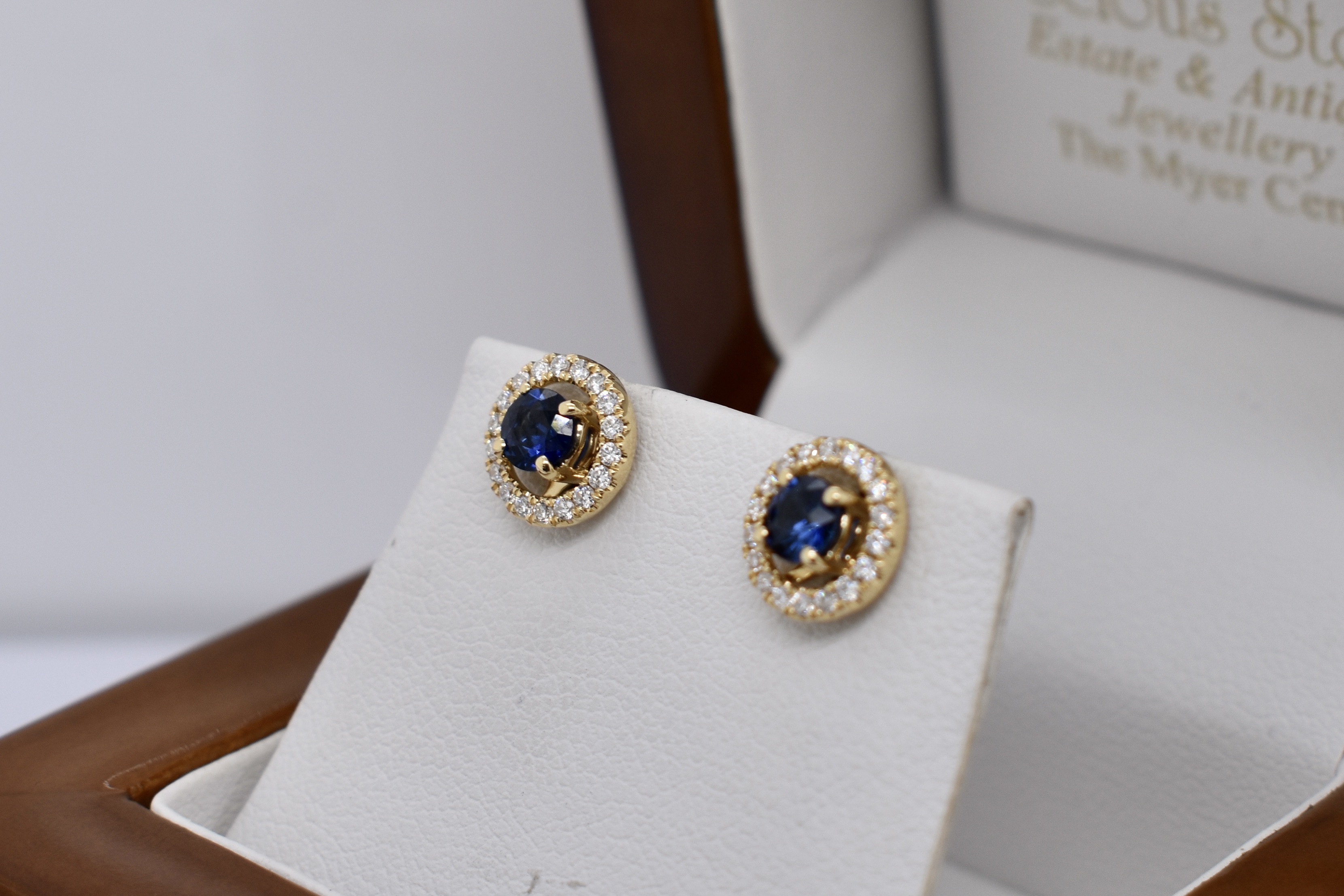 Stunning bright, deep blue, Inverell sapphires totalling 0.55cts set into 18ct yellow gold four claw settings with stud post and butterfly fittings. These beautiful earrings look beautiful worn as is, or when pair with the shimmering removable diamond jackets pictured (available for separate purchase). Independent Valuation Supplied.