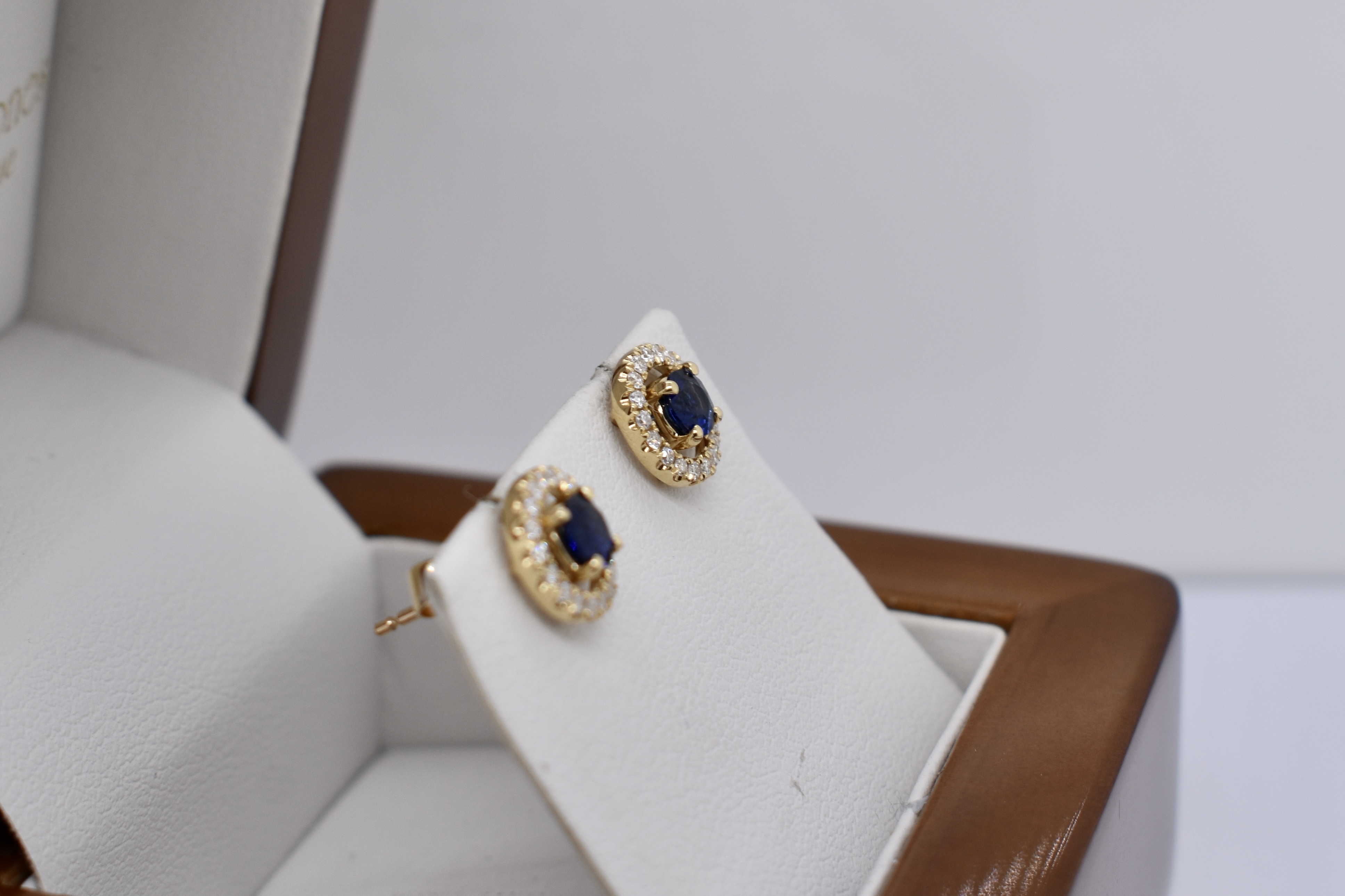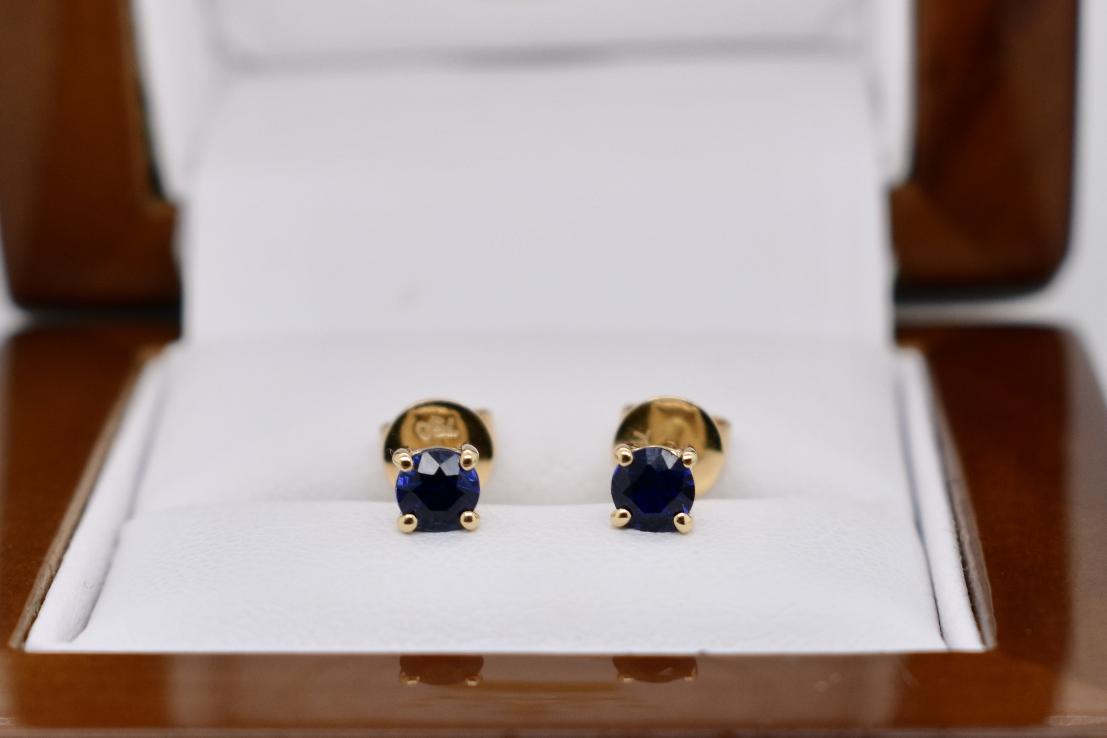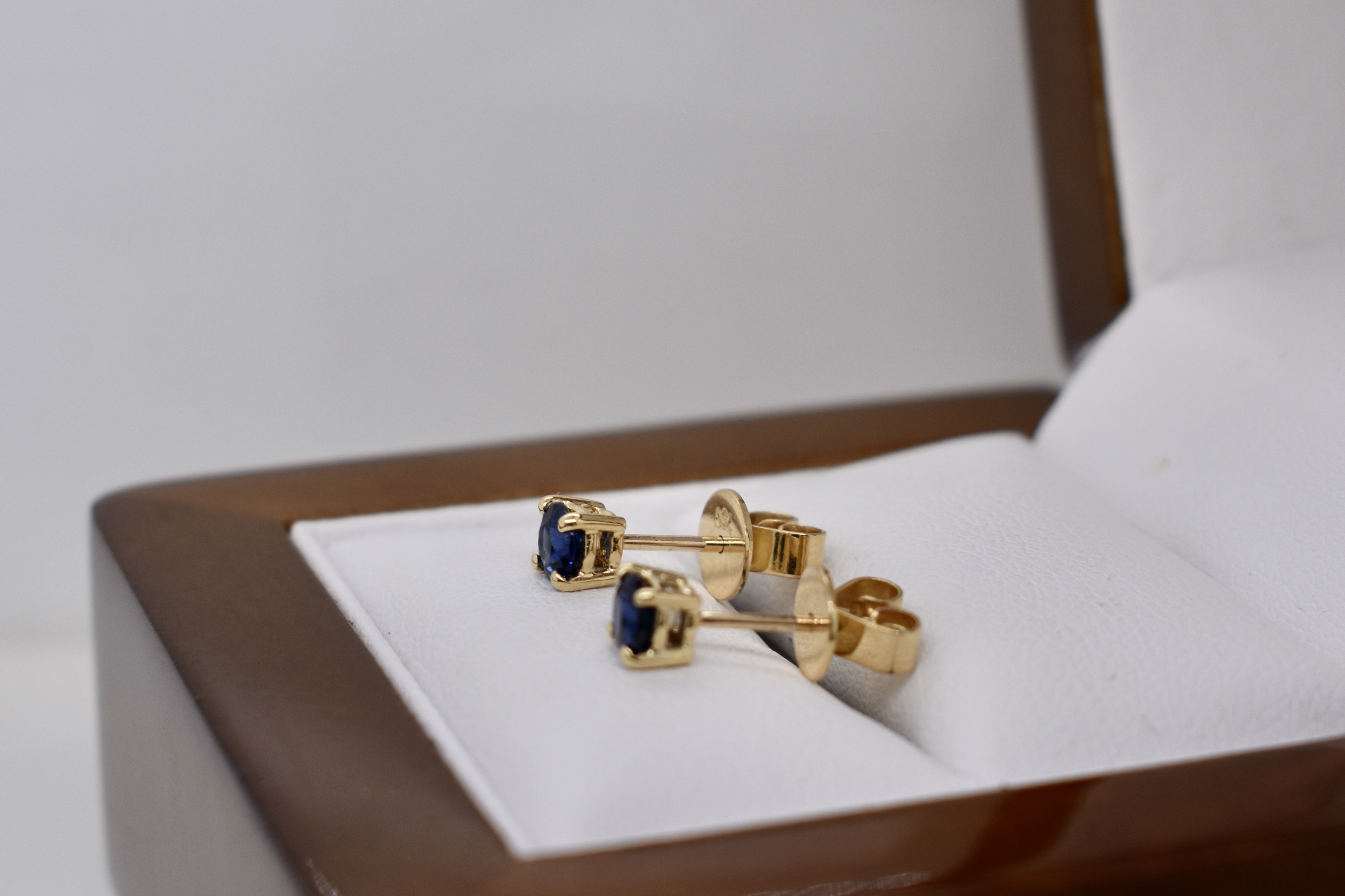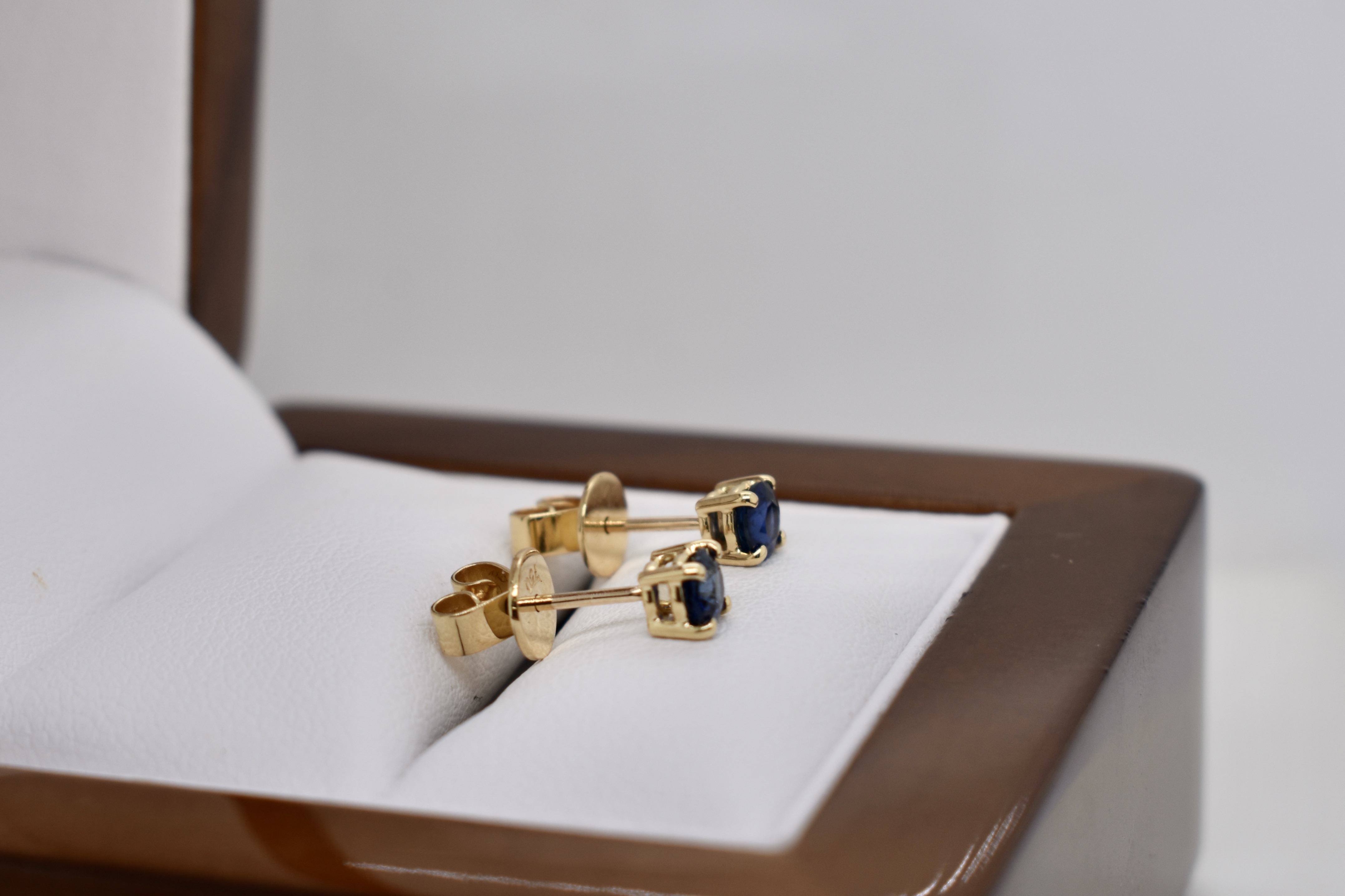 Stunning bright, deep blue, Inverell sapphires totalling 0.55cts set into 18ct yellow gold four claw settings with stud post and butterfly fittings. These beautiful earrings look beautiful worn as is, or when pair with the shimmering removable diamond jackets pictured (available for separate purchase). Independent Valuation Supplied.
