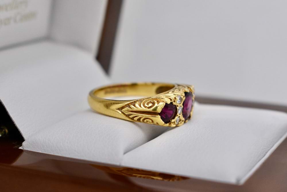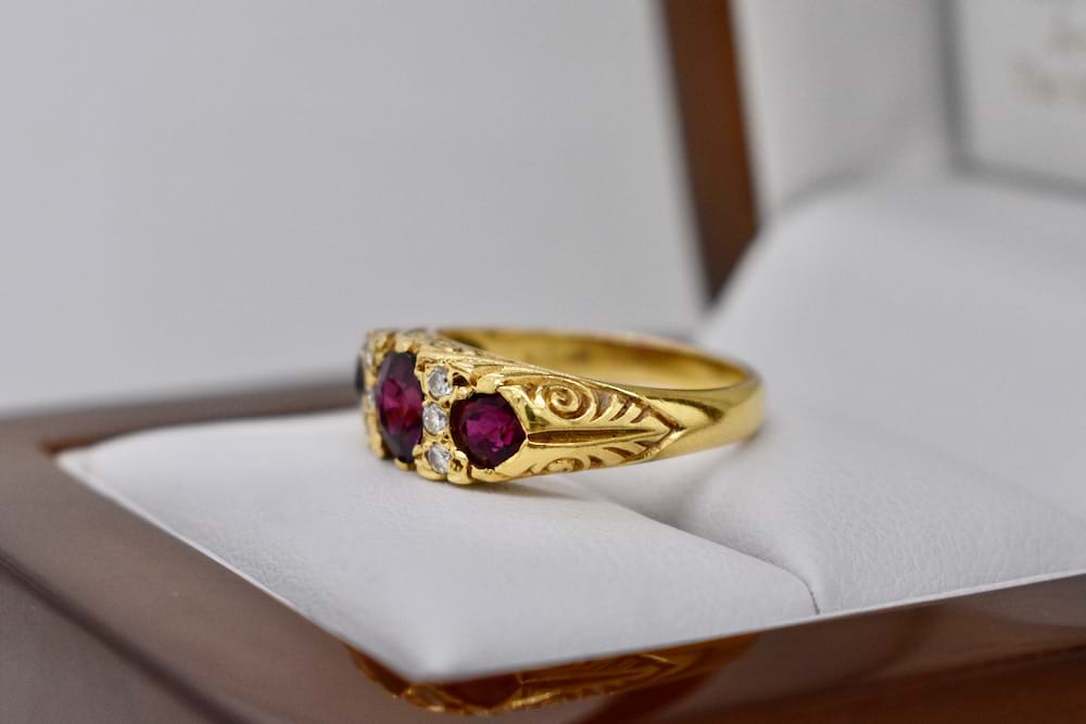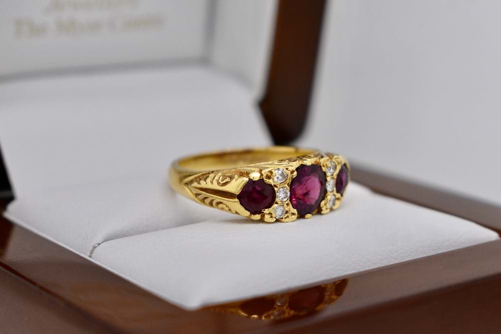 SOLD 18ct Yellow Gold 1.46ct Ruby & 0.12ct Diamond Bridge Ring