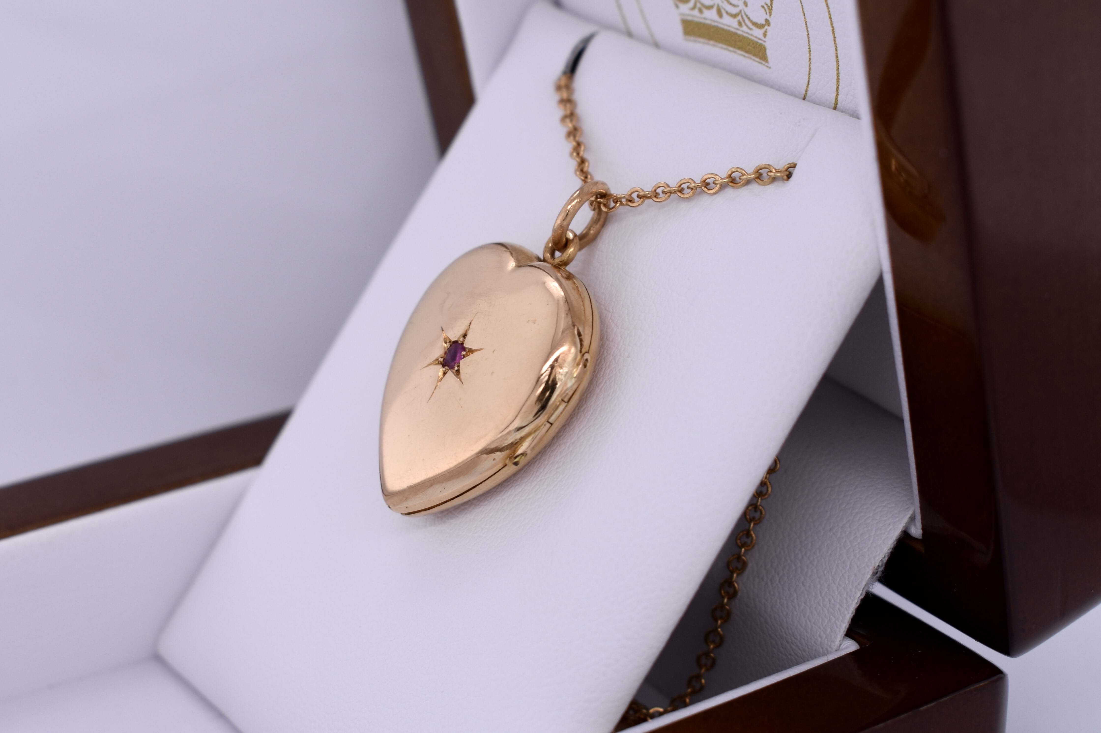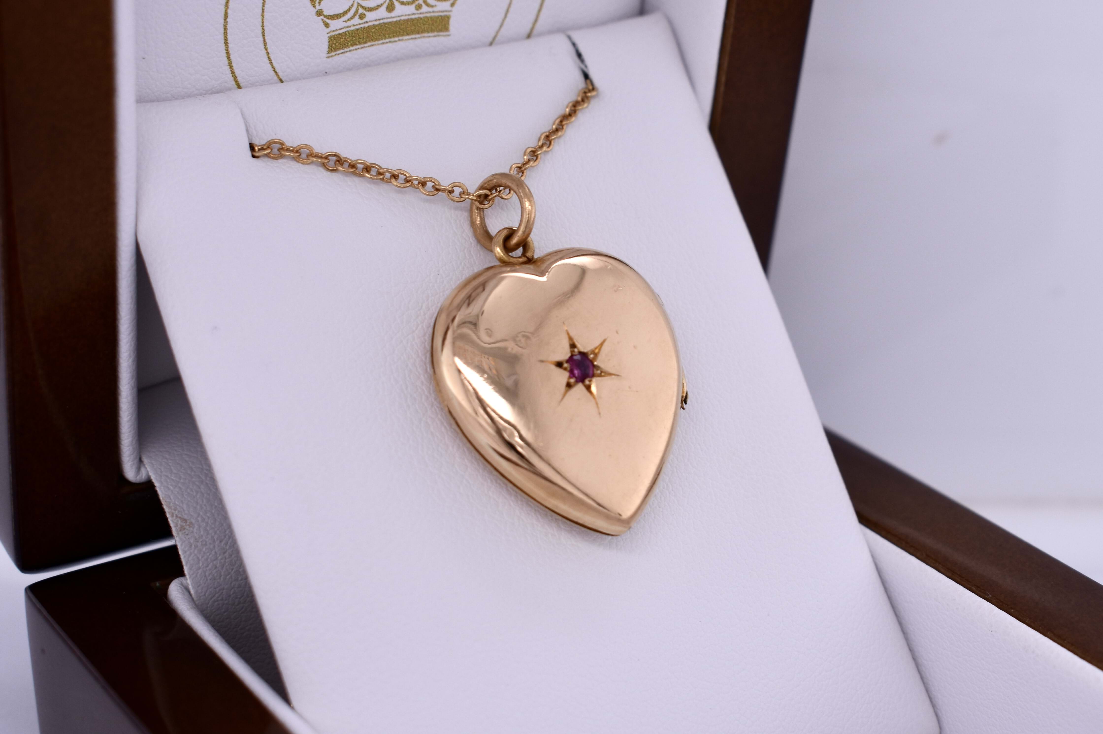 Spectacular vintage heart shaped hinged locket, crafted beautifully in 22ct yellow gold. Star set in with one ruby (small chip) in the centre. Locket measuring 30mm long including the round jump ring and weighing 7.11grams. Chains available for separate purchase. Independent Valuation Supplied.