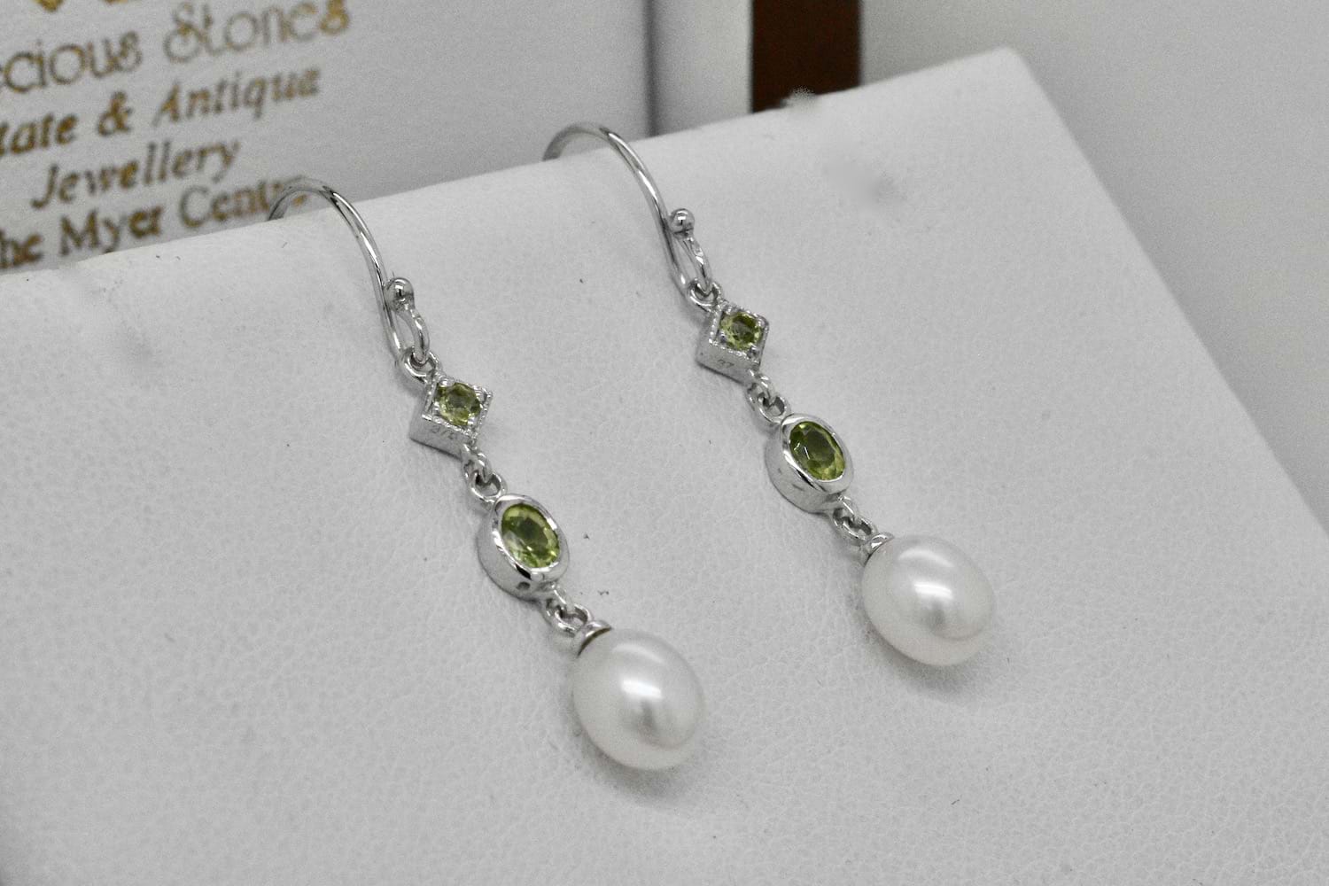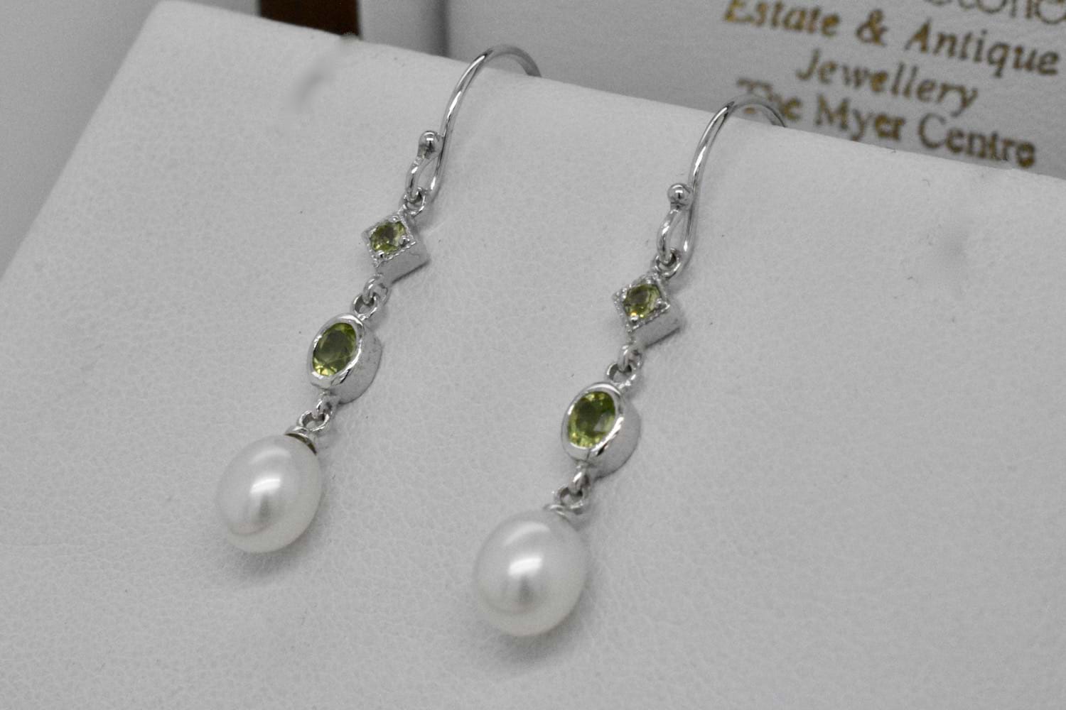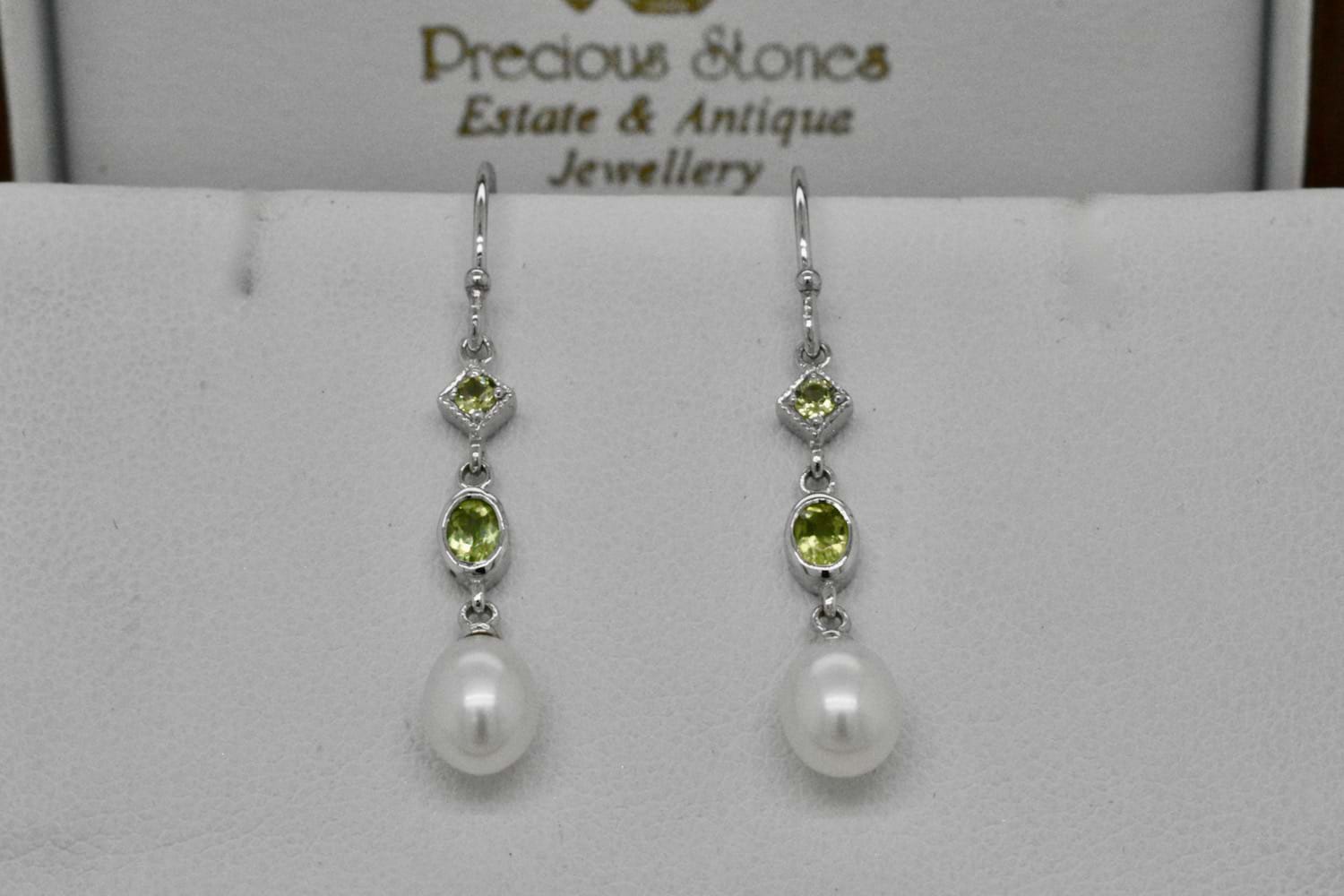 SOLD 9ct White Gold Peridot & Freshwater Pearl Earrings