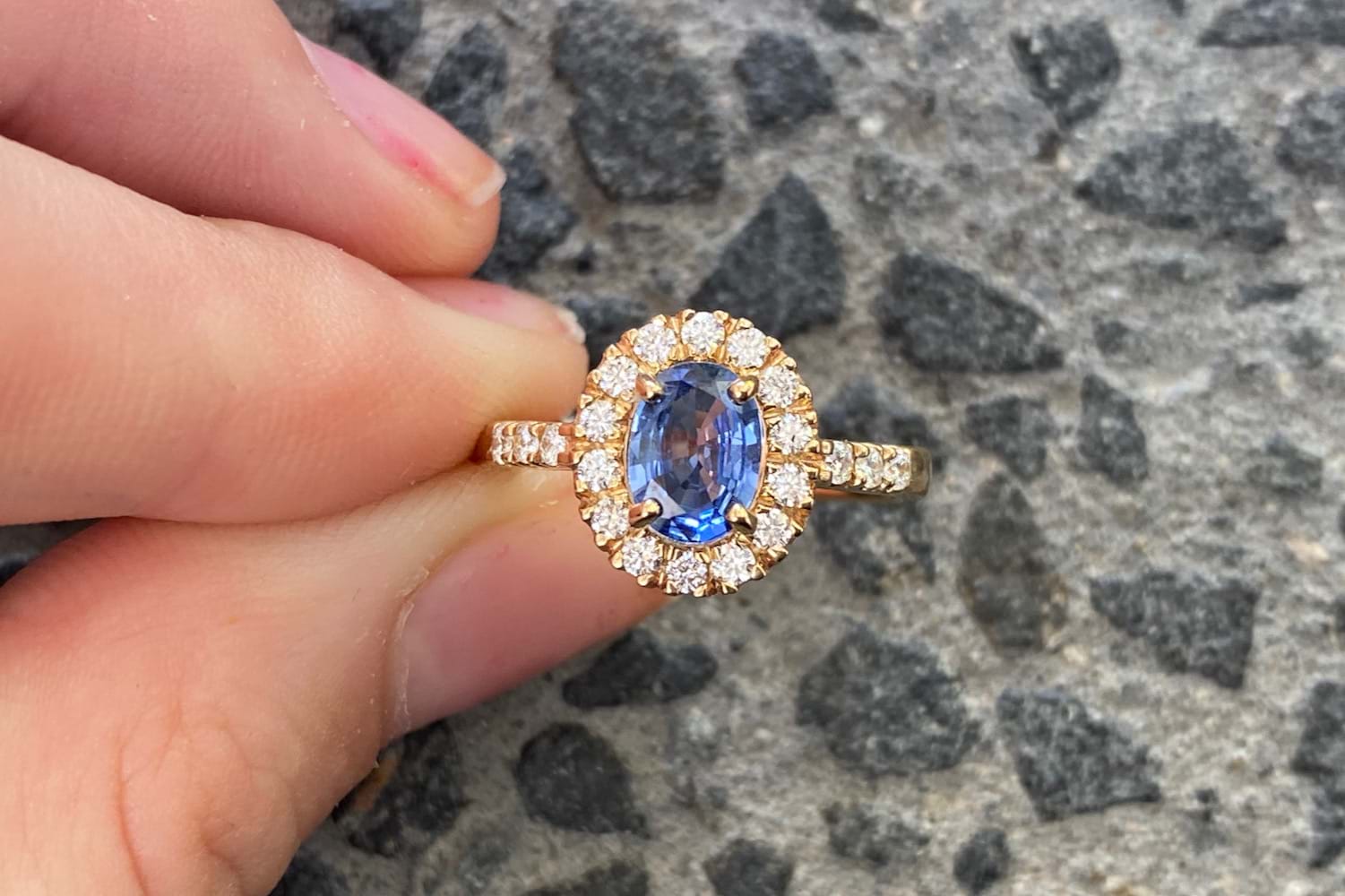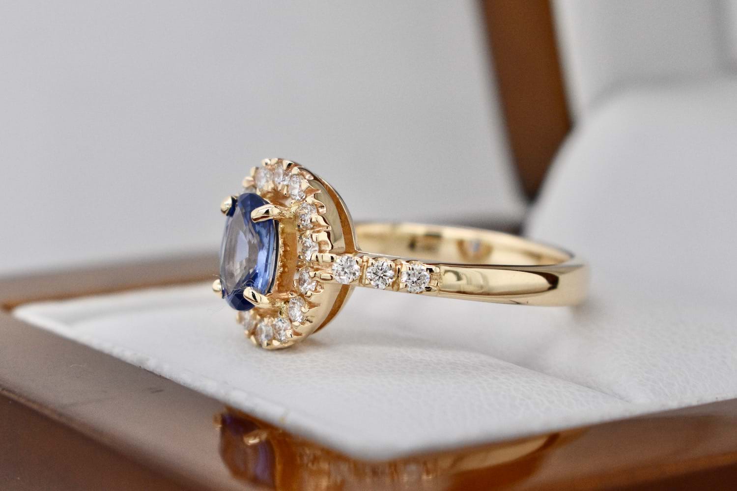 SOLD 9ct Yellow Gold 0.87ct Ceylon Sapphire & 0.34ct Diamond Ring