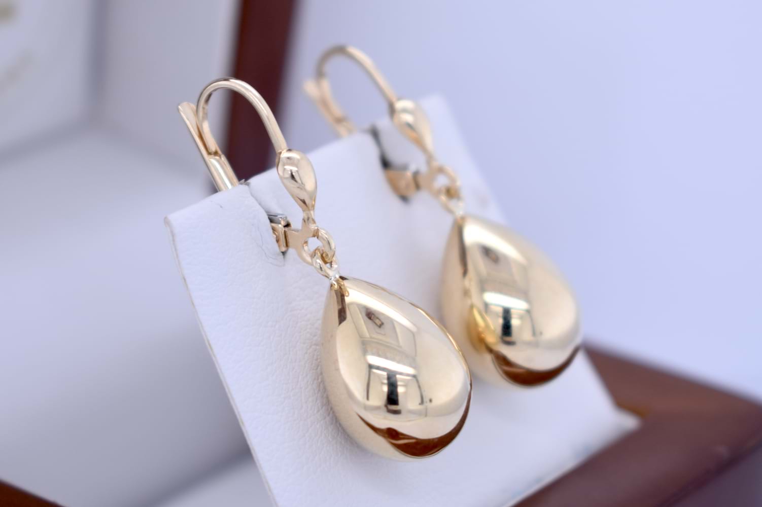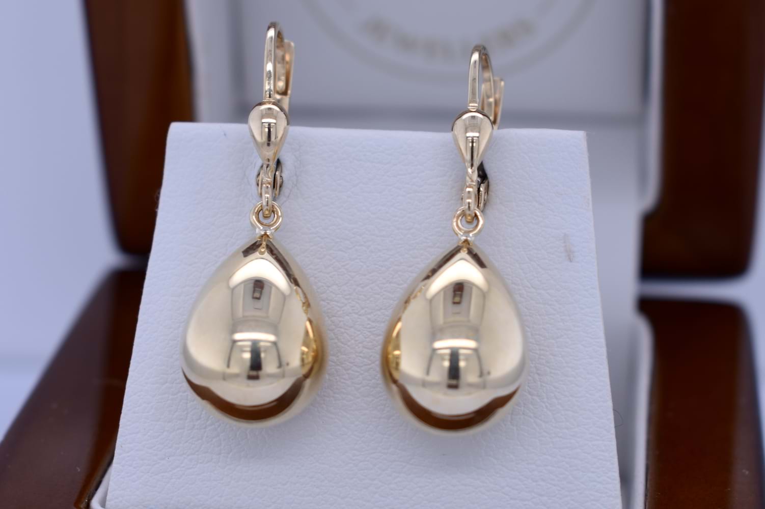These pretty earrings have a total drop of 32mm and feature hollow pearshaped euroballs measuring 15x10mm, suspended from euroclips. Weighs 2.6 grams.