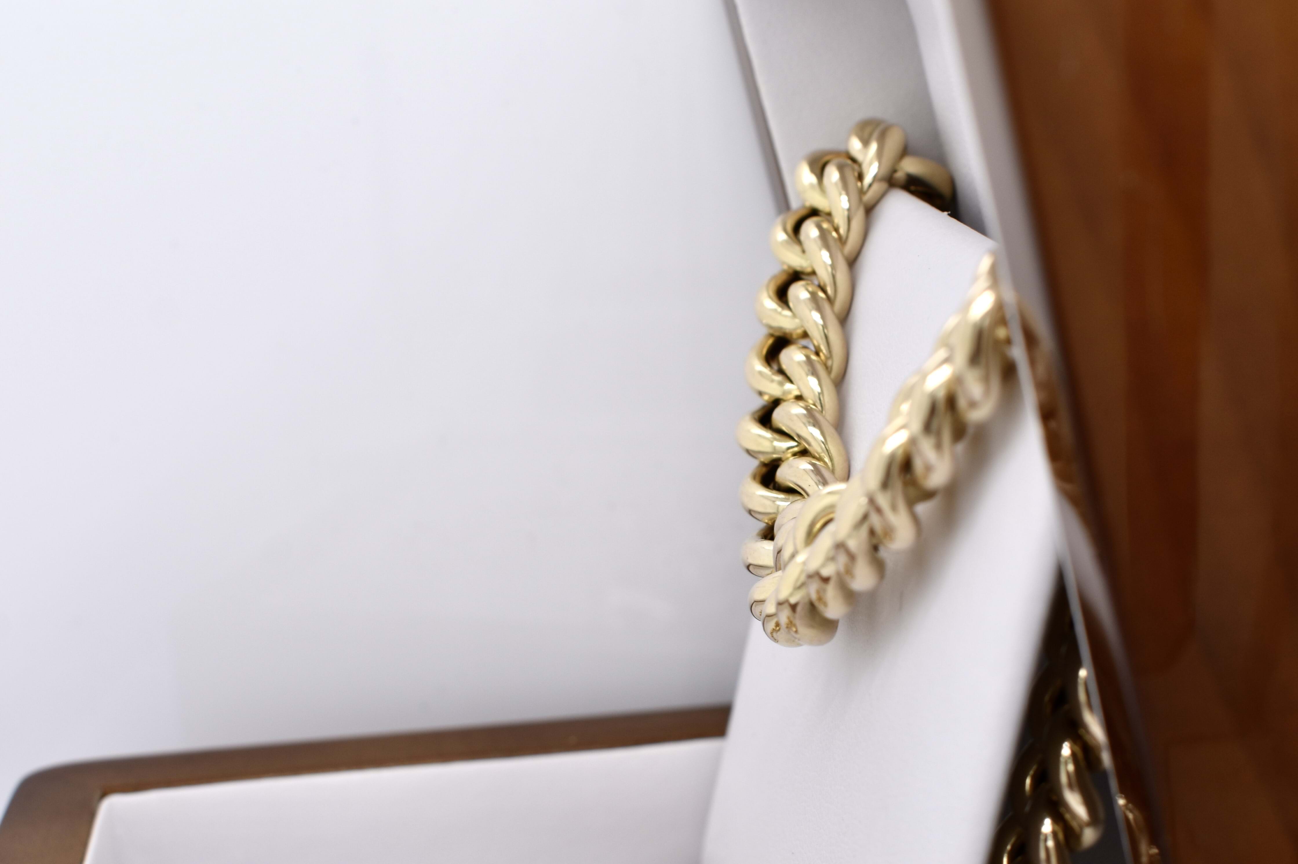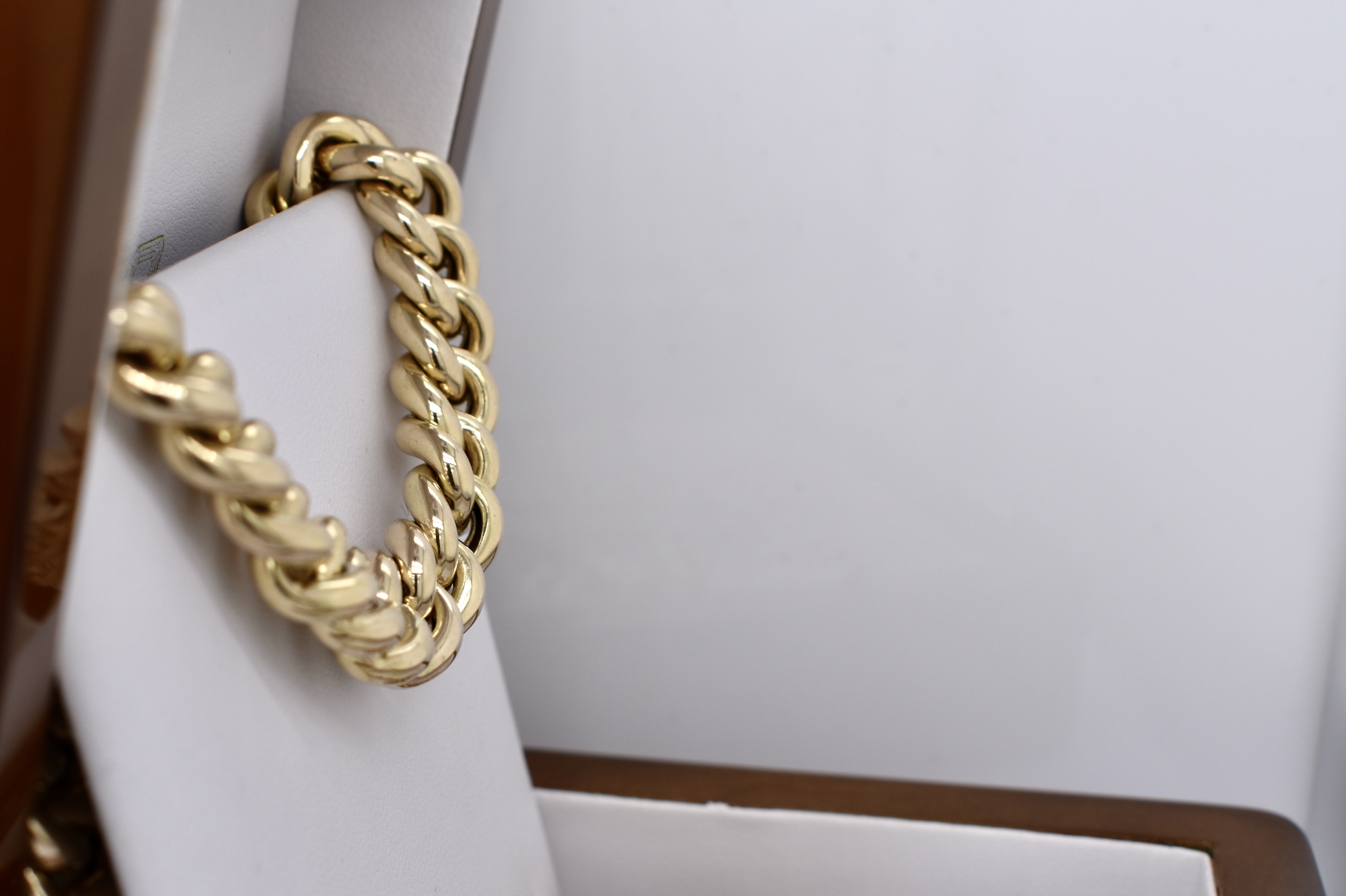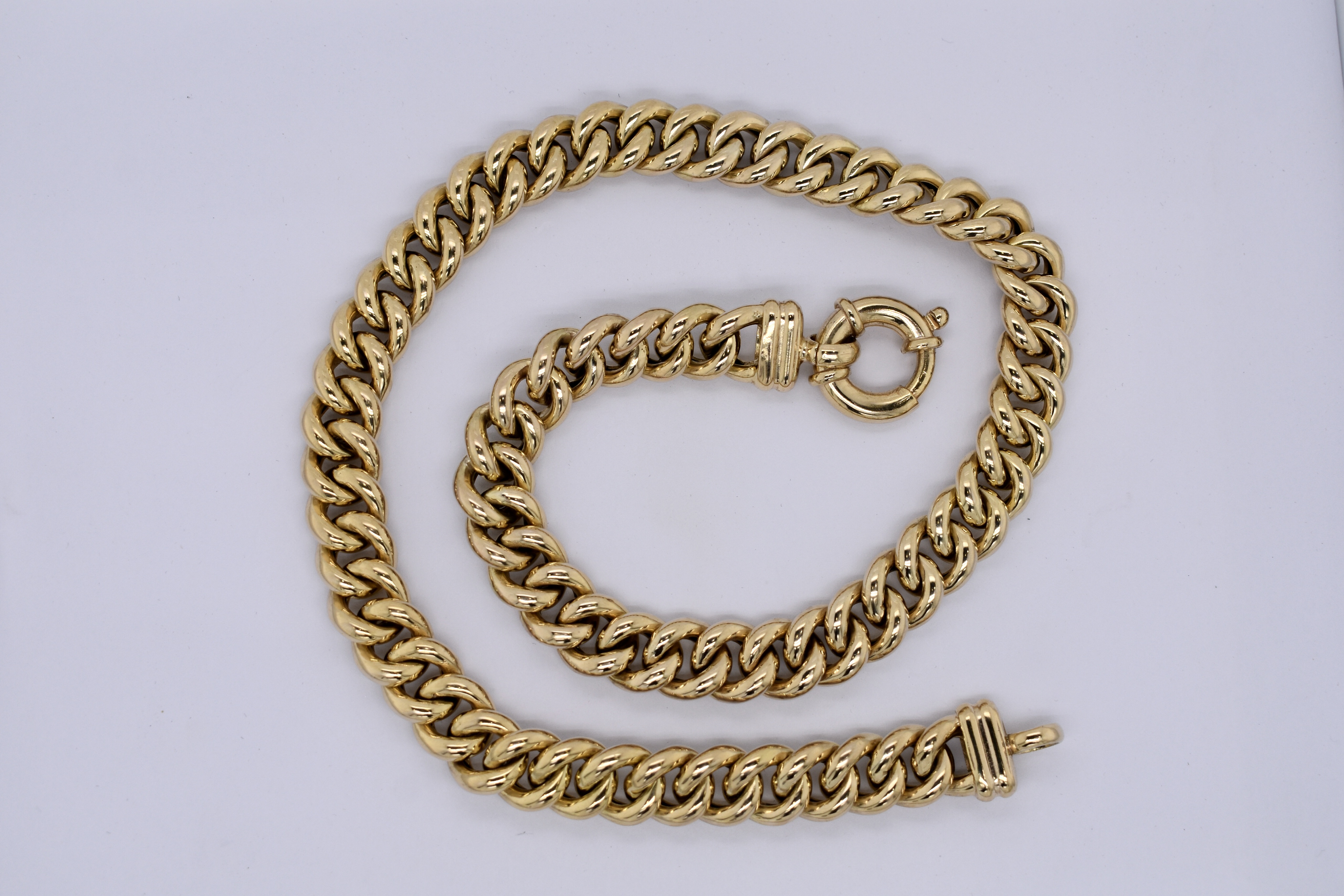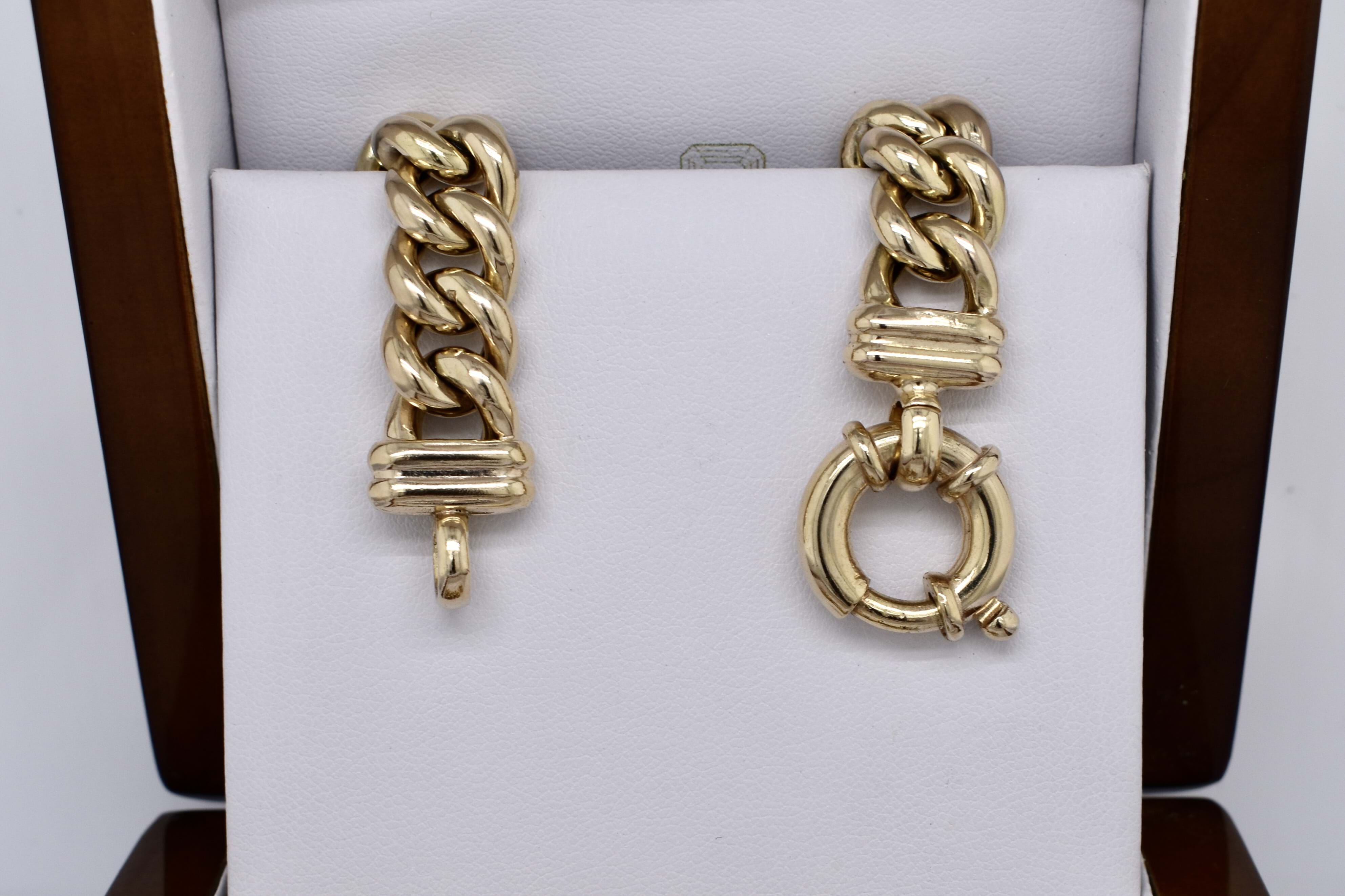 A classic 9ct yellow gold hollow curb link chain, measuring 10mm wide and 45cm long. Completed with a gold bolt ring clasp and end finials. Weighing 72.65 grams. Independent Valuation available upon purchase.
