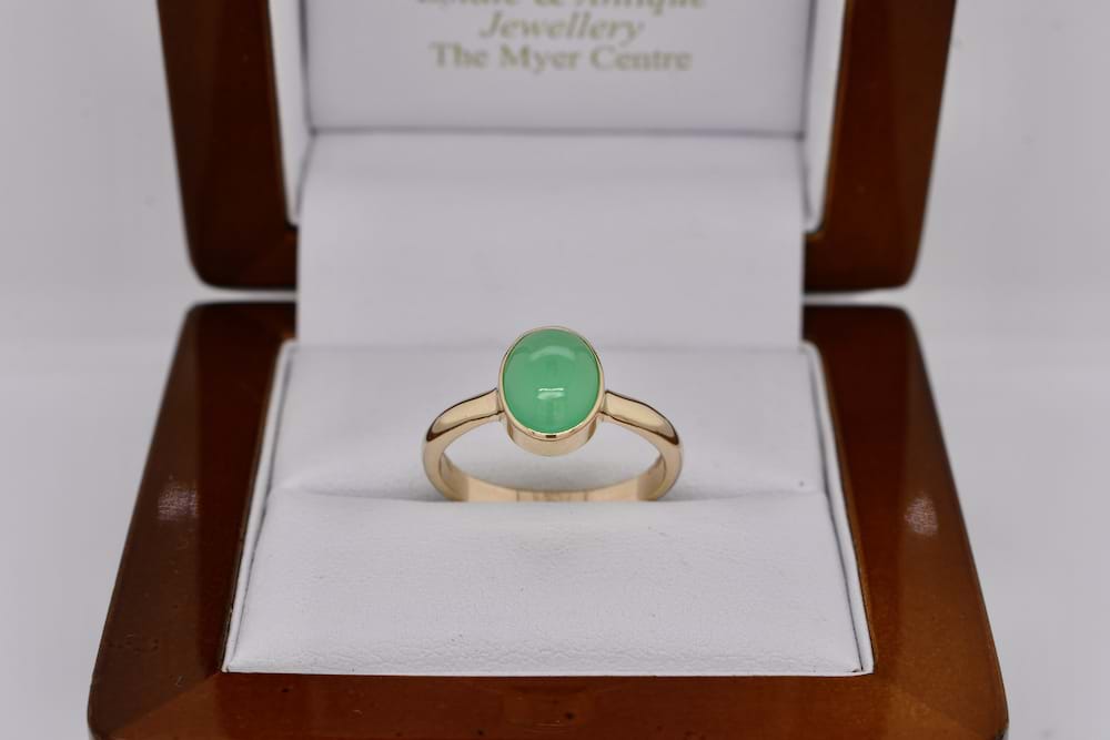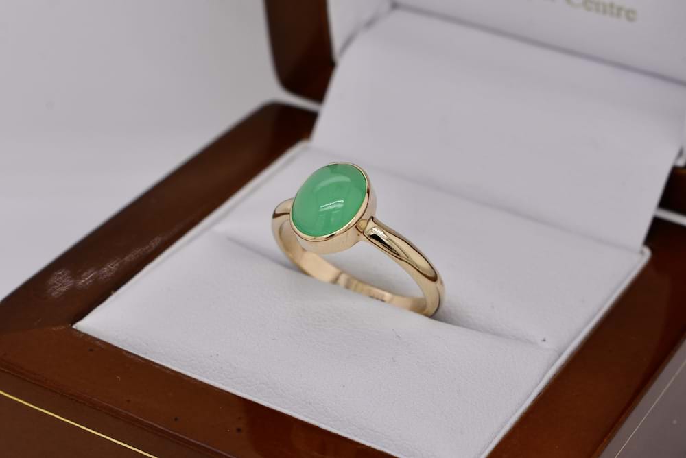 SOLD 9ct Yellow Gold Cabochon Chrysoprase Ring