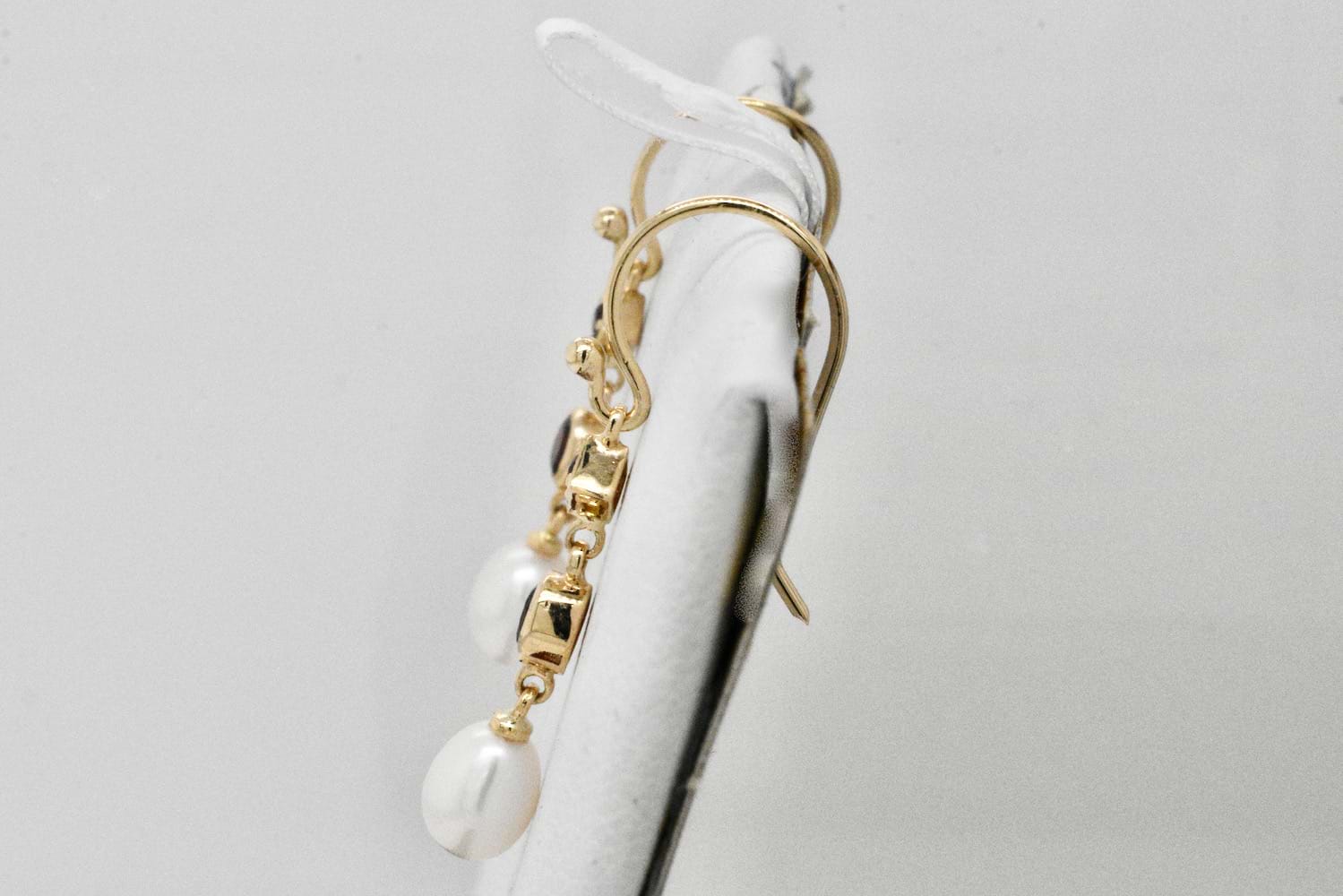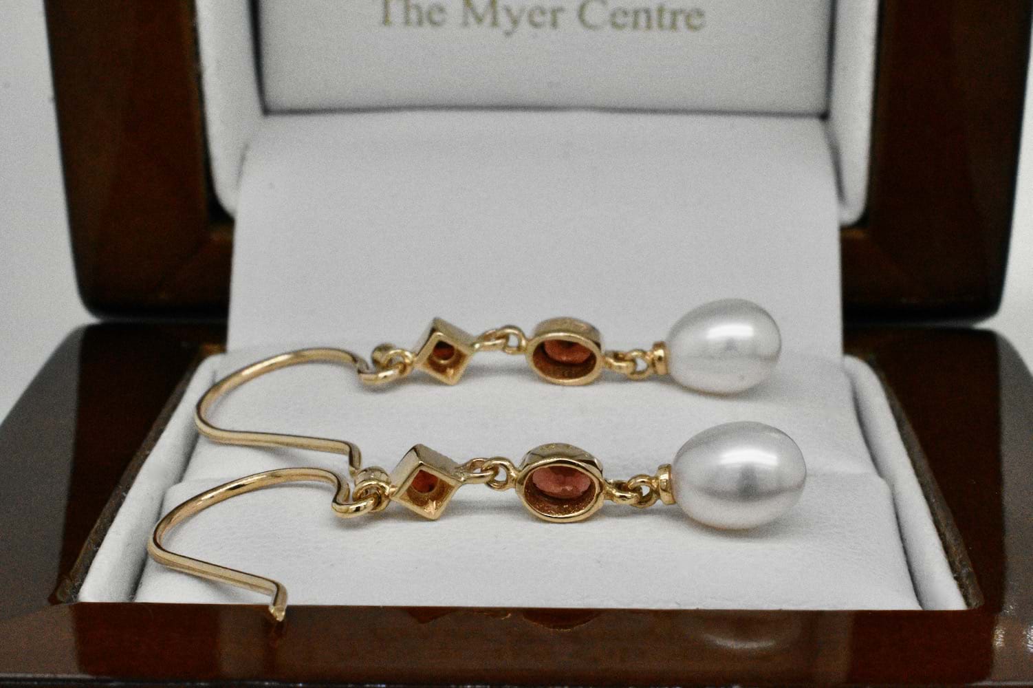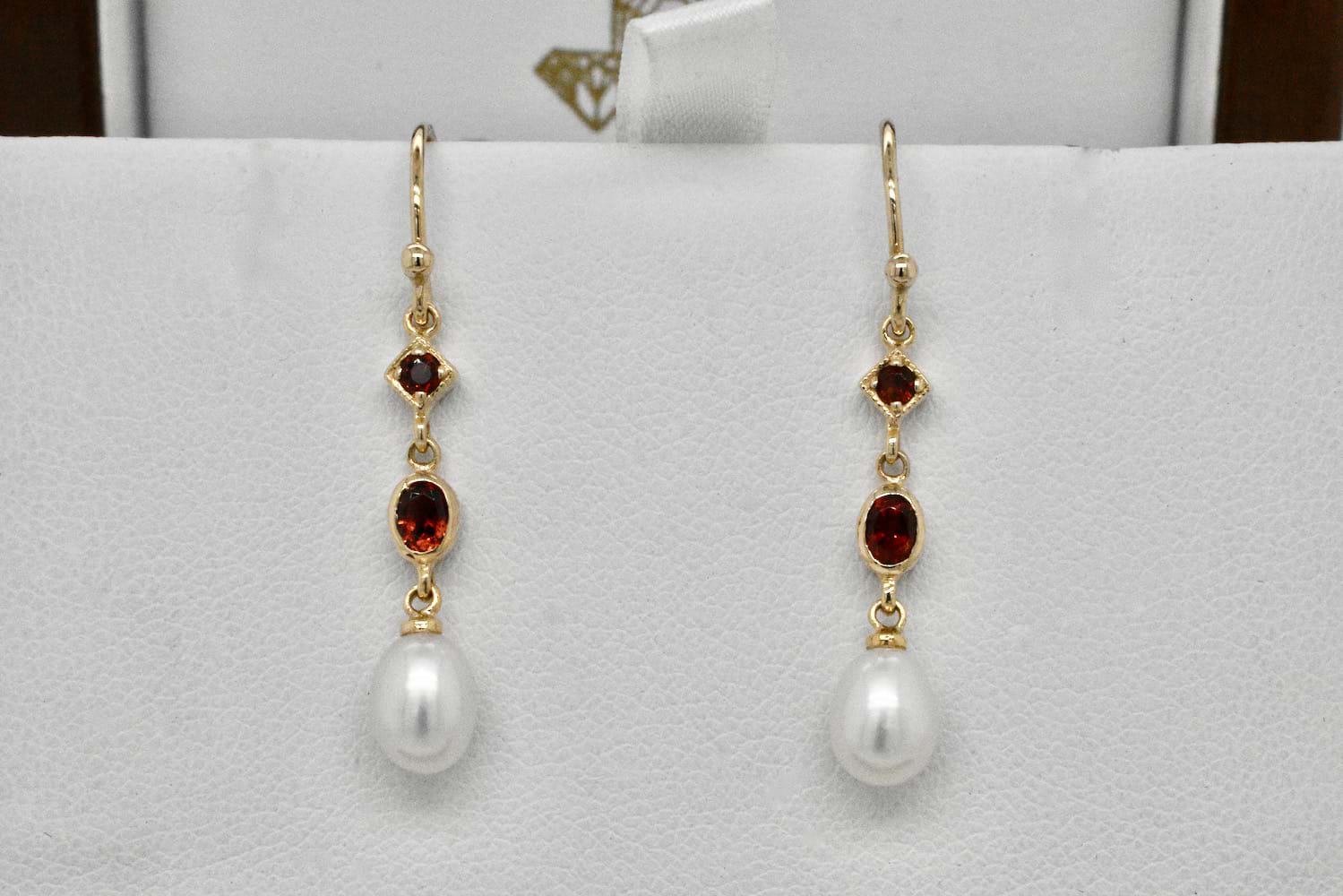 SOLD 9ct Yellow Gold Garnet & Freshwater Pearl Earrings