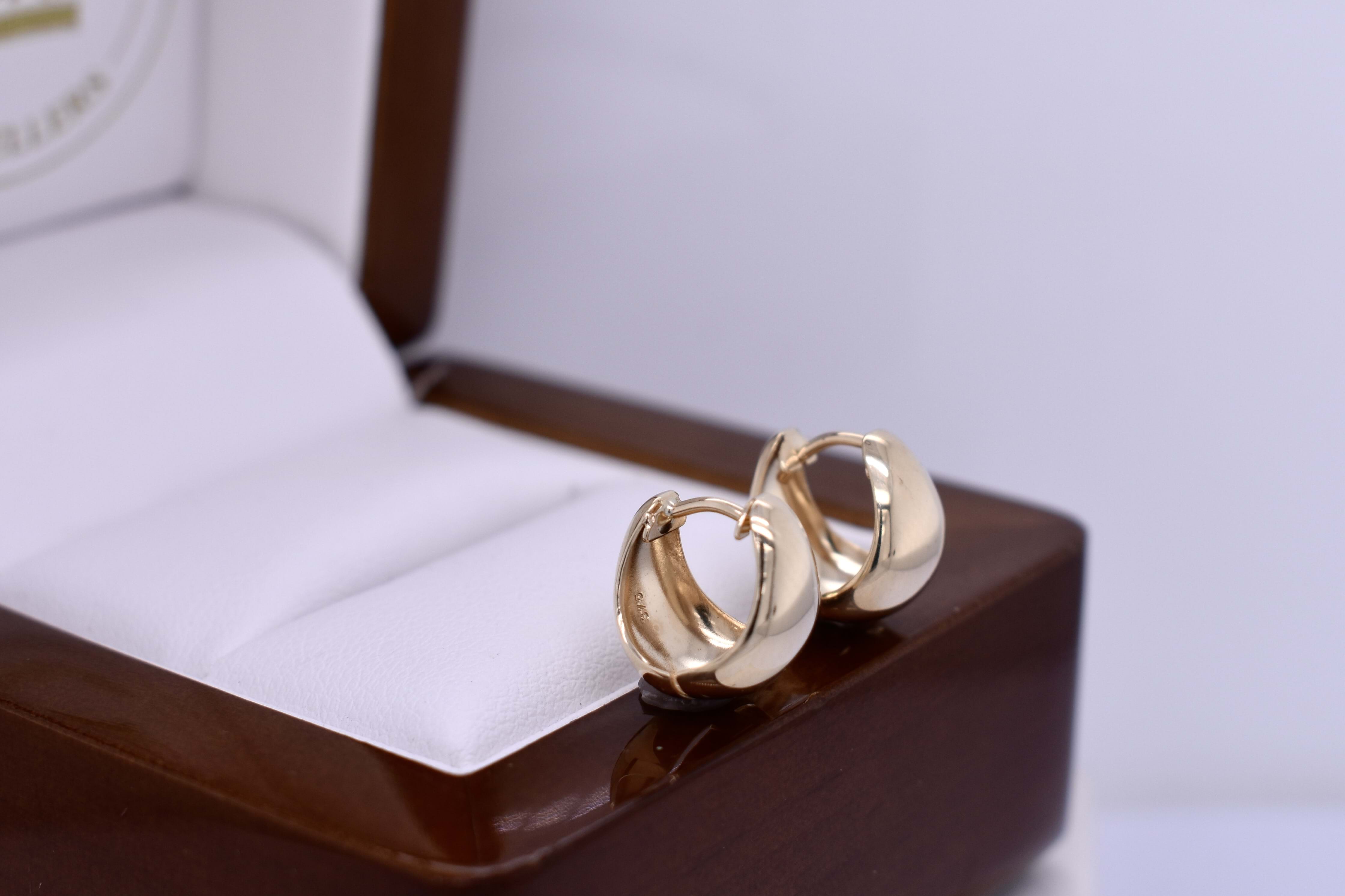 Chunky hollow huggies, crafted in 9ct yellow gold, measuring 11x9mm. Small U-shaped design with clipped post fittings.