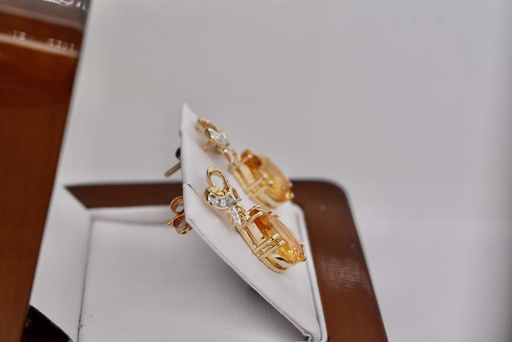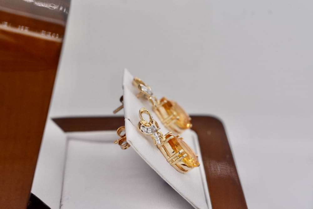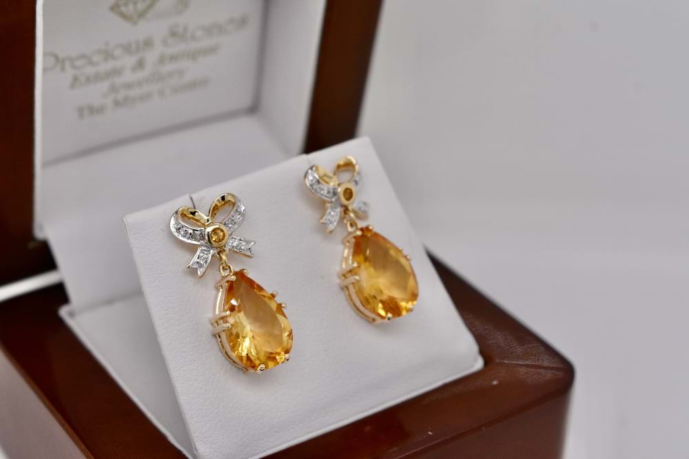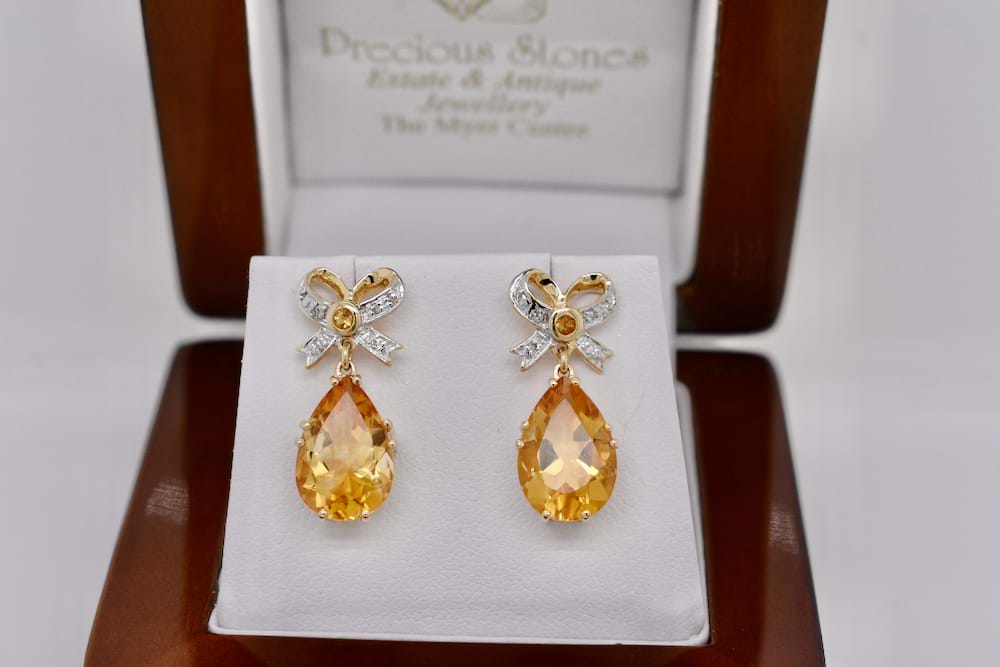 SOLD 9ct Yellow Gold Teardrop Citrine & Bow Design Earrings