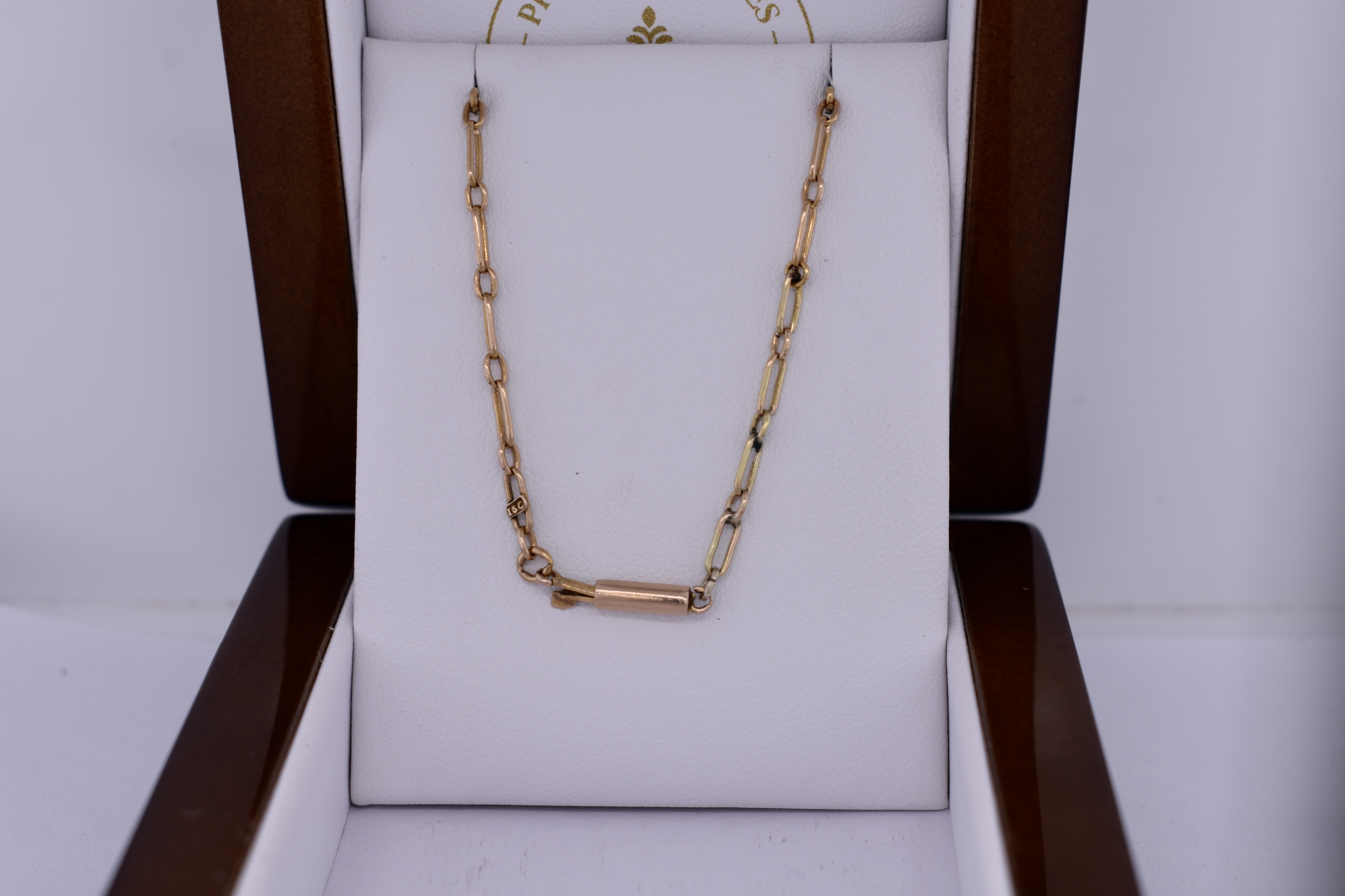 This gorgeous 15ct yellow gold chain features a 1/1 cable link, measuring 40.5cm with a total weight of 4.23grams. Finished with a barrel clasp.