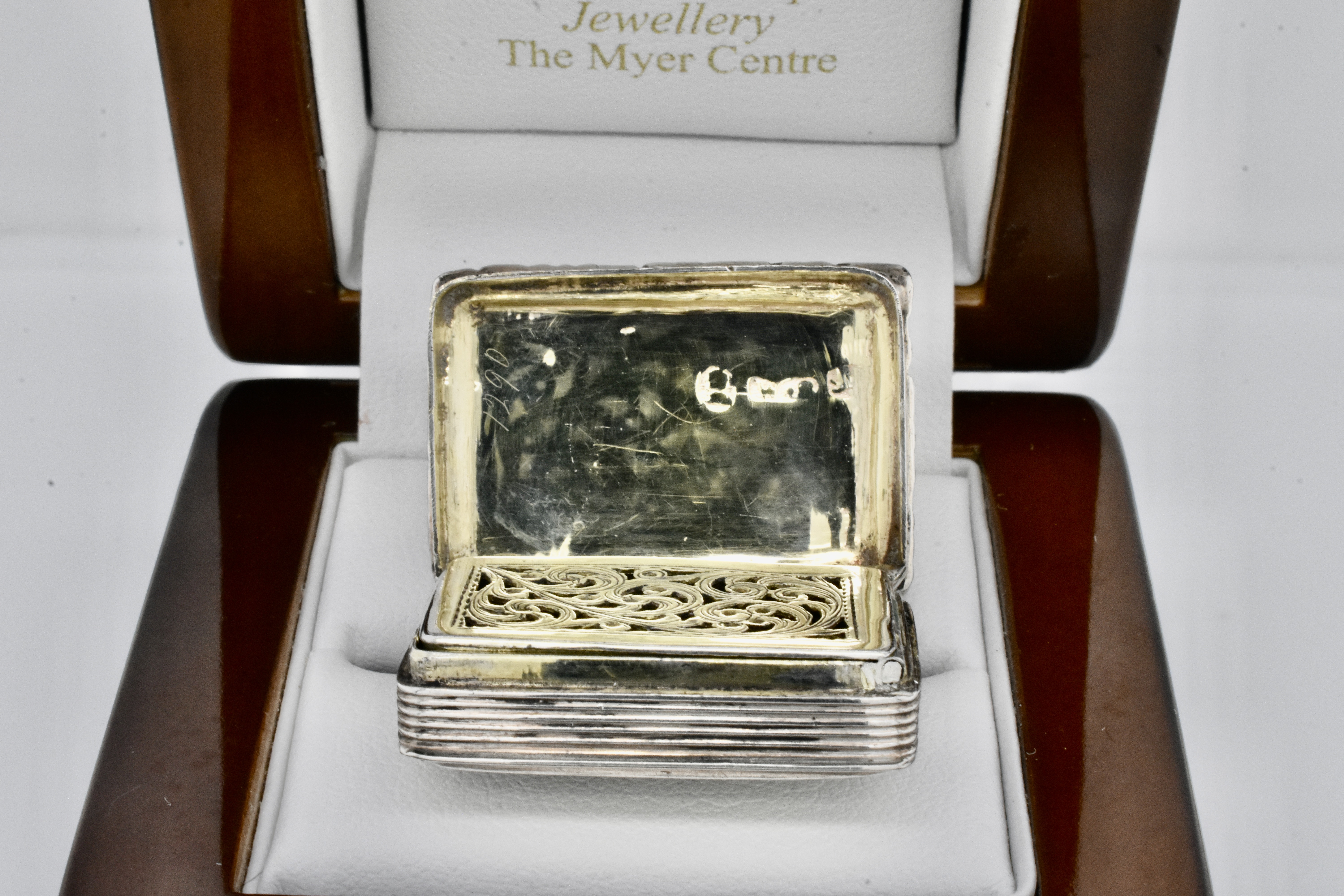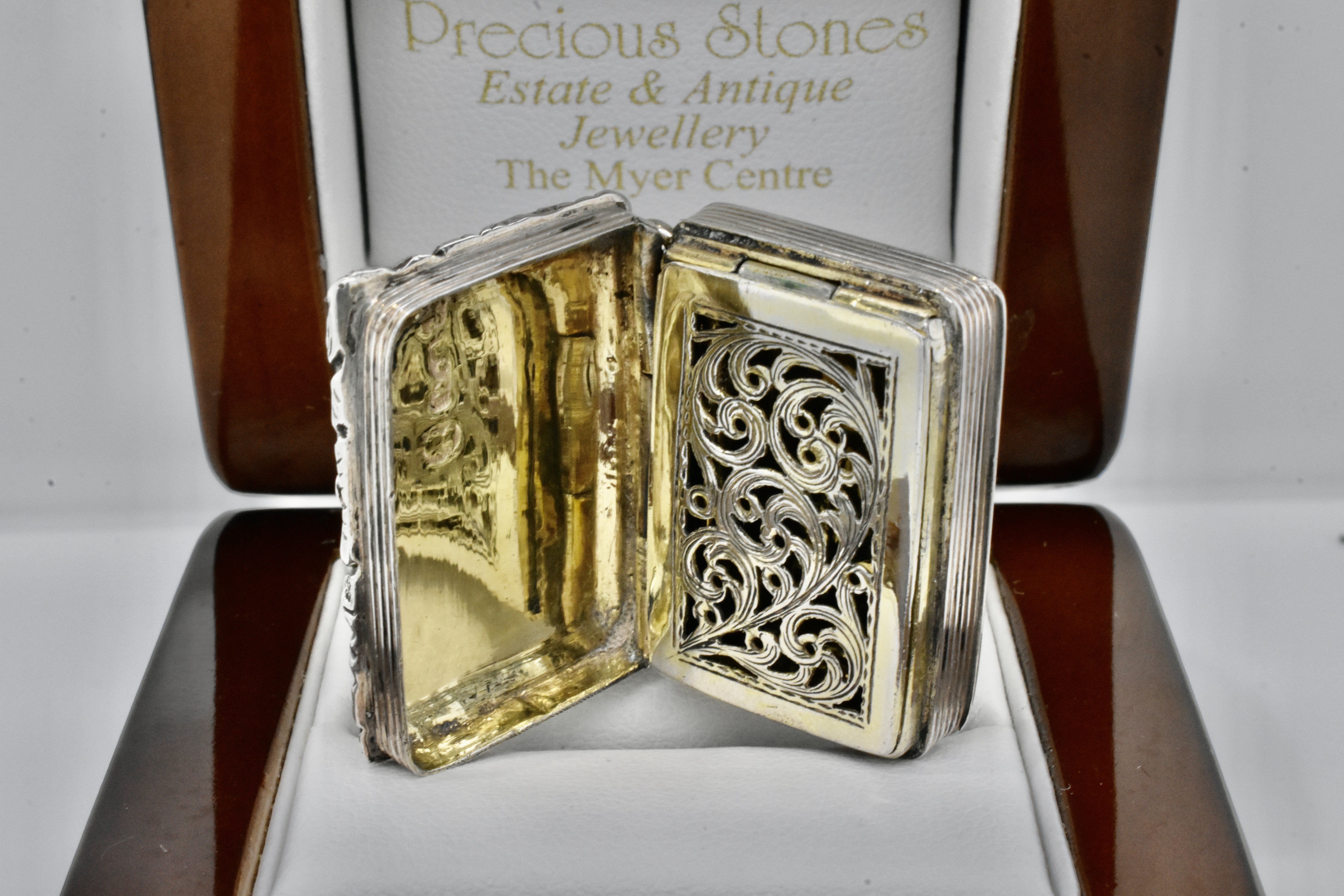 Sterling silver vinaigrettes are small, decorative boxes that were used whilst travelling as a more accessible and practical way of carrying perfume and scents rather than in large glass bottles or vials. The perfume or aromatic vinegar would be contained within these boxes soaked in a sponge. The box would also have a grille to cover the sponge. Vinaigrette sizes tended to vary, with their widths spanning from around 1.2cm to 10cm. Silver pieces were always gilded at the point where the sponge would touch the metal as to avoid any corrosion