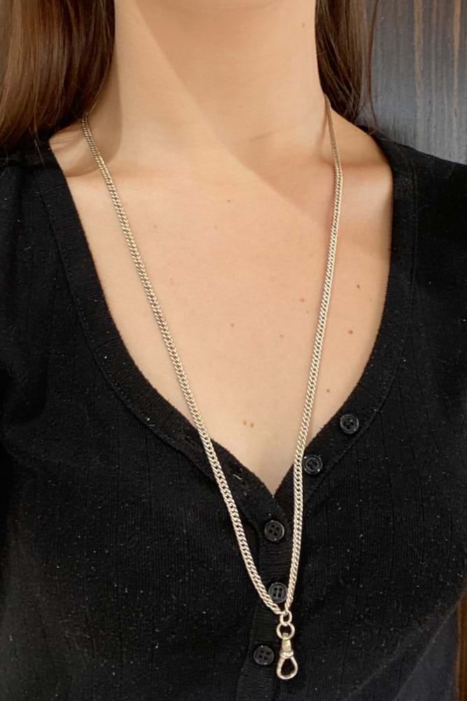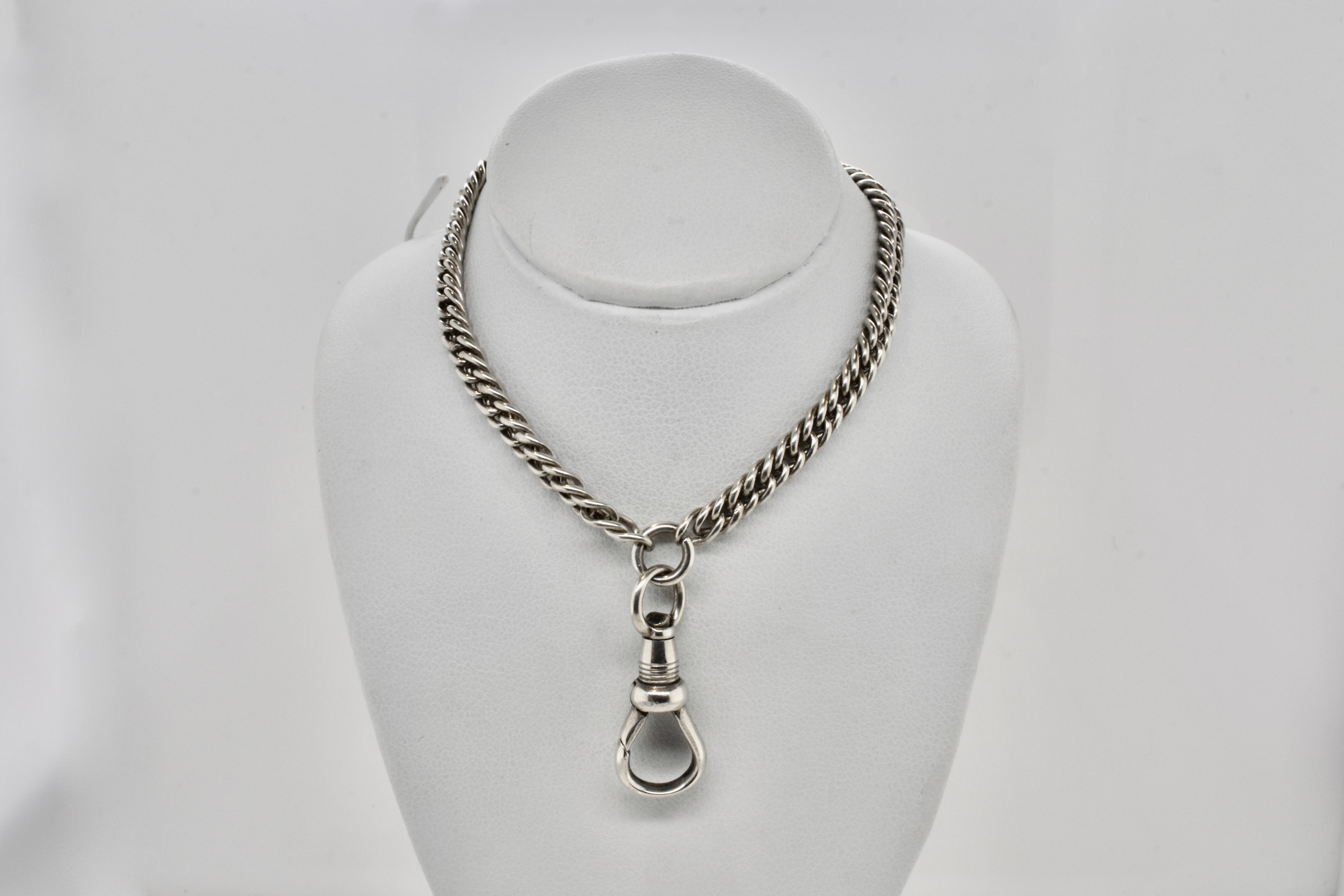 SOLD Antique Sterling Silver Half Muff Chain with Swivel