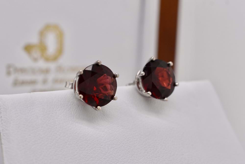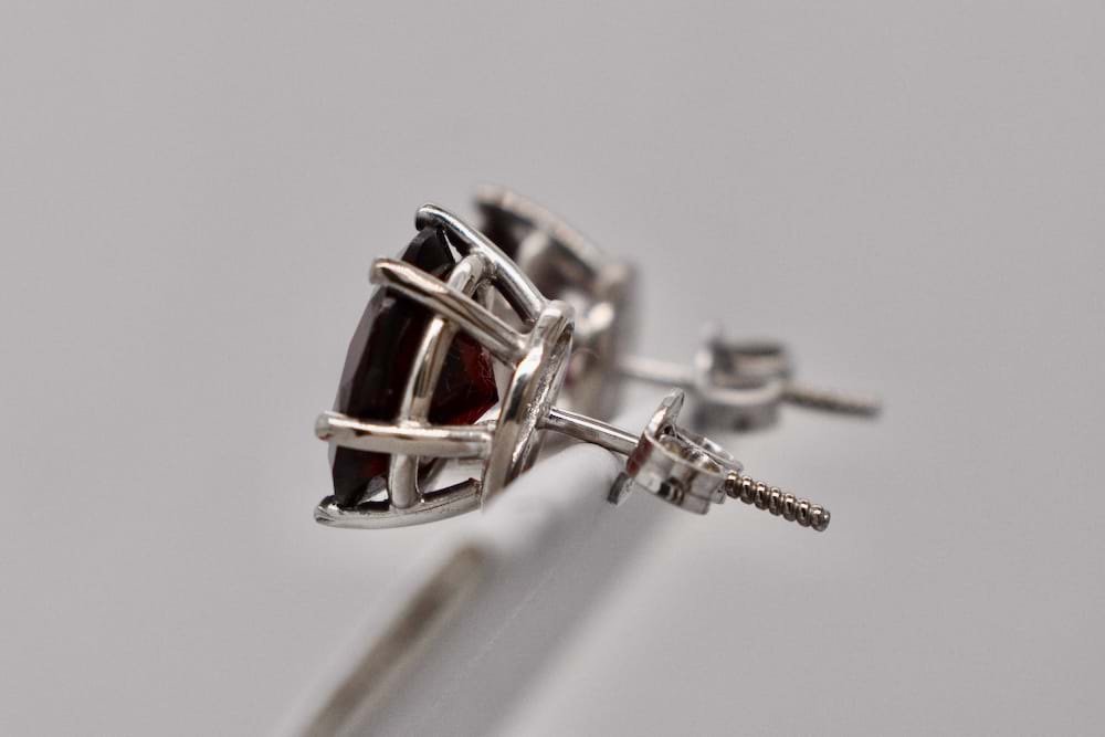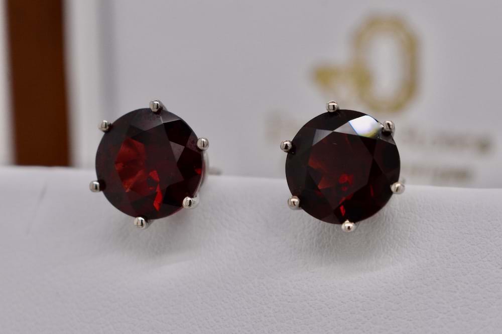SOLD Handmade 18ct White Gold Studs with Pyrope Garnets